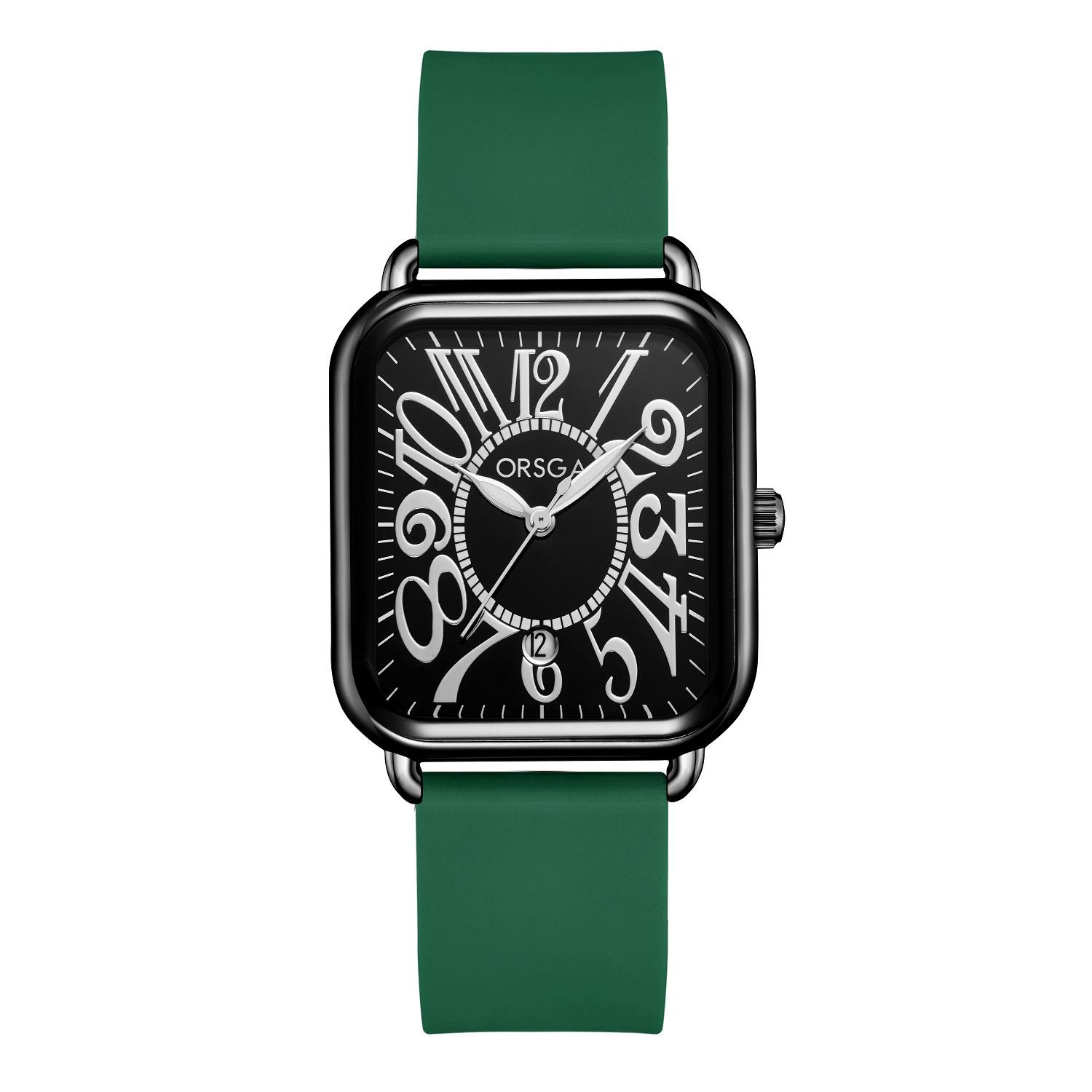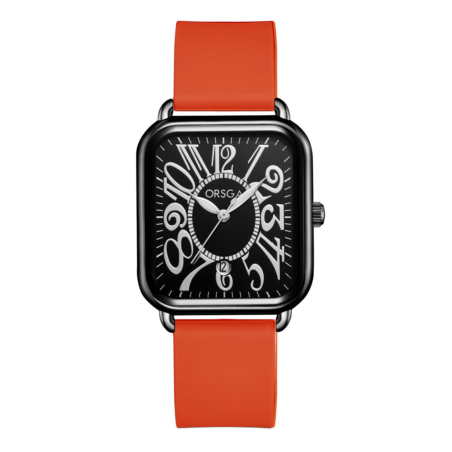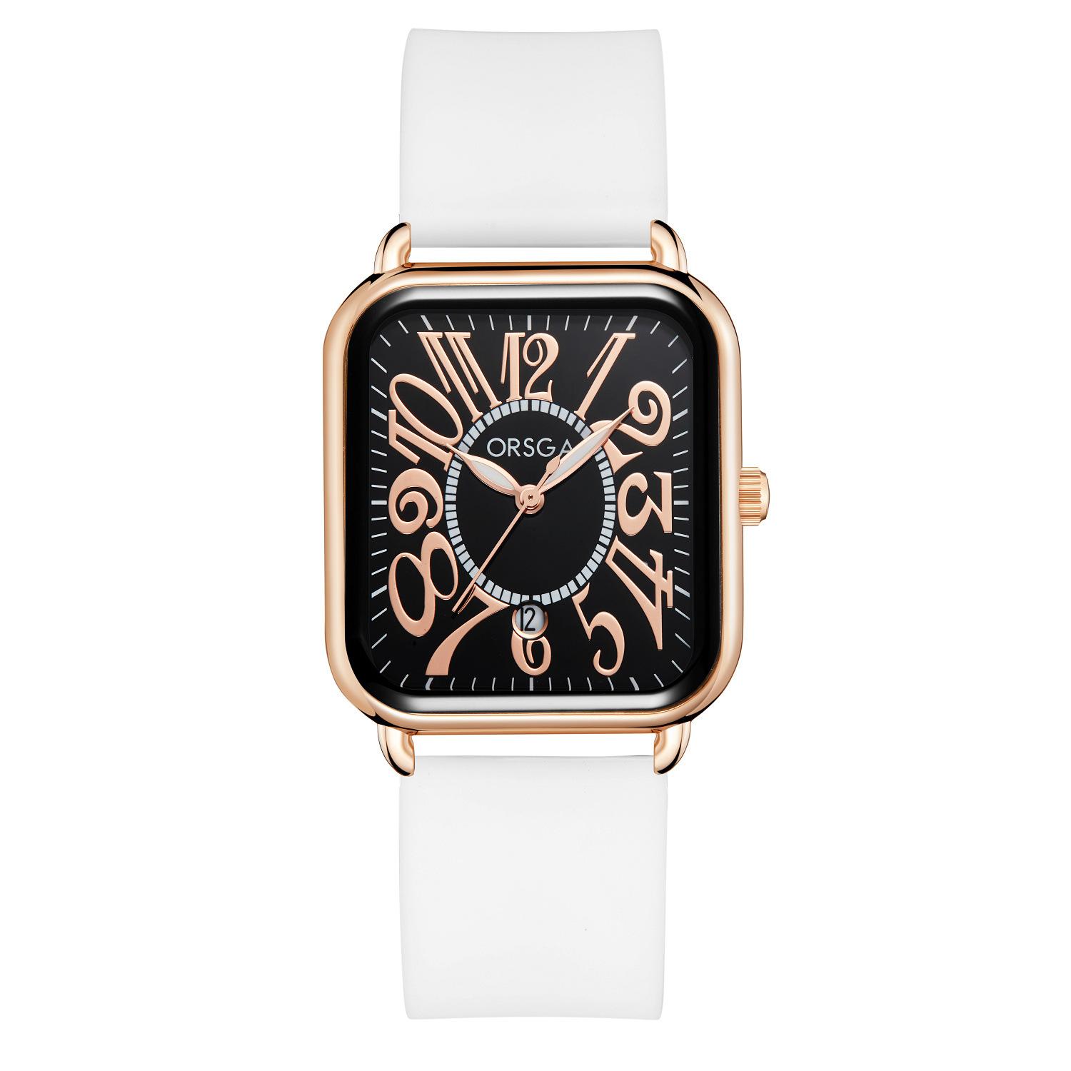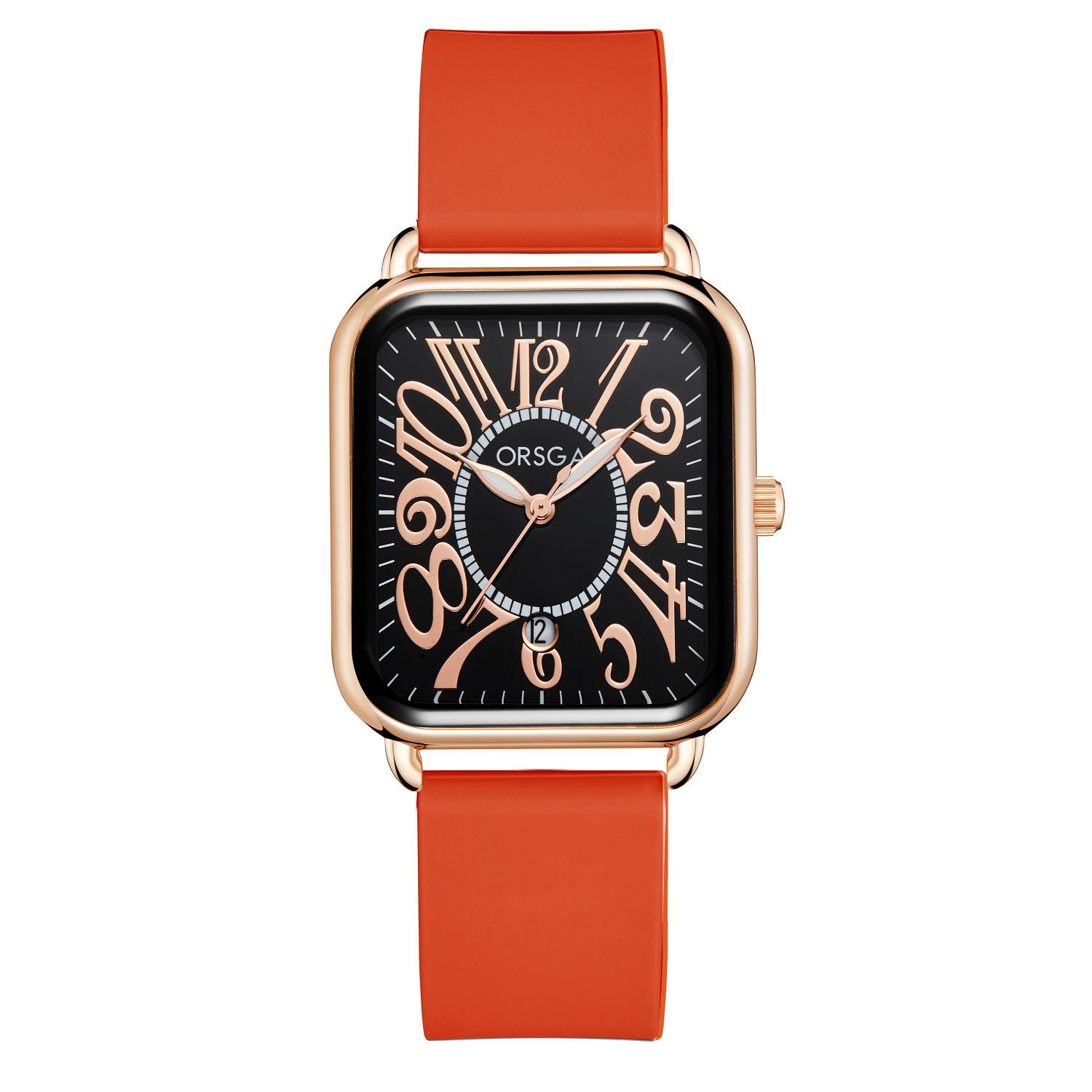 Reloj ORSGA para parejas, con calendario, informal, cuadrado, resistente al agua, con correa de silicona, de comercio exterior, de cuarzo, para mujer