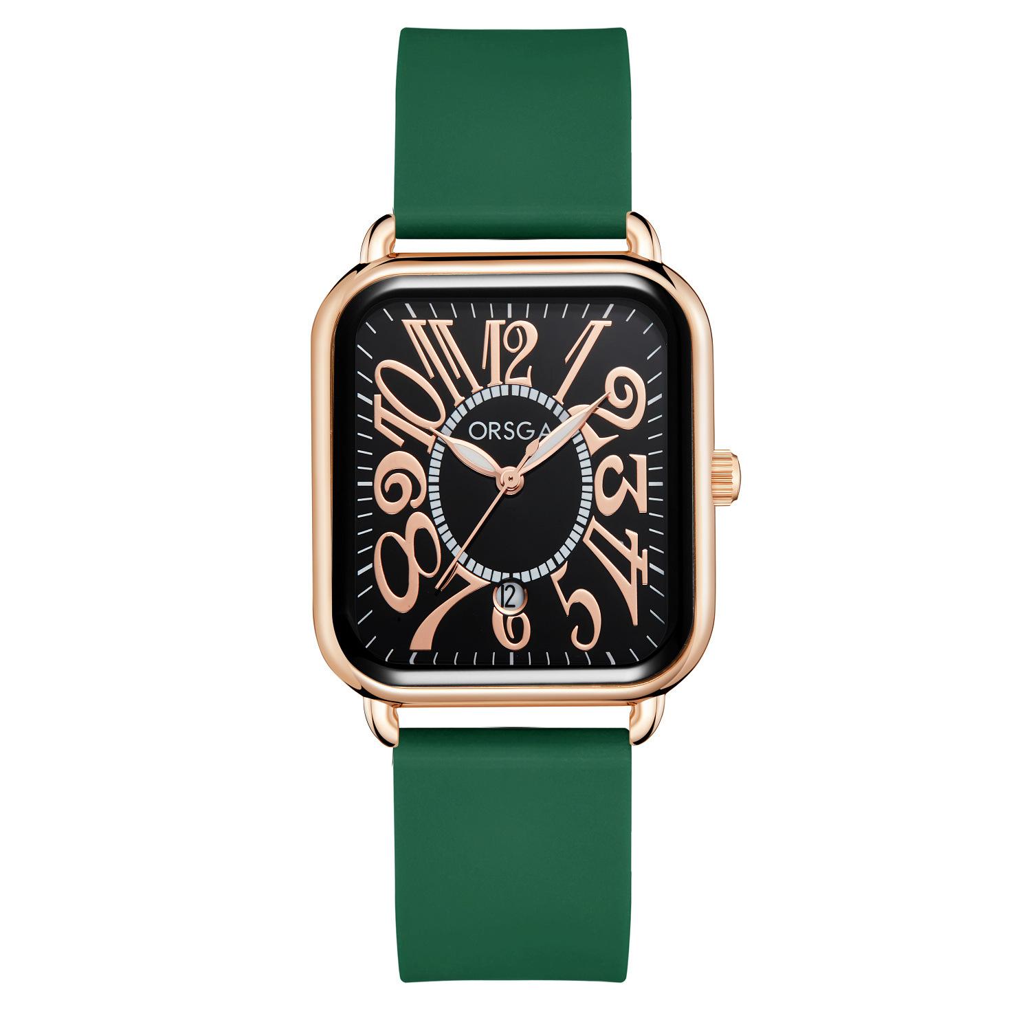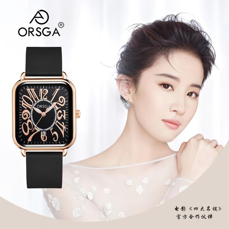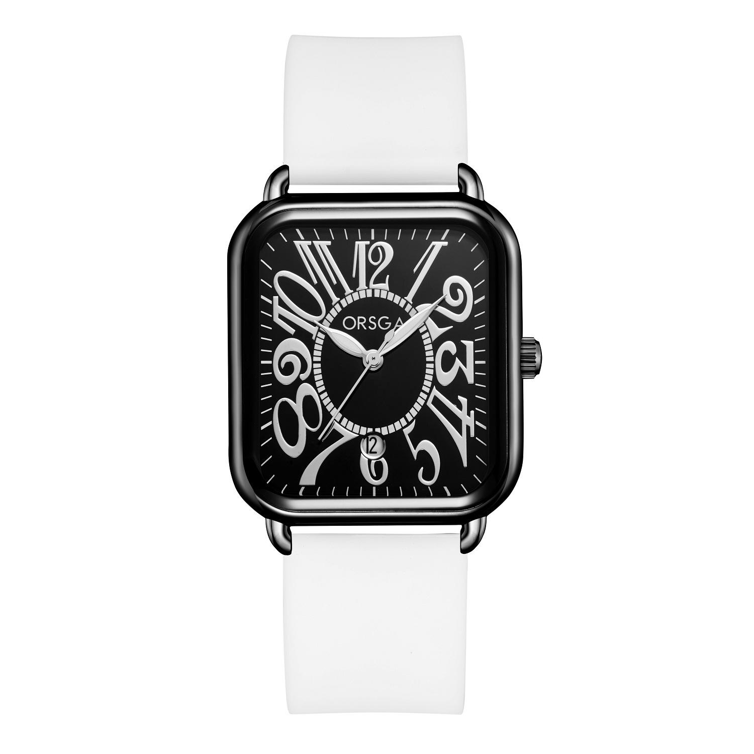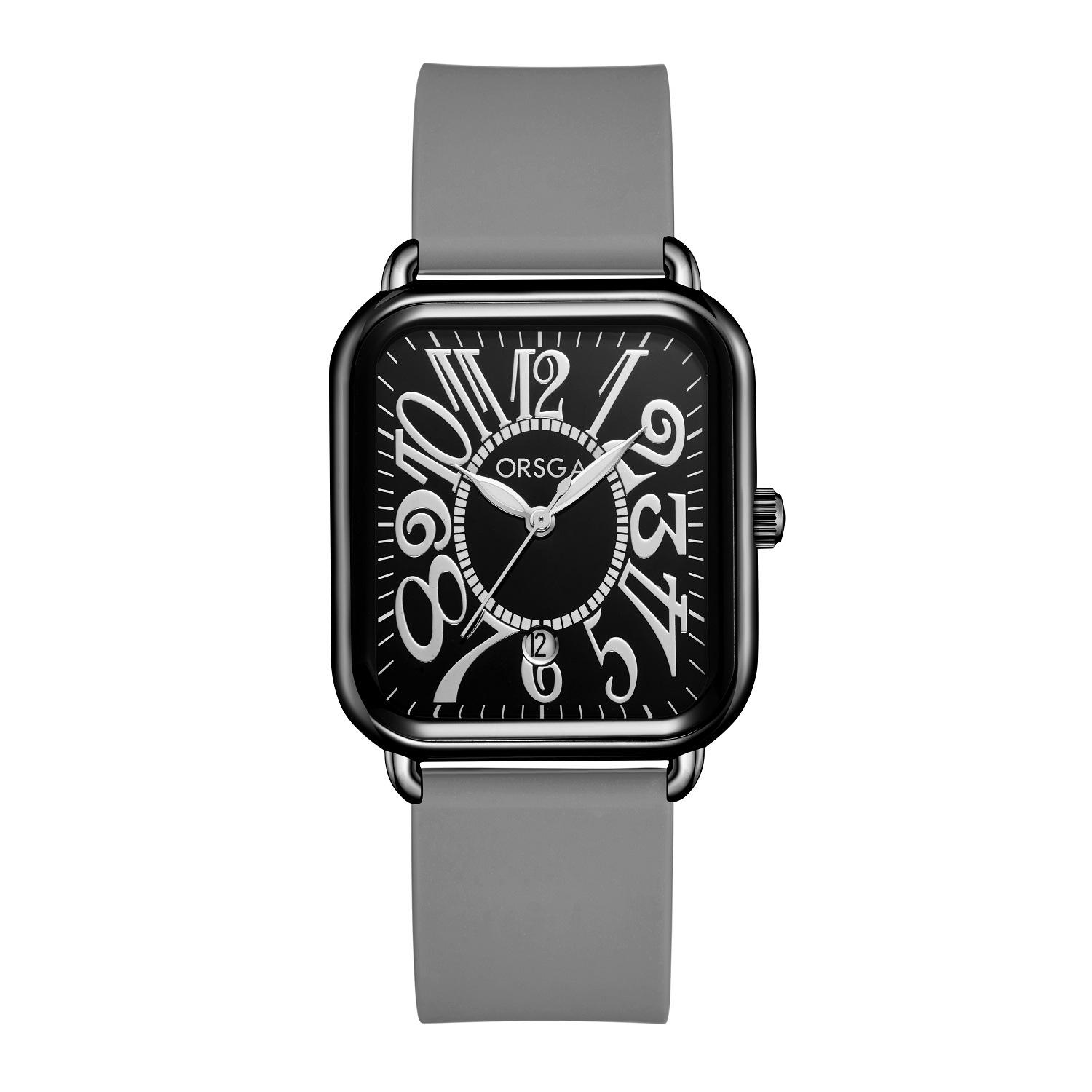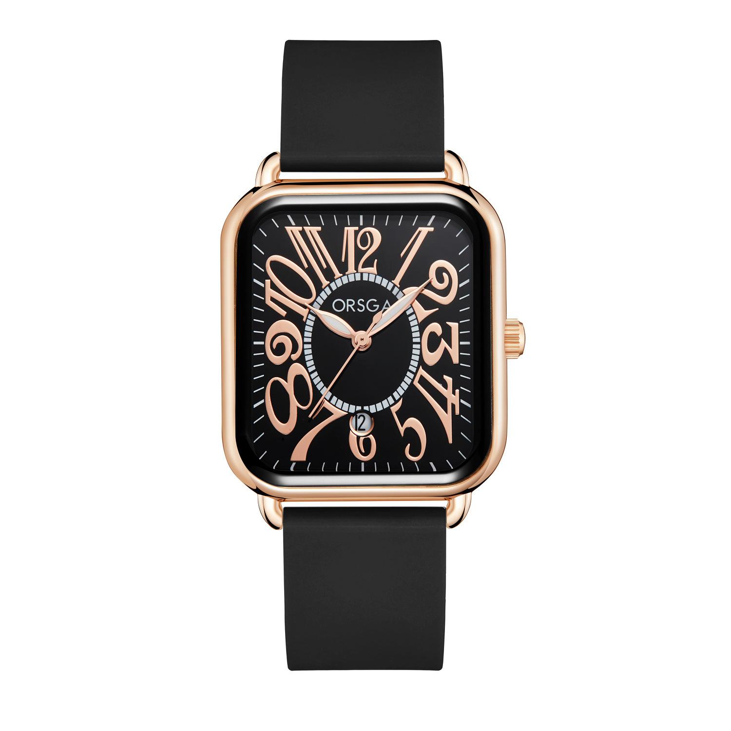 Reloj ORSGA para parejas, con calendario, informal, cuadrado, resistente al agua, con correa de silicona, de comercio exterior, de cuarzo, para mujer