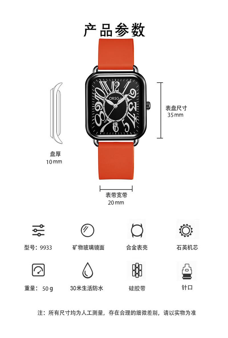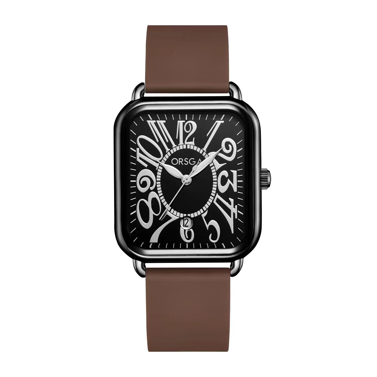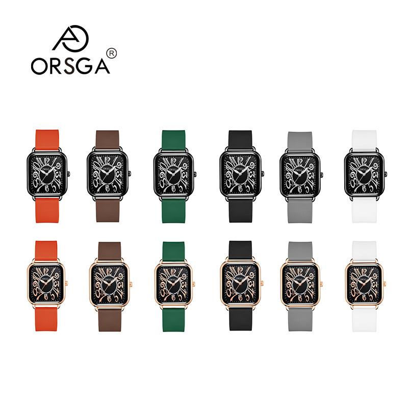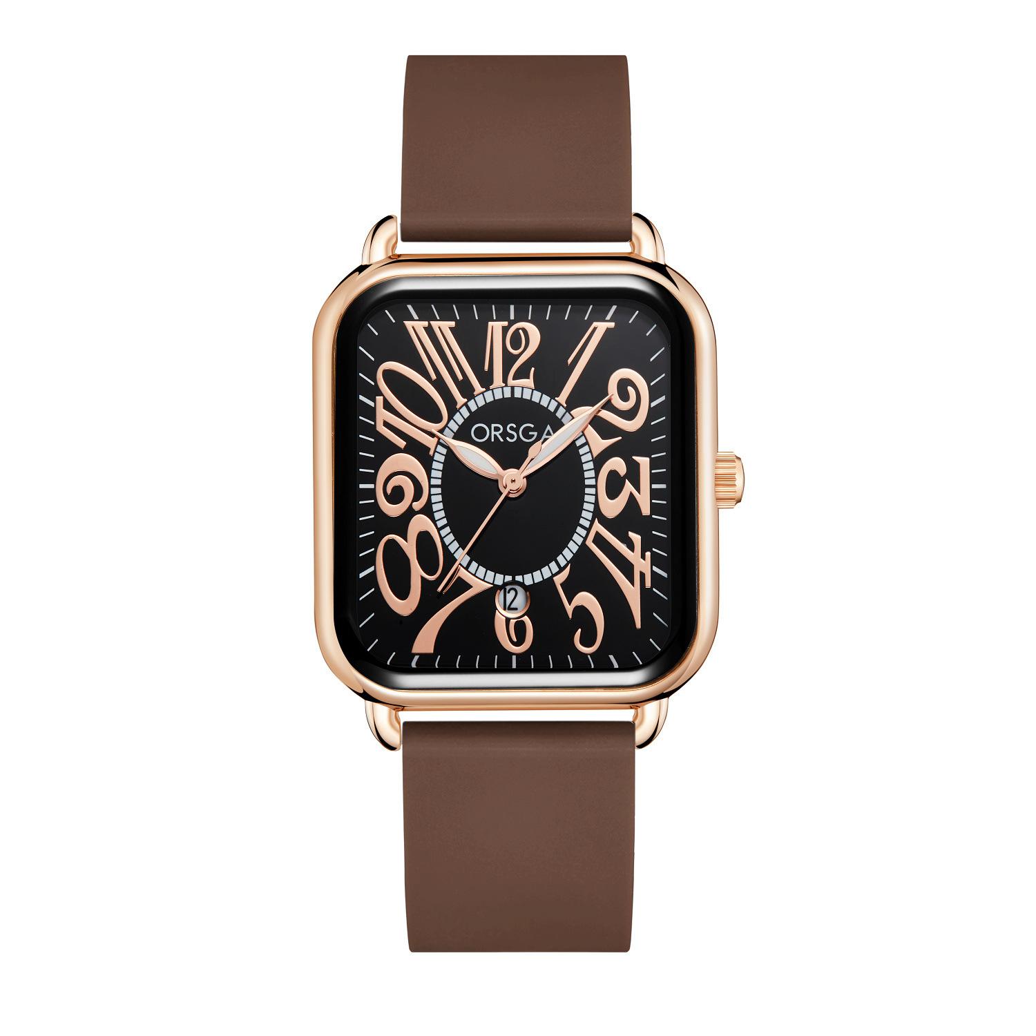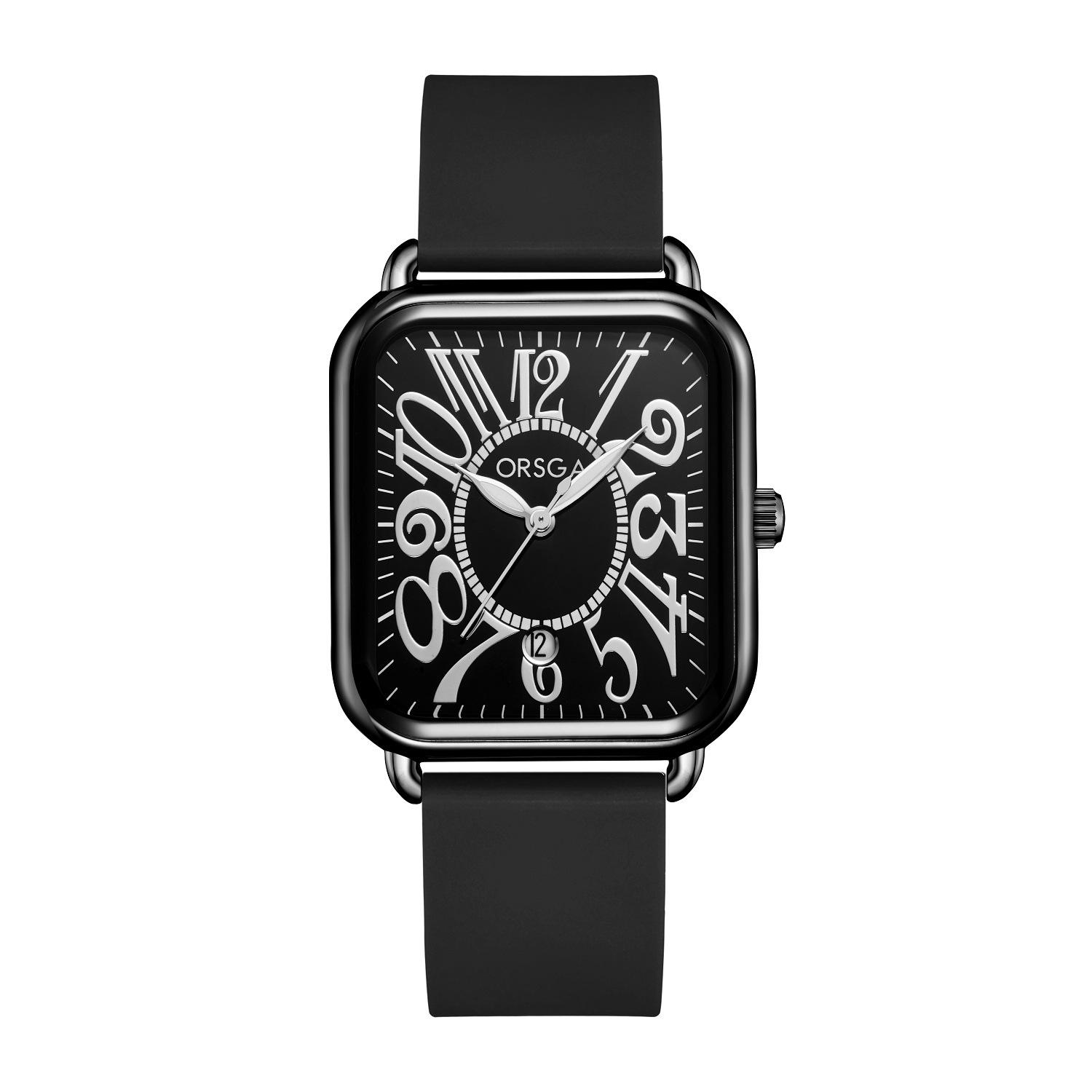 Reloj ORSGA para parejas, con calendario, informal, cuadrado, resistente al agua, con correa de silicona, de comercio exterior, de cuarzo, para mujer