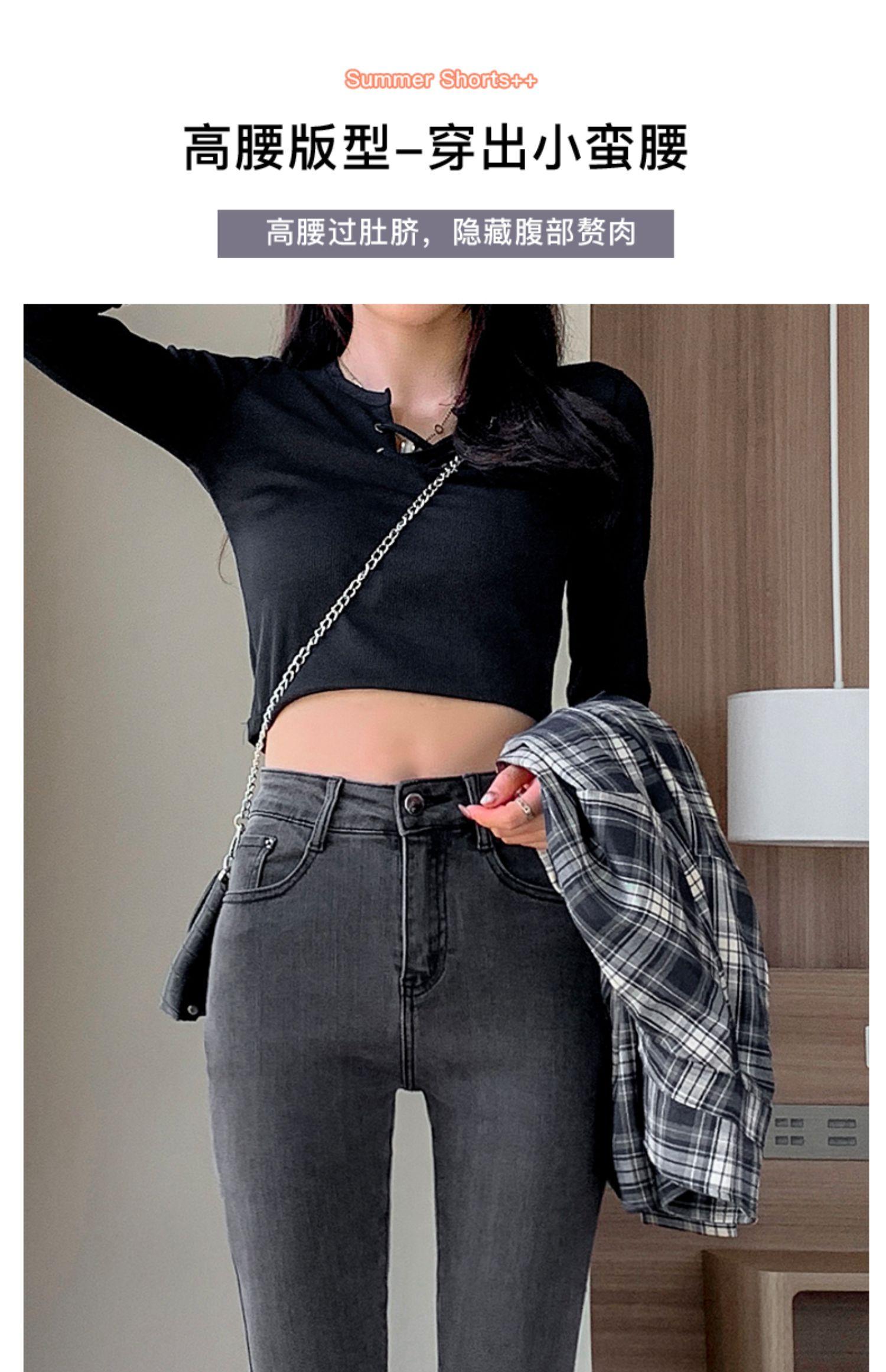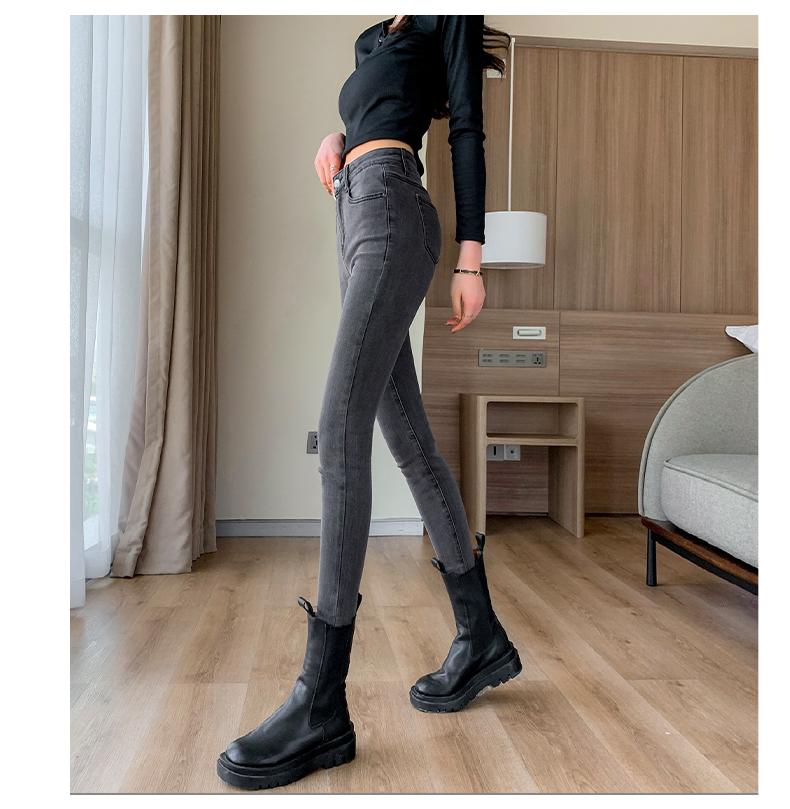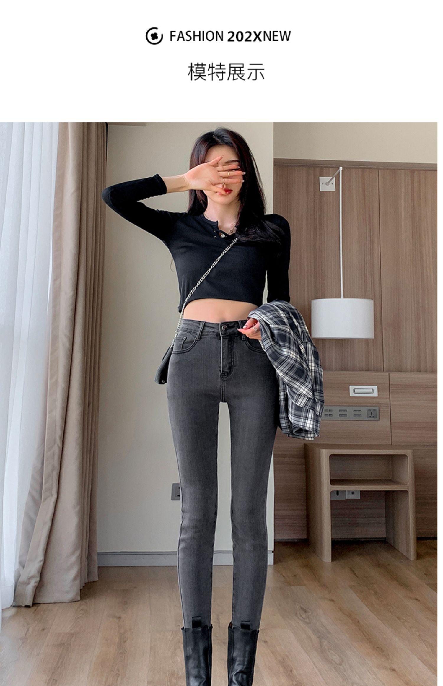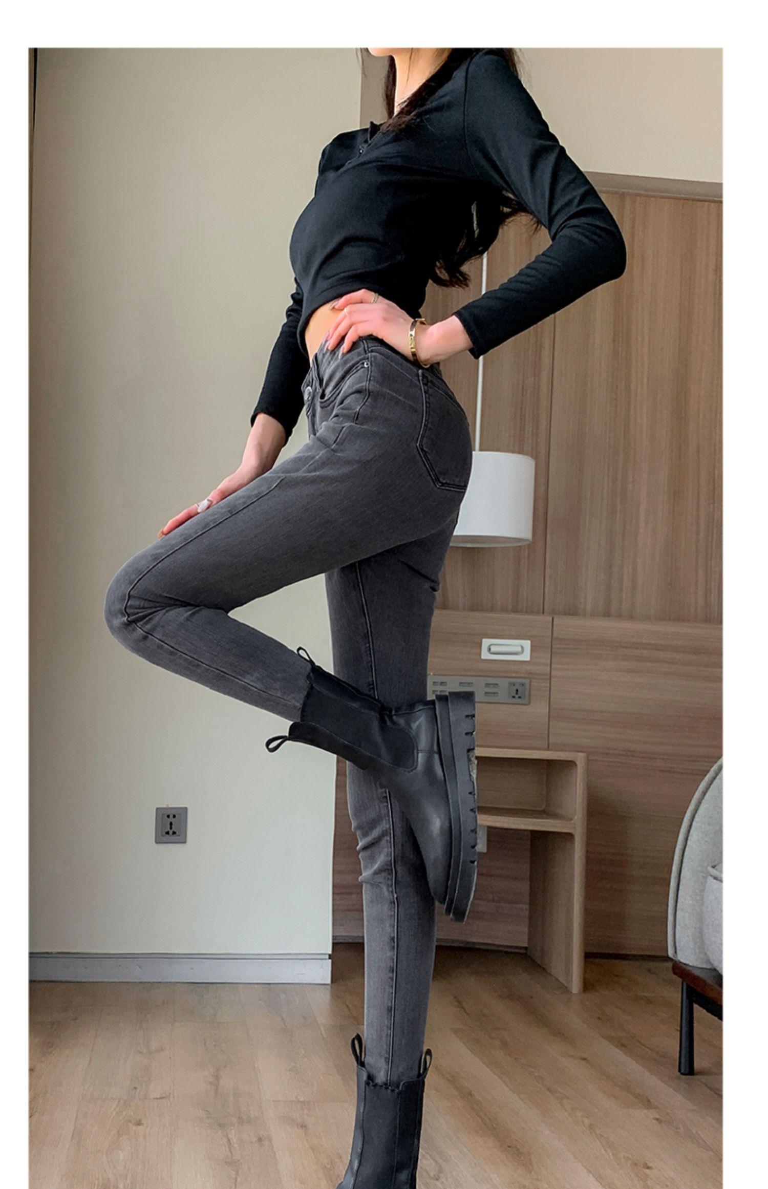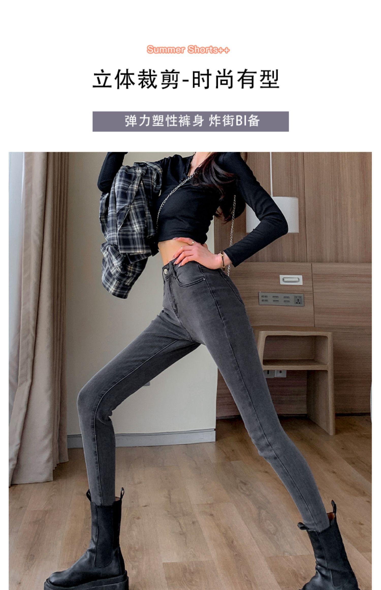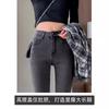 Pantalones vaqueros de cintura alta gris ahumado para mujer, primavera y otoño 2024, nuevos pantalones ajustados, adelgazantes, ajustados y elásticos, de moda.