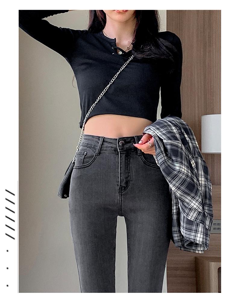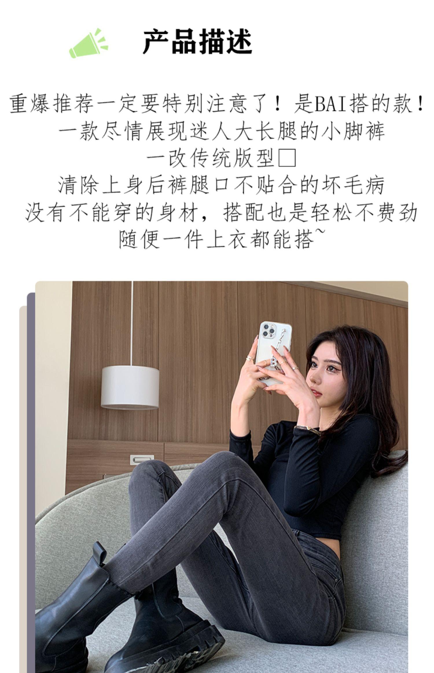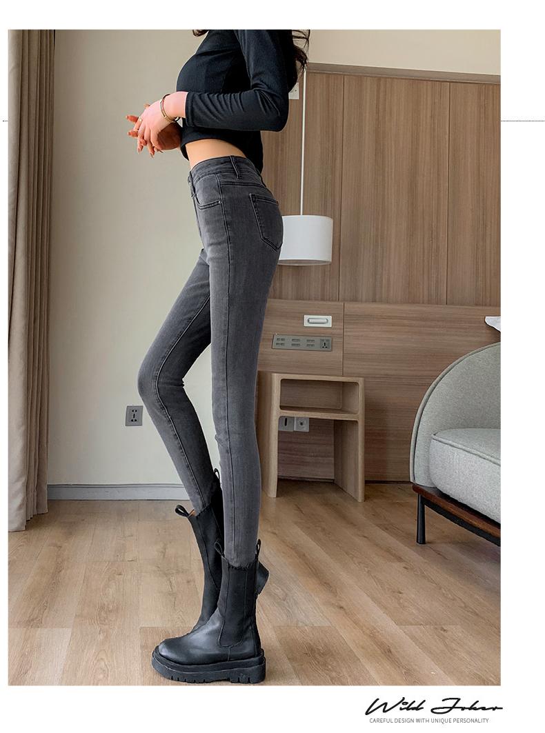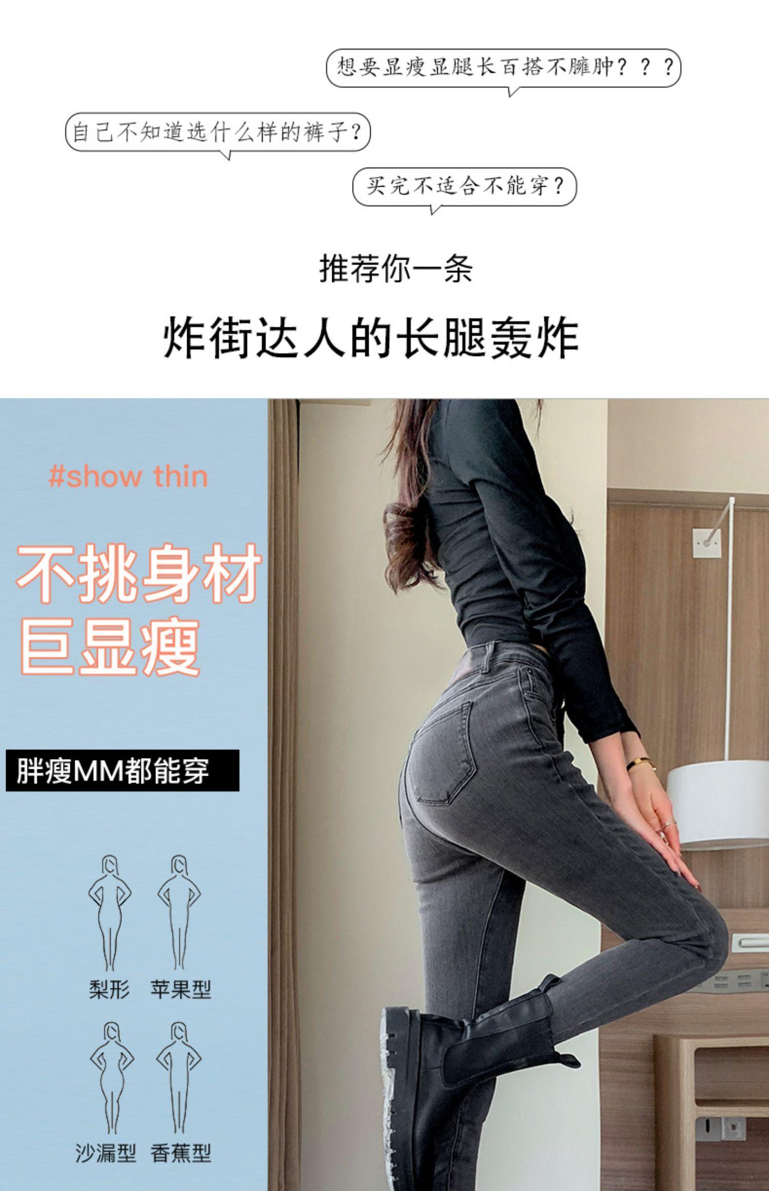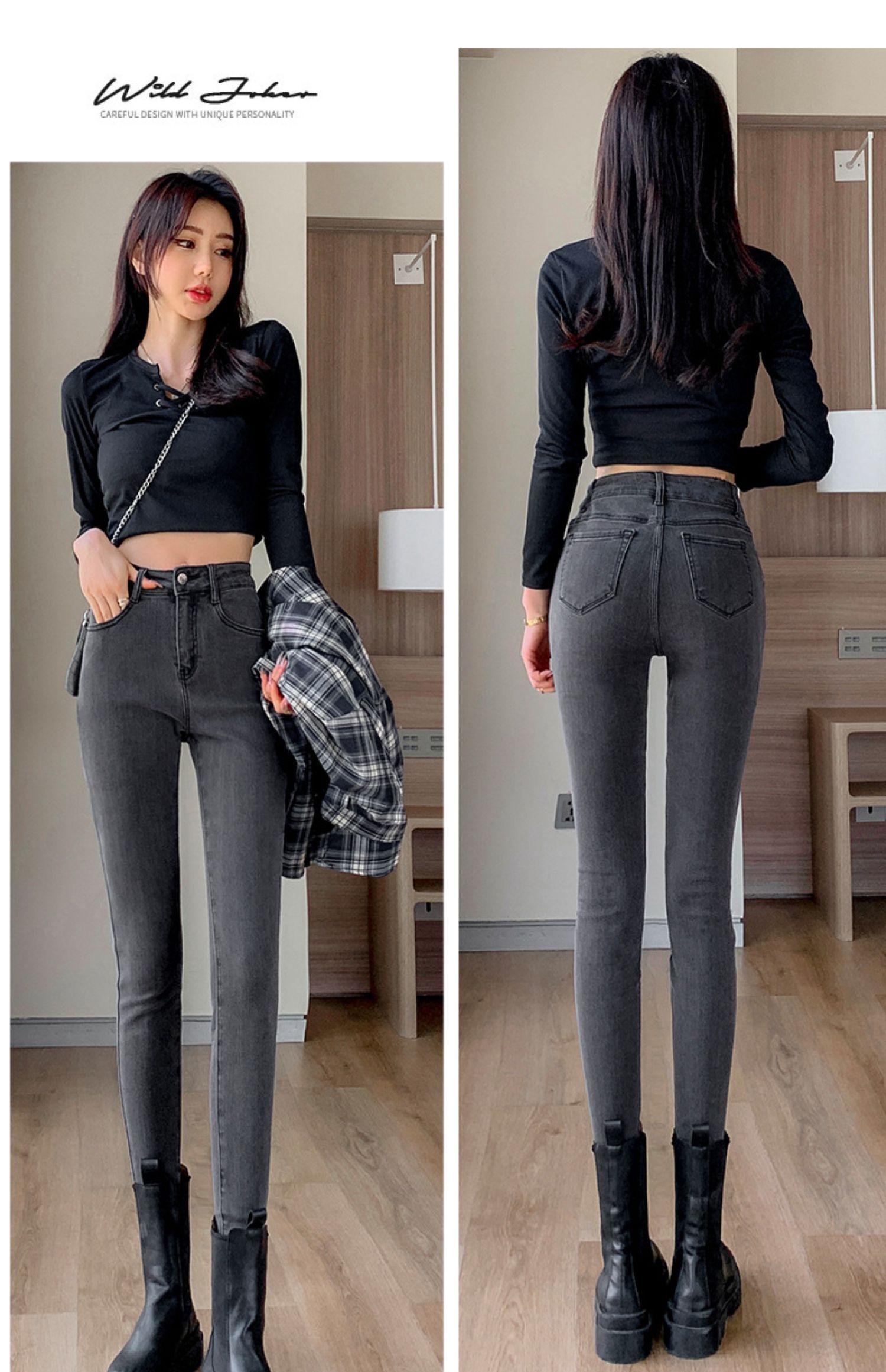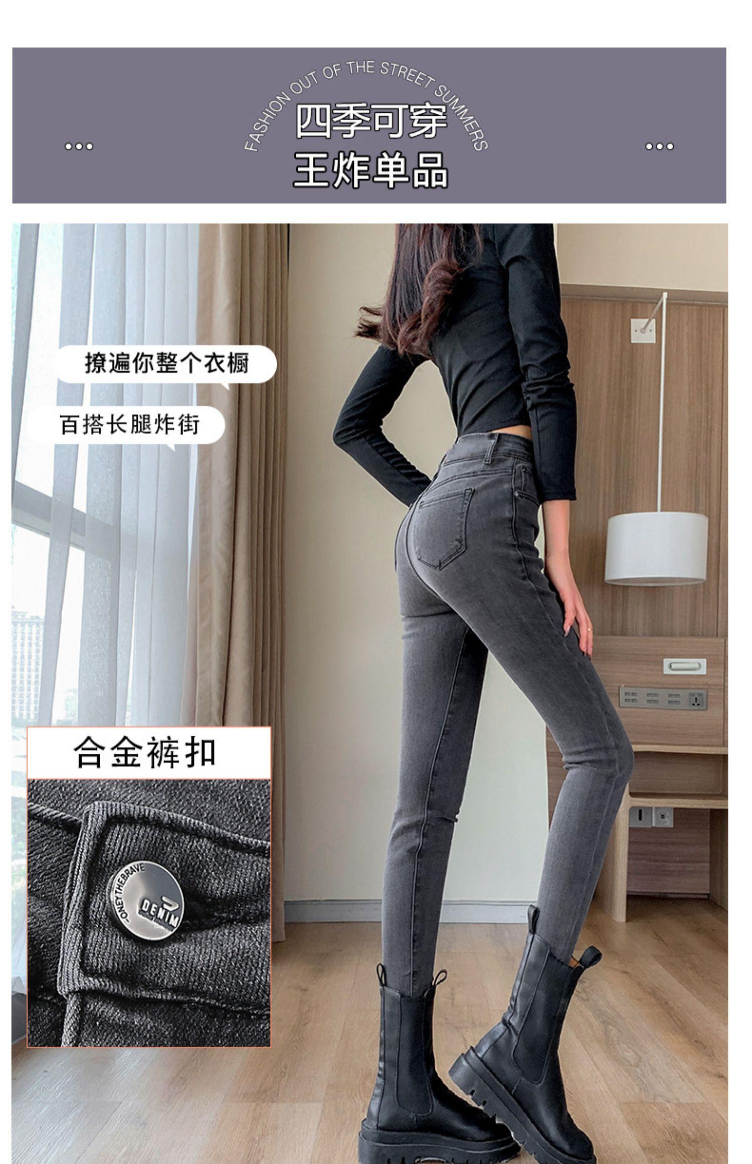 Pantalones vaqueros de cintura alta gris ahumado para mujer, primavera y otoño 2024, nuevos pantalones ajustados, adelgazantes, ajustados y elásticos, de moda.