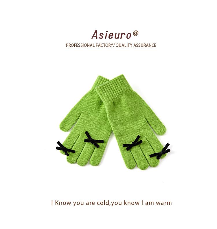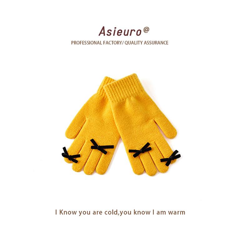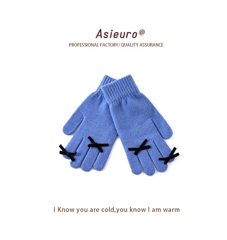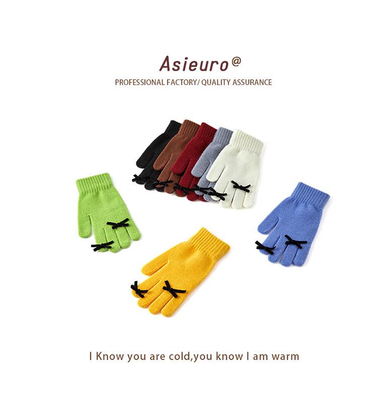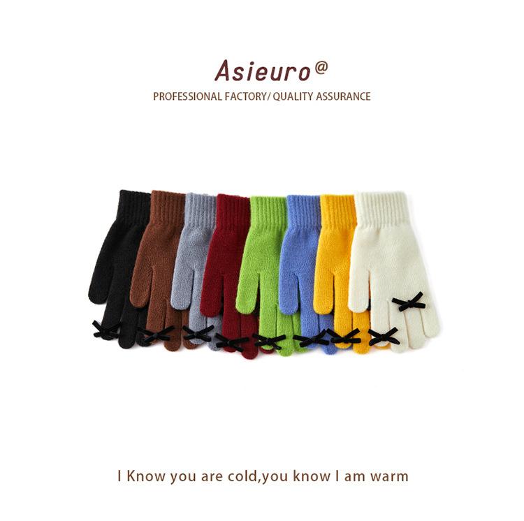 Guantes de Invierno 2024 Nuevos de Cinco Dedos de Color Puro Cálidos Tejidos para Mujer con Lazo para Estudiante Guantes de Lana a Prueba de Frío