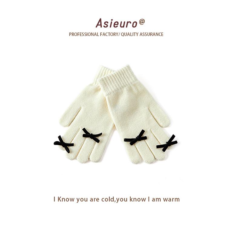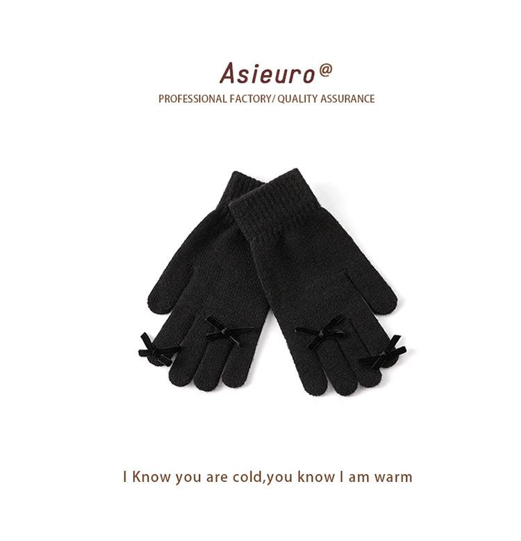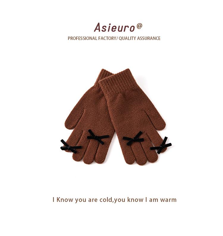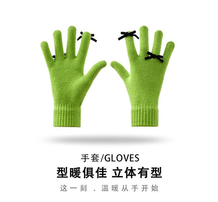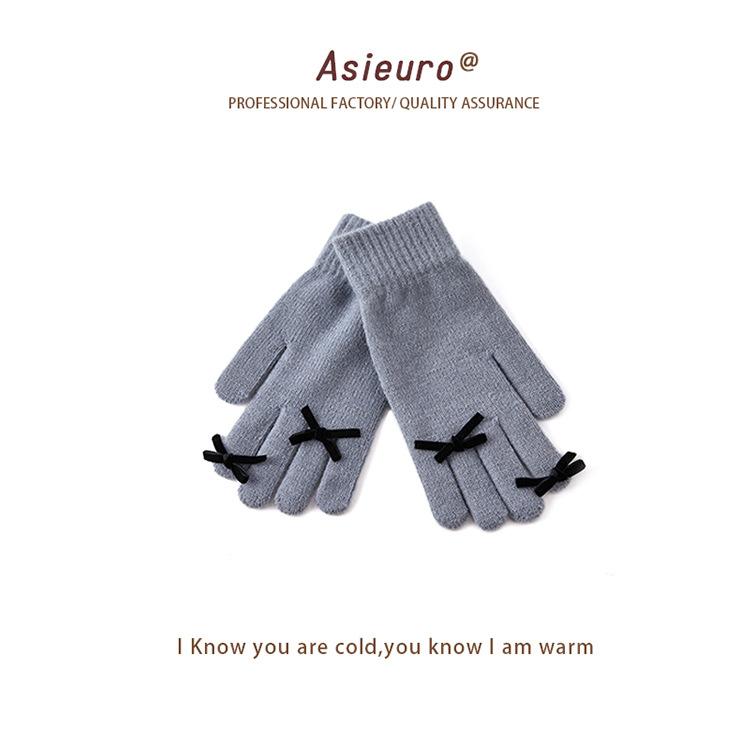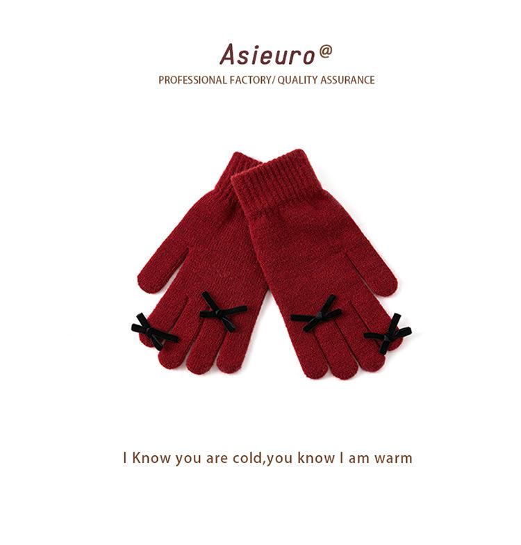 Guantes de Invierno 2024 Nuevos de Cinco Dedos de Color Puro Cálidos Tejidos para Mujer con Lazo para Estudiante Guantes de Lana a Prueba de Frío