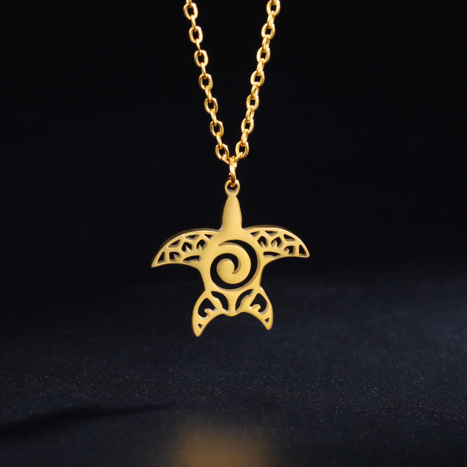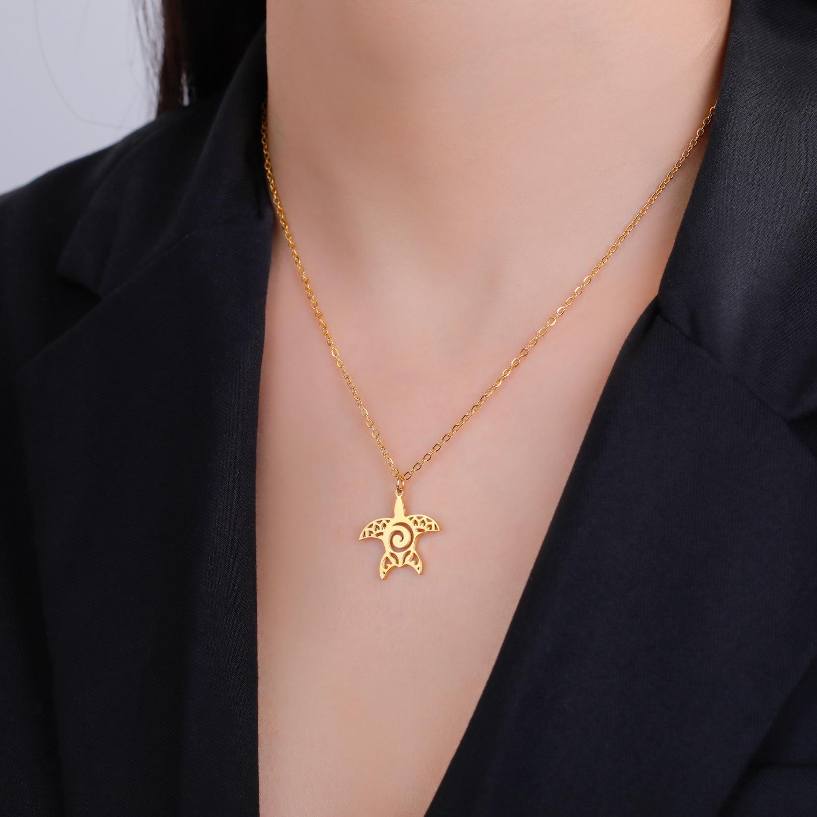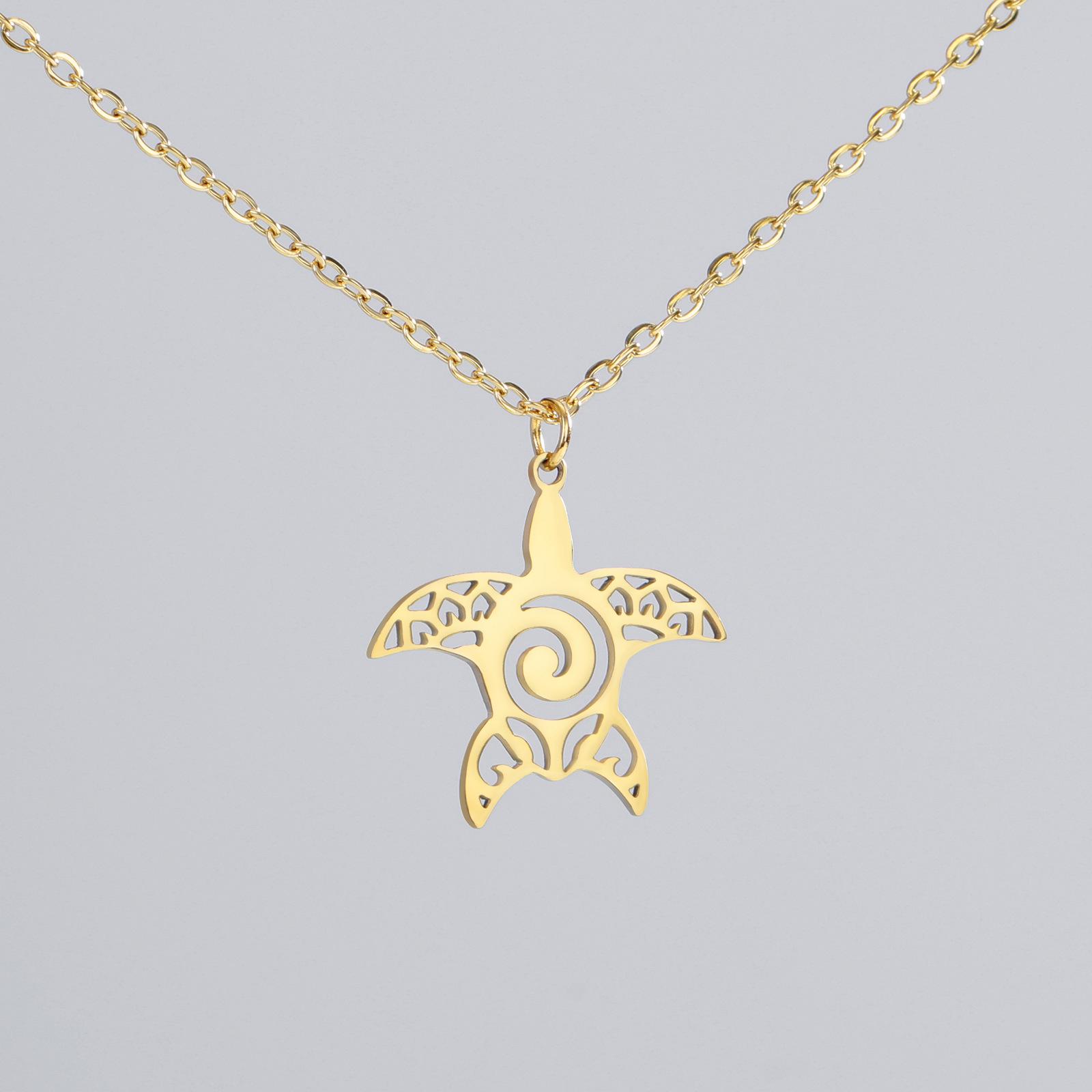 Collar de acero de titanio y oro de 18 quilates para hombre, joyería popular transfronteriza, simple y linda tortuga hueca, cadena de clavícula femenina.