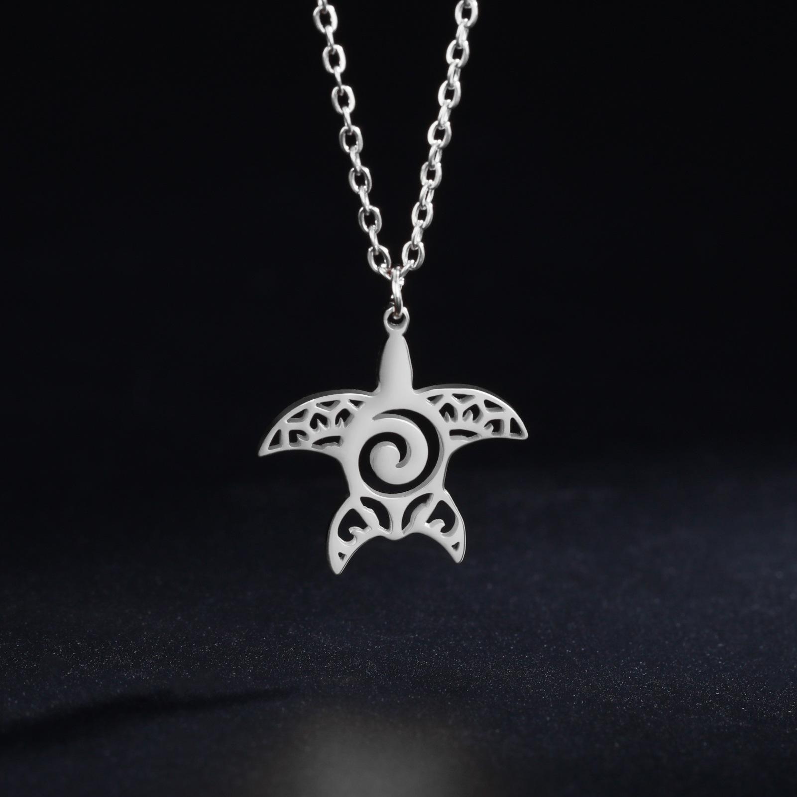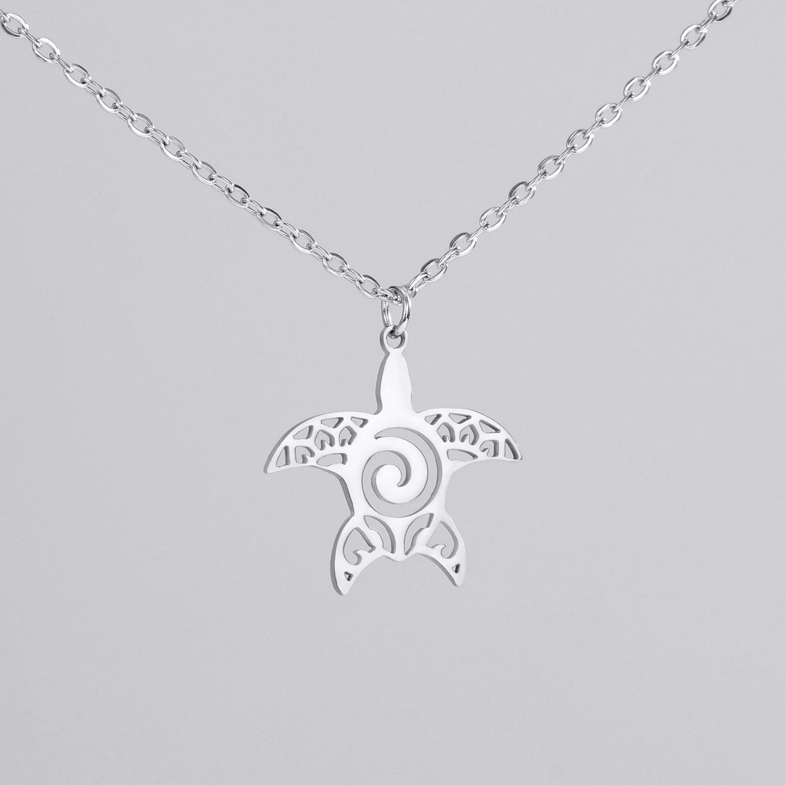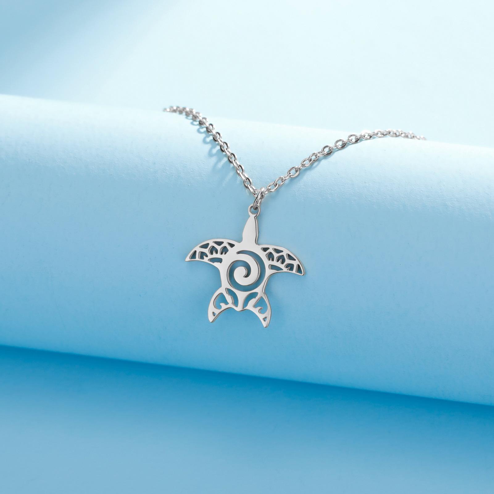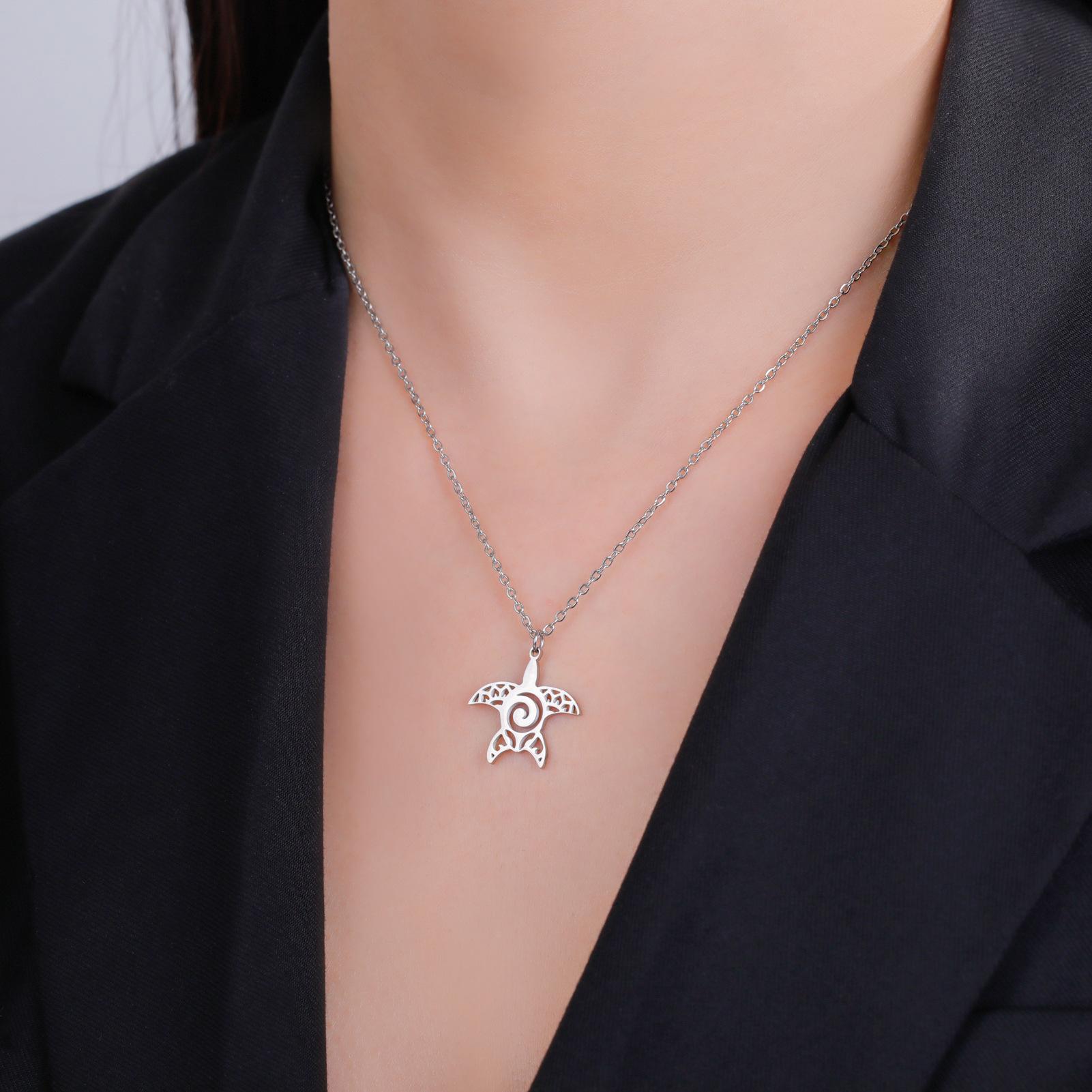 Collar de acero de titanio y oro de 18 quilates para hombre, joyería popular transfronteriza, simple y linda tortuga hueca, cadena de clavícula femenina.