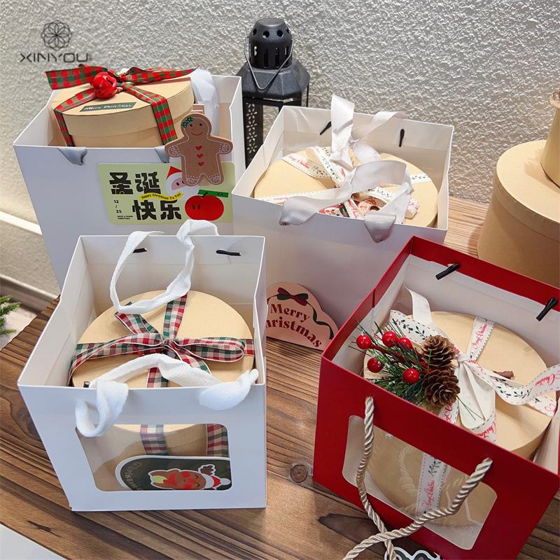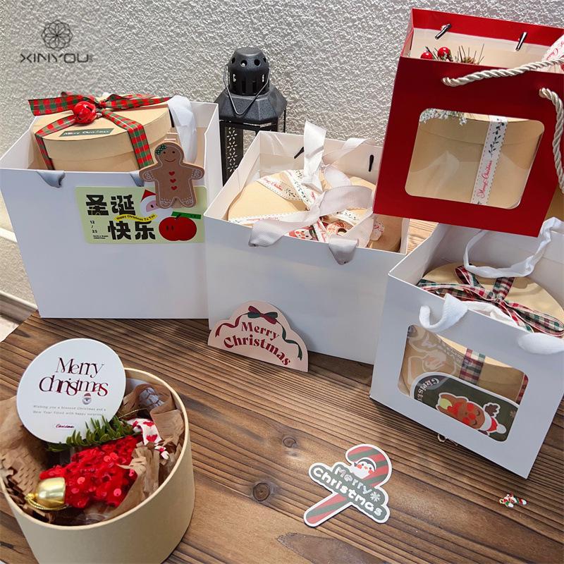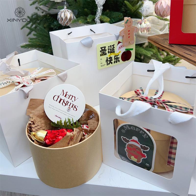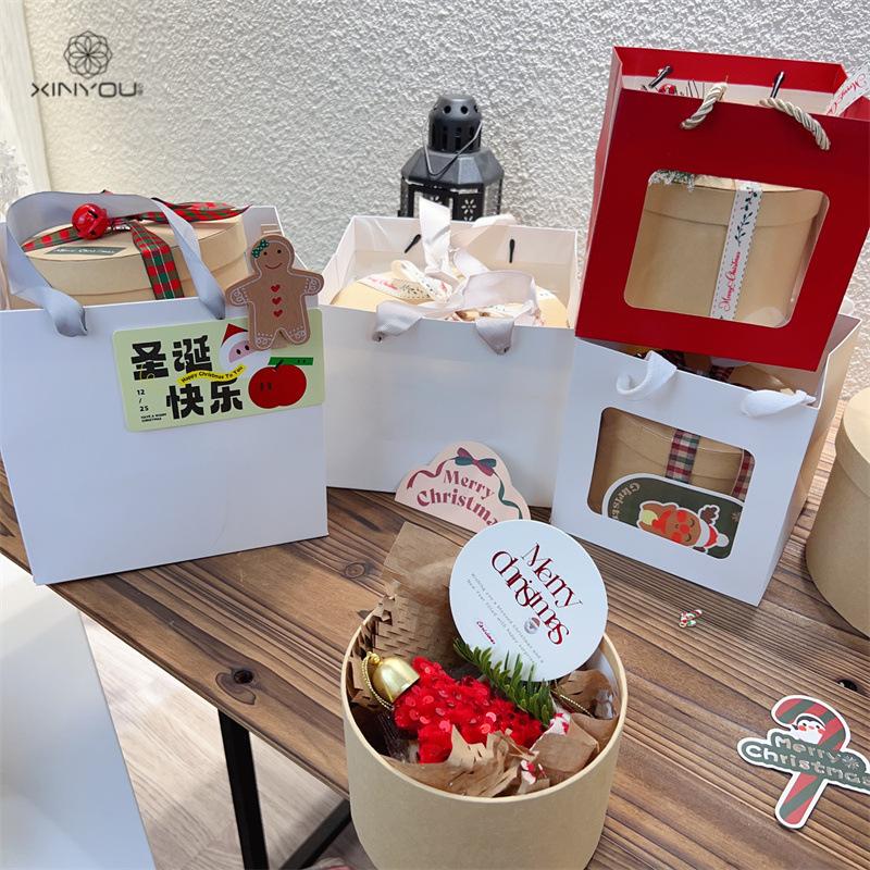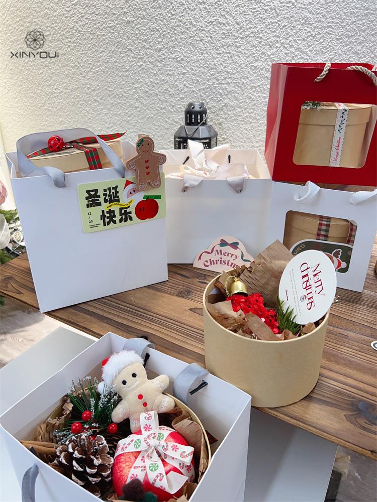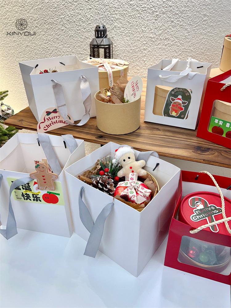 Bolsa de Regalo Blanca Navideña Transfronteriza de 19 cm Caja de Manzana para Regalo de Navidad Bolsa de Mano Bolsa de Embalaje para Ramo Pequeño