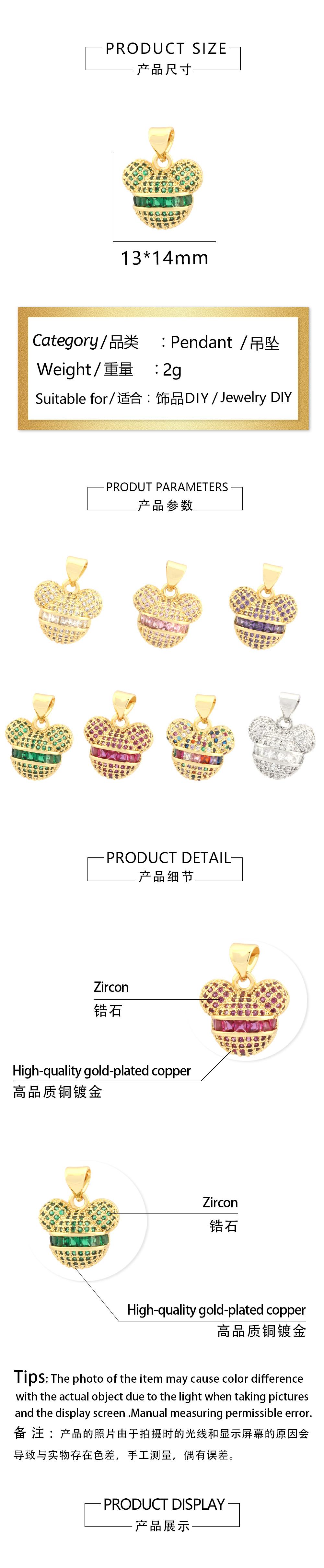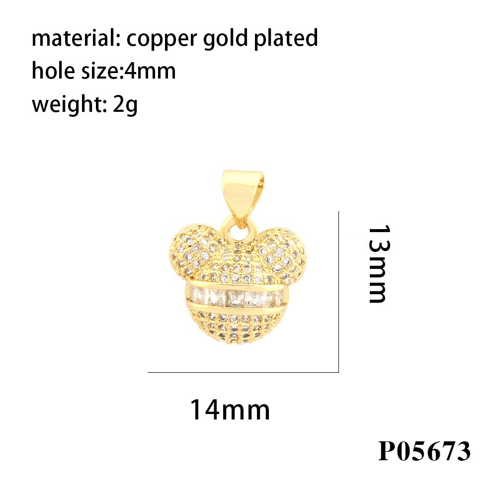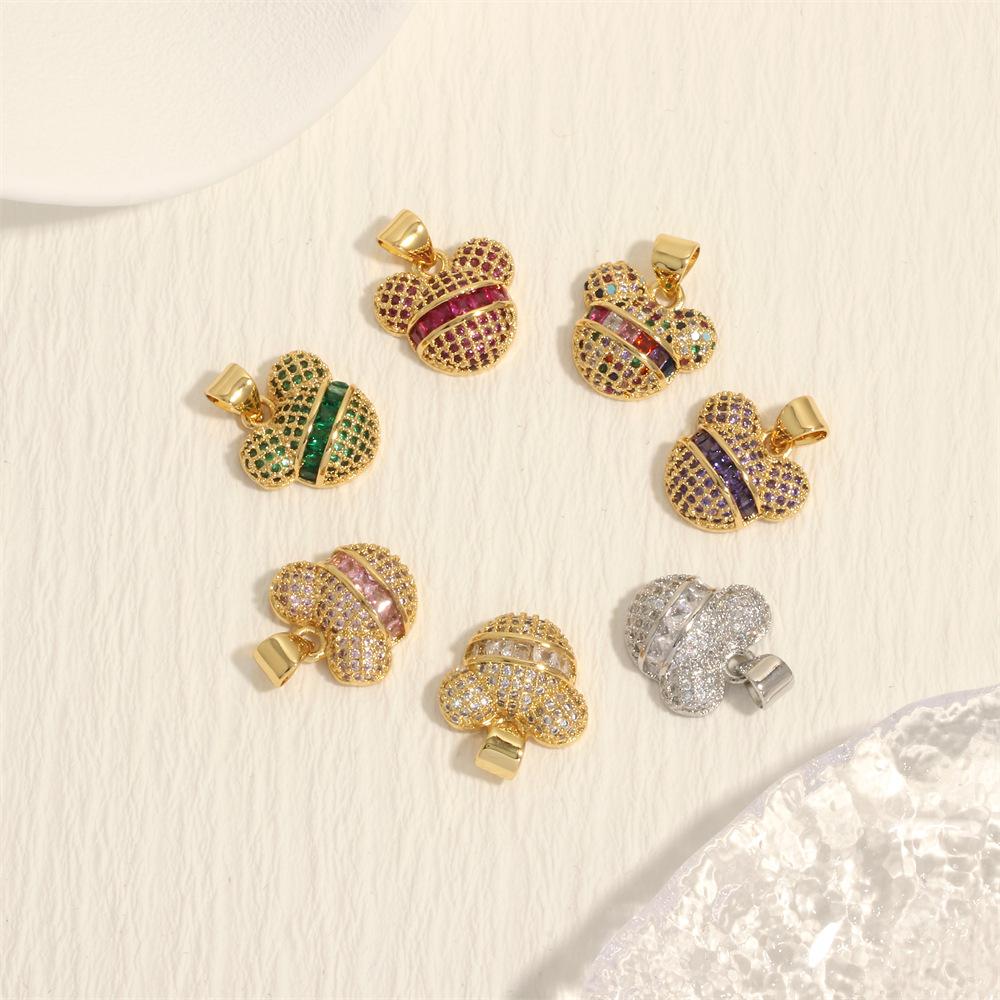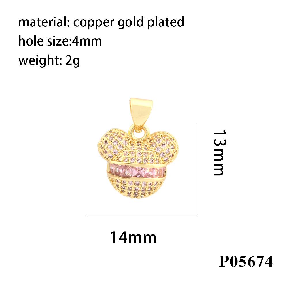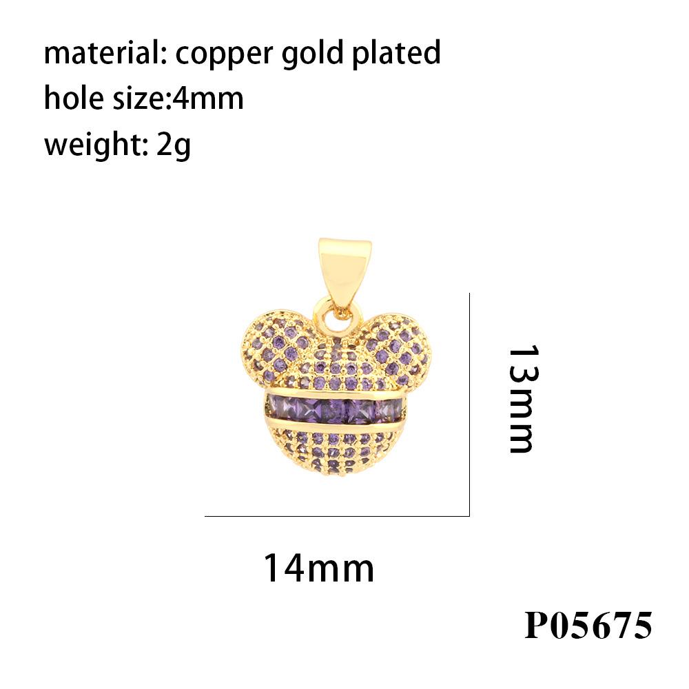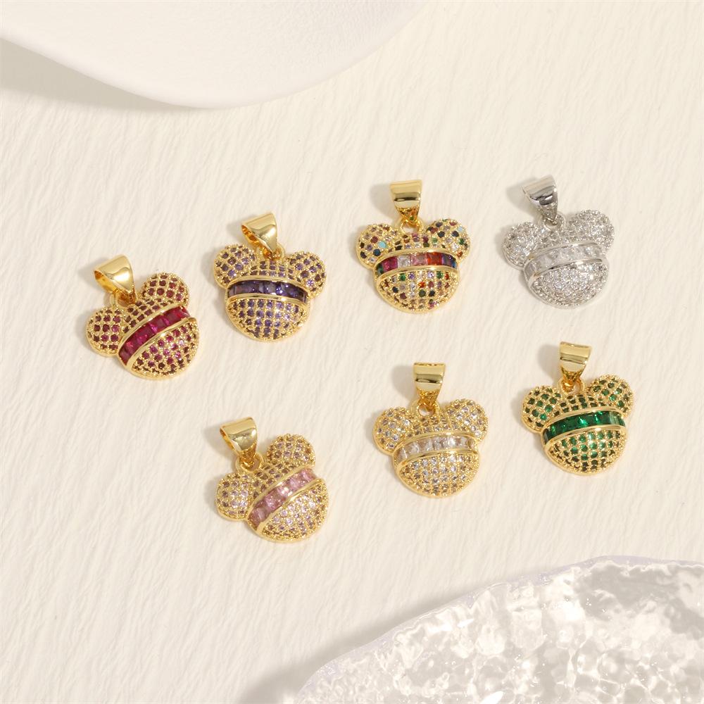 Nuevo colgante transfronterizo de oso de dibujos animados con incrustaciones de cobre y circonita de color, popular anillo único chapado en oro de 18 quilates, accesorios de joyería