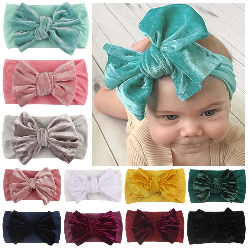 Diadema para niños de estilo europeo y americano, nueva banda elástica de terciopelo dorado de 11 colores, lazo ancho para el cabello para bebés.