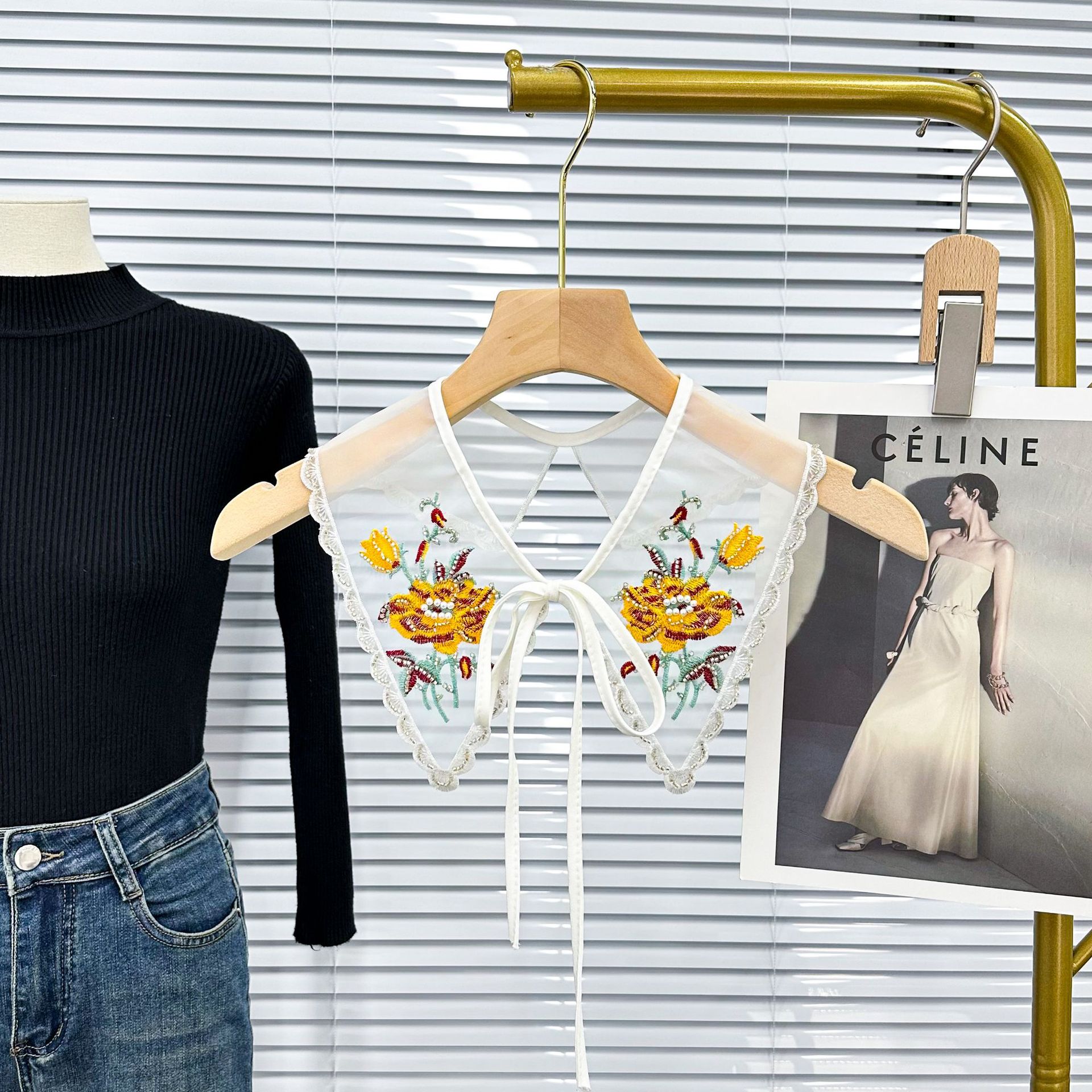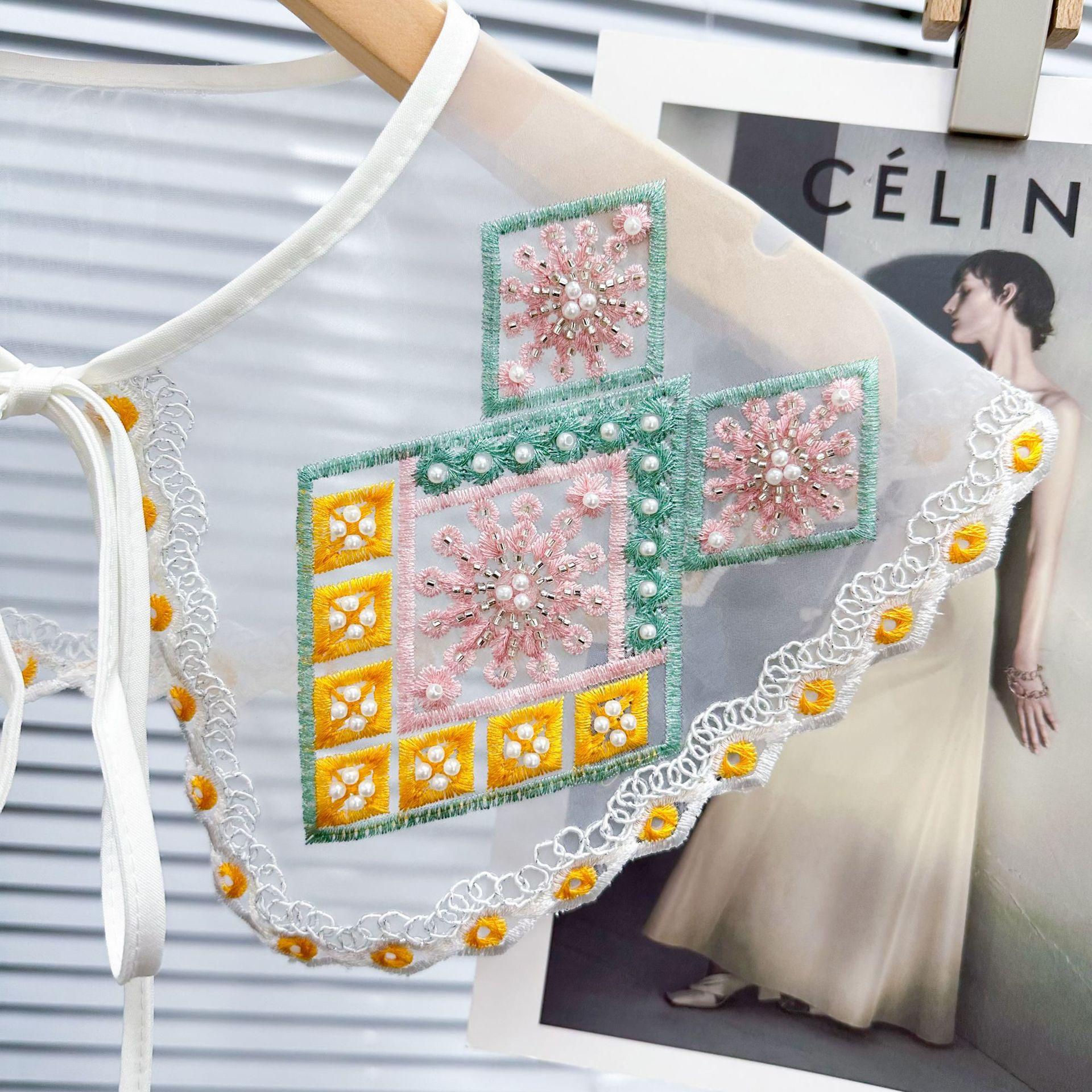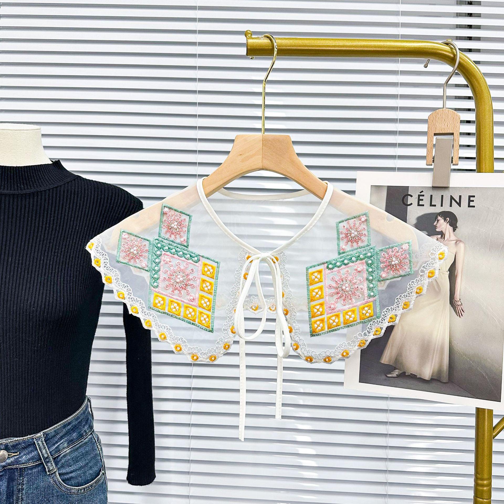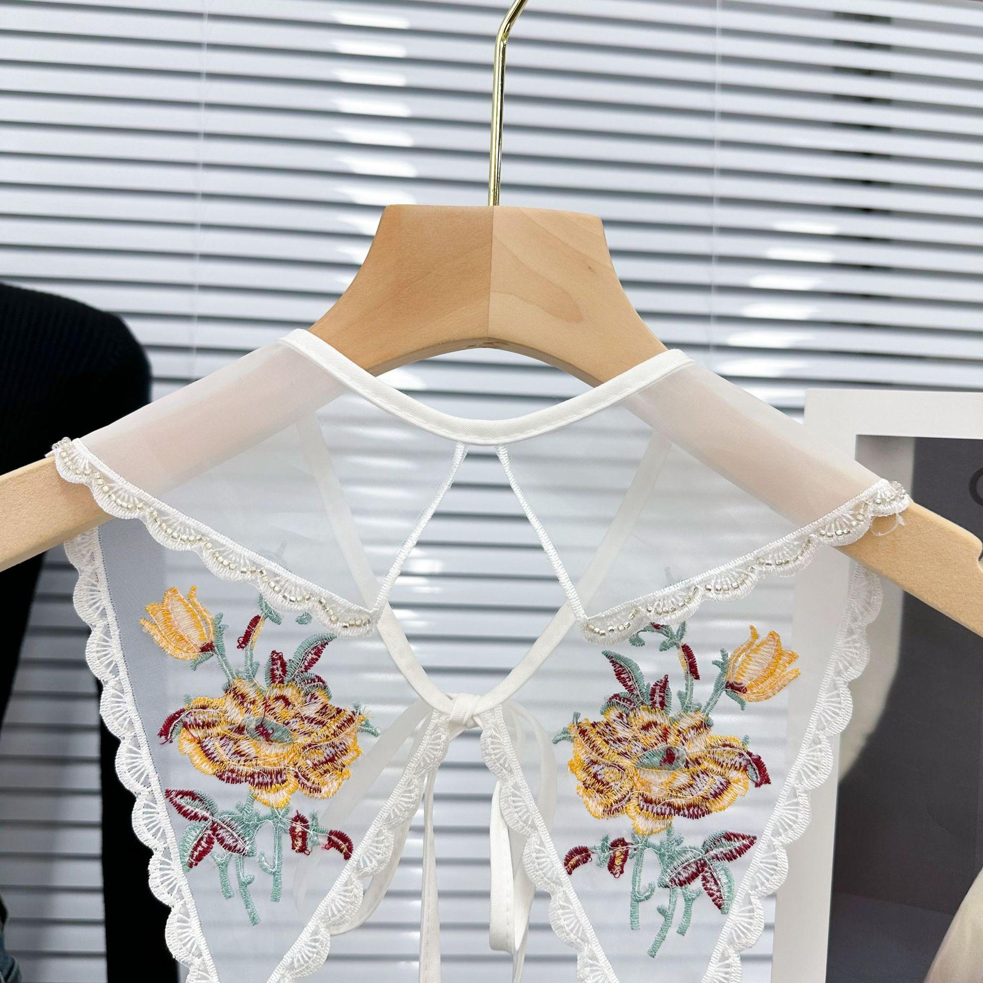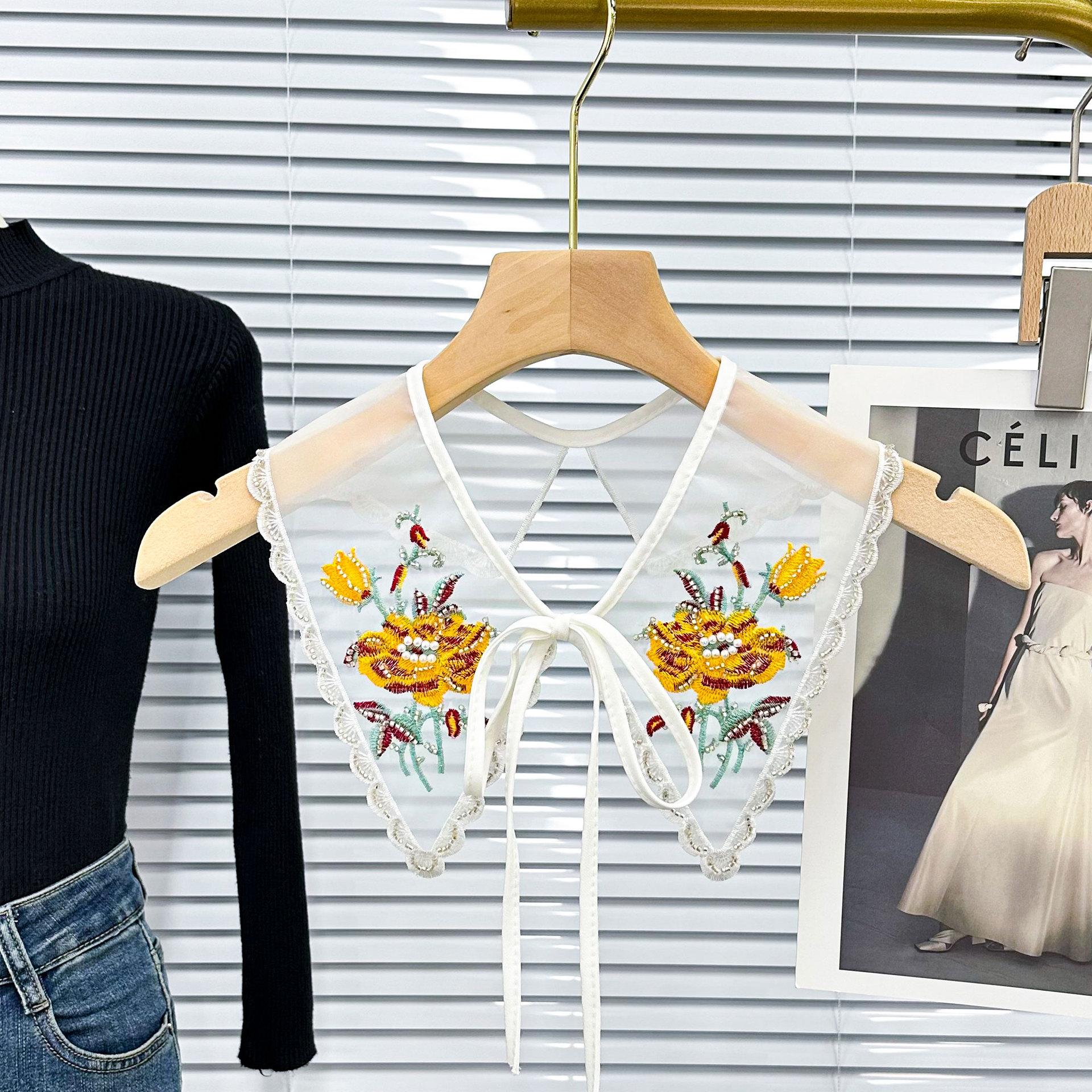 Nuevo estilo étnico, bordado colorido, cuello falso con cuentas, lazo con cordones, cuello decorativo con flores, cuello pequeño, exclusivo de comercio electrónico