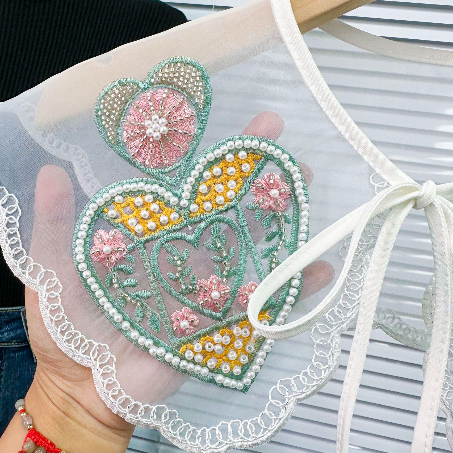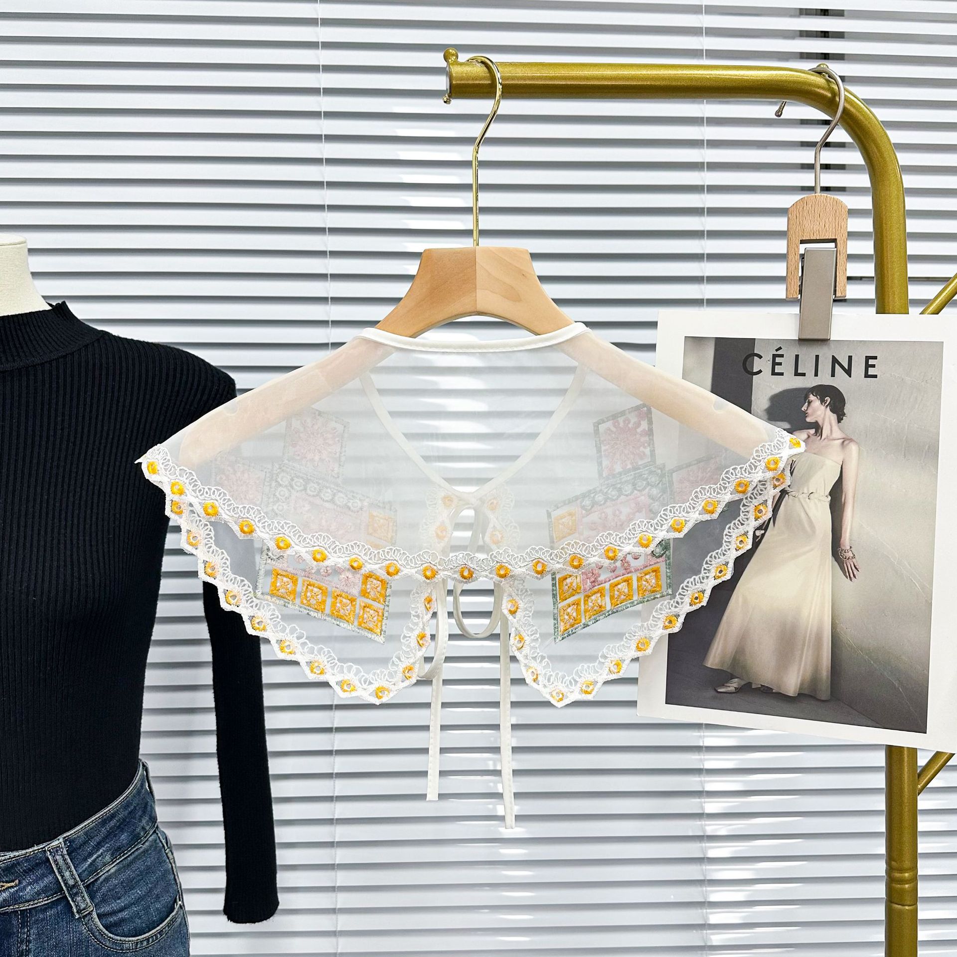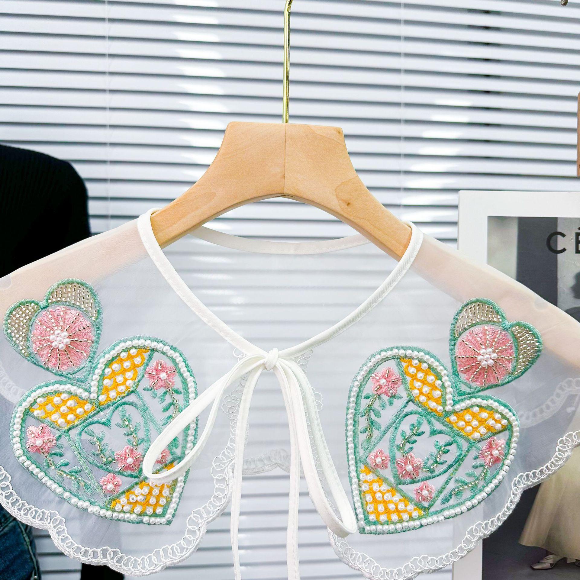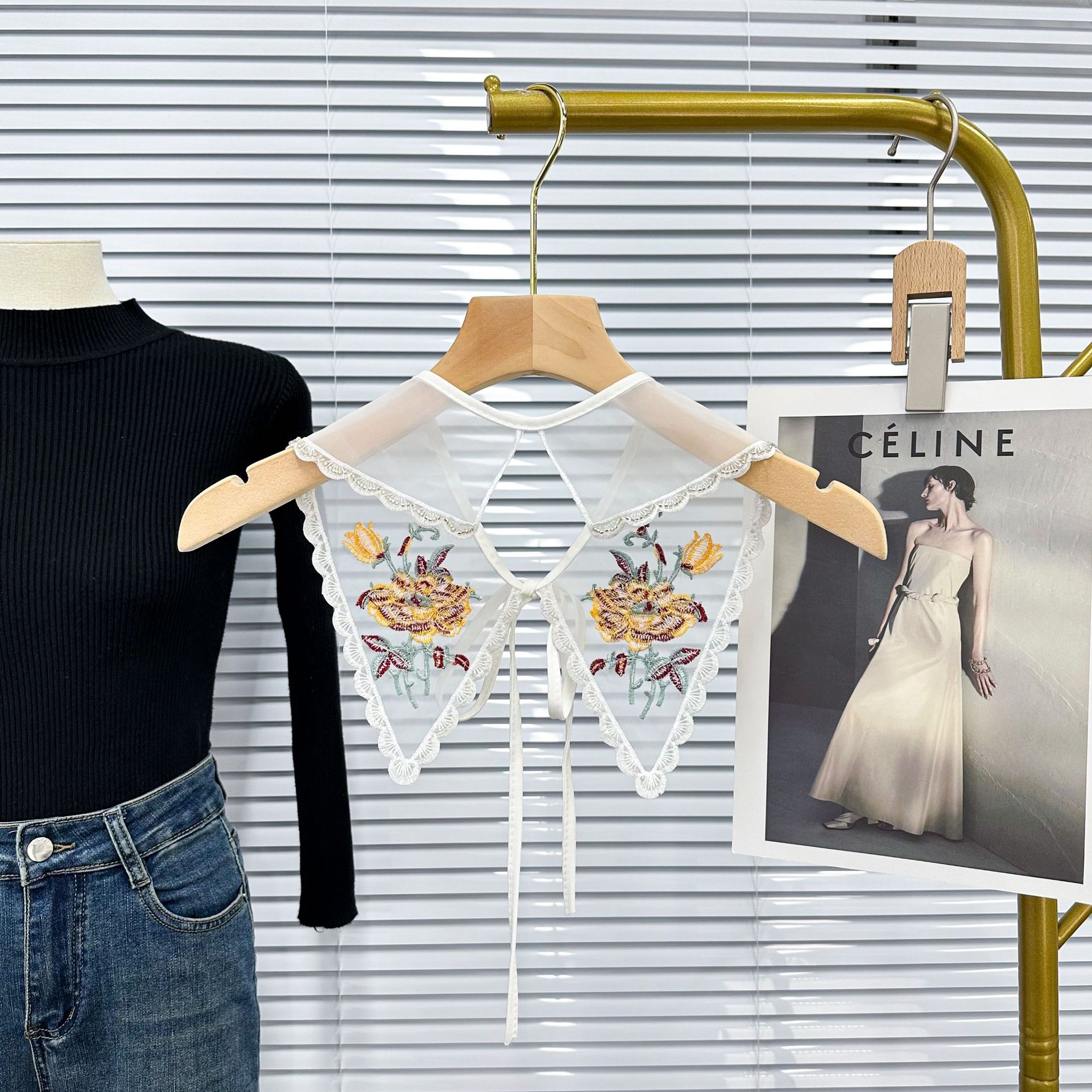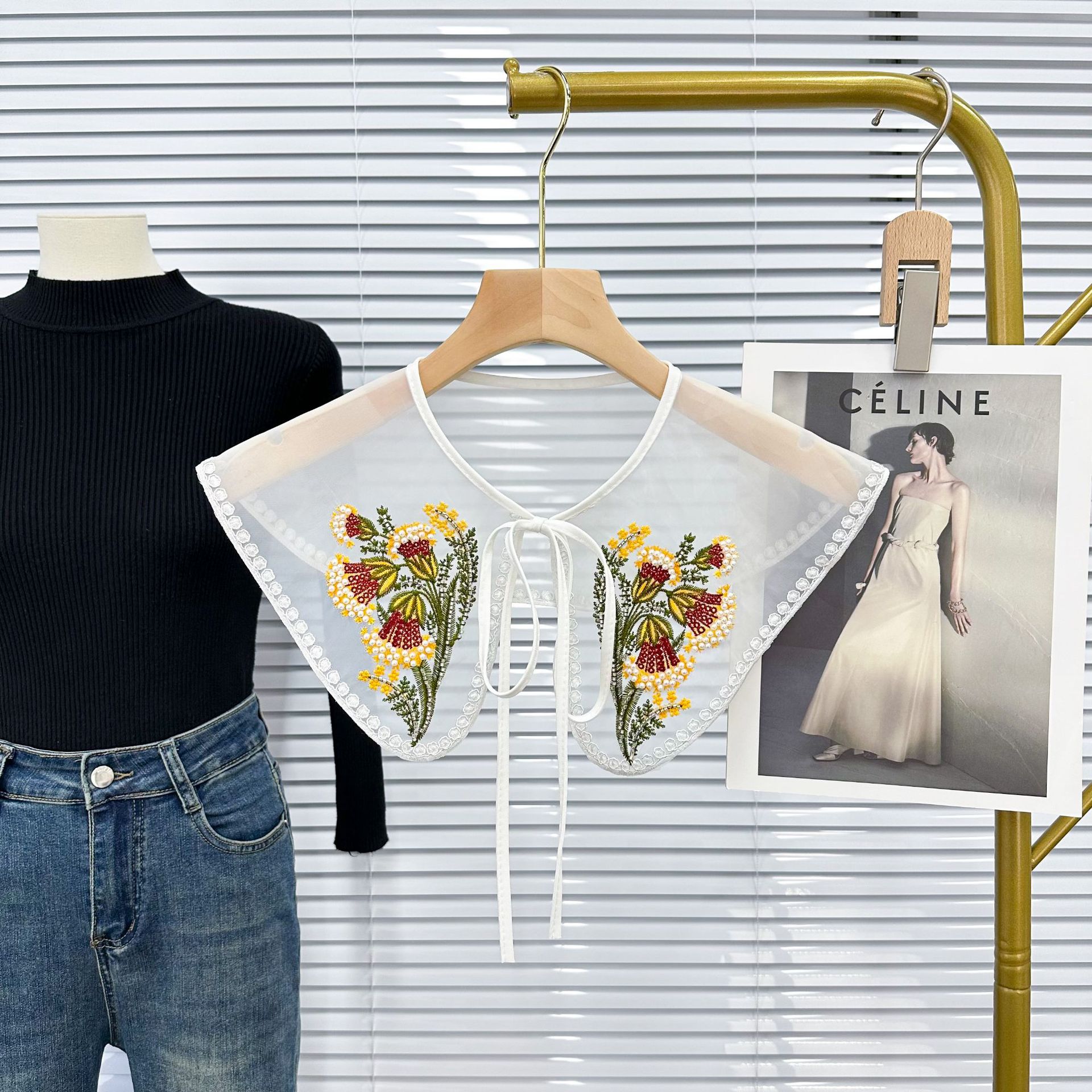 Nuevo estilo étnico, bordado colorido, cuello falso con cuentas, lazo con cordones, cuello decorativo con flores, cuello pequeño, exclusivo de comercio electrónico