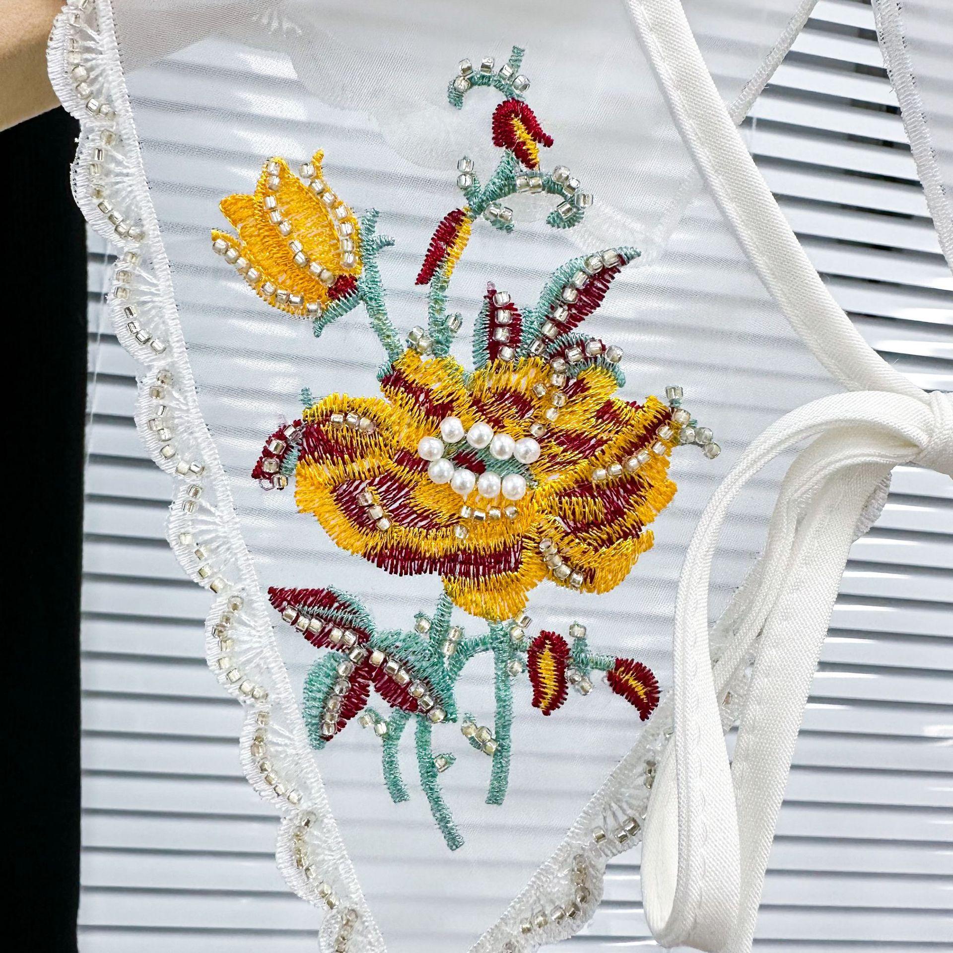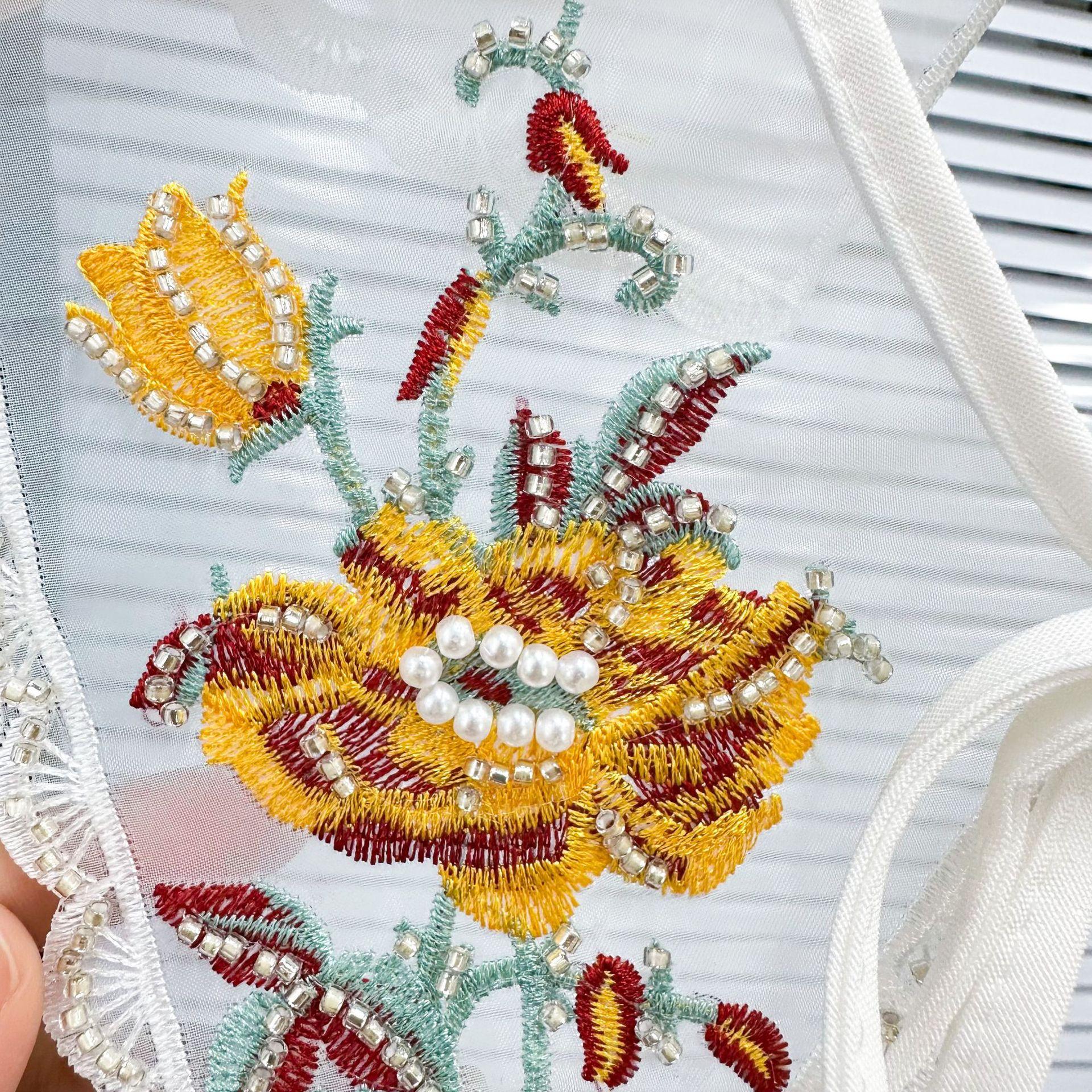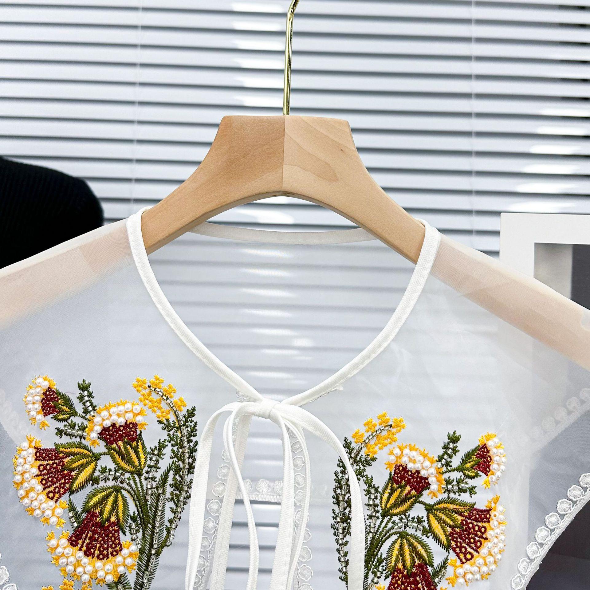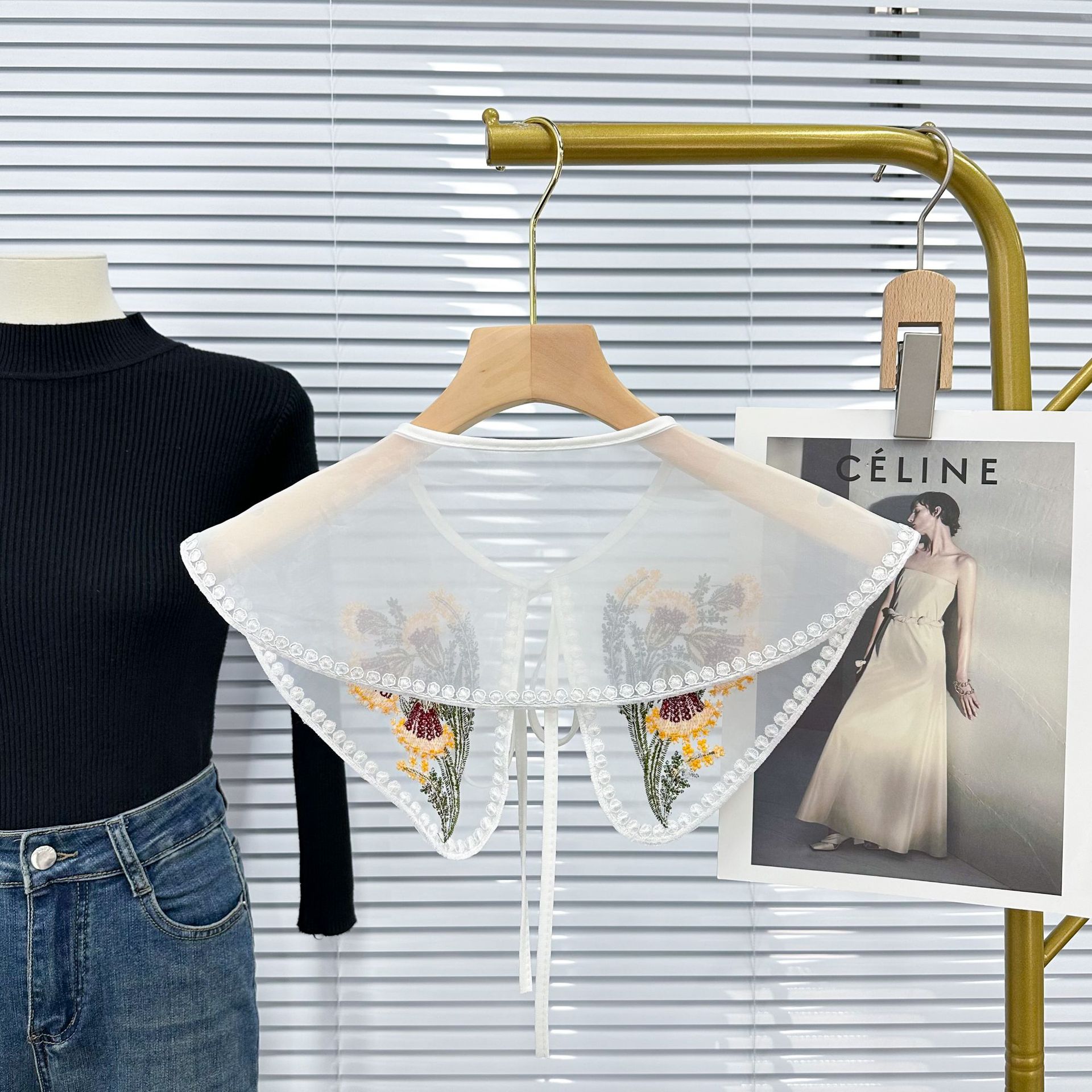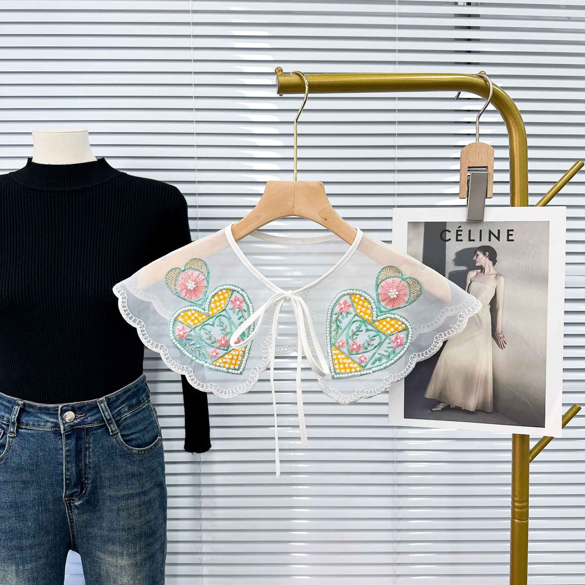 Nuevo estilo étnico, bordado colorido, cuello falso con cuentas, lazo con cordones, cuello decorativo con flores, cuello pequeño, exclusivo de comercio electrónico