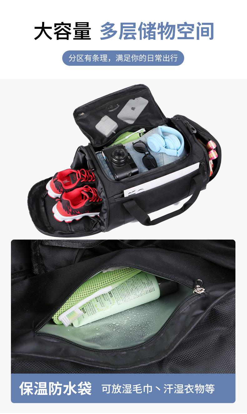 Bolsa de viaje de corta distancia de alta calidad, portátil, de gran capacidad, para equipaje, seca y húmeda, separada, para fitness, con estampado de logotipo, mochila impermeable.