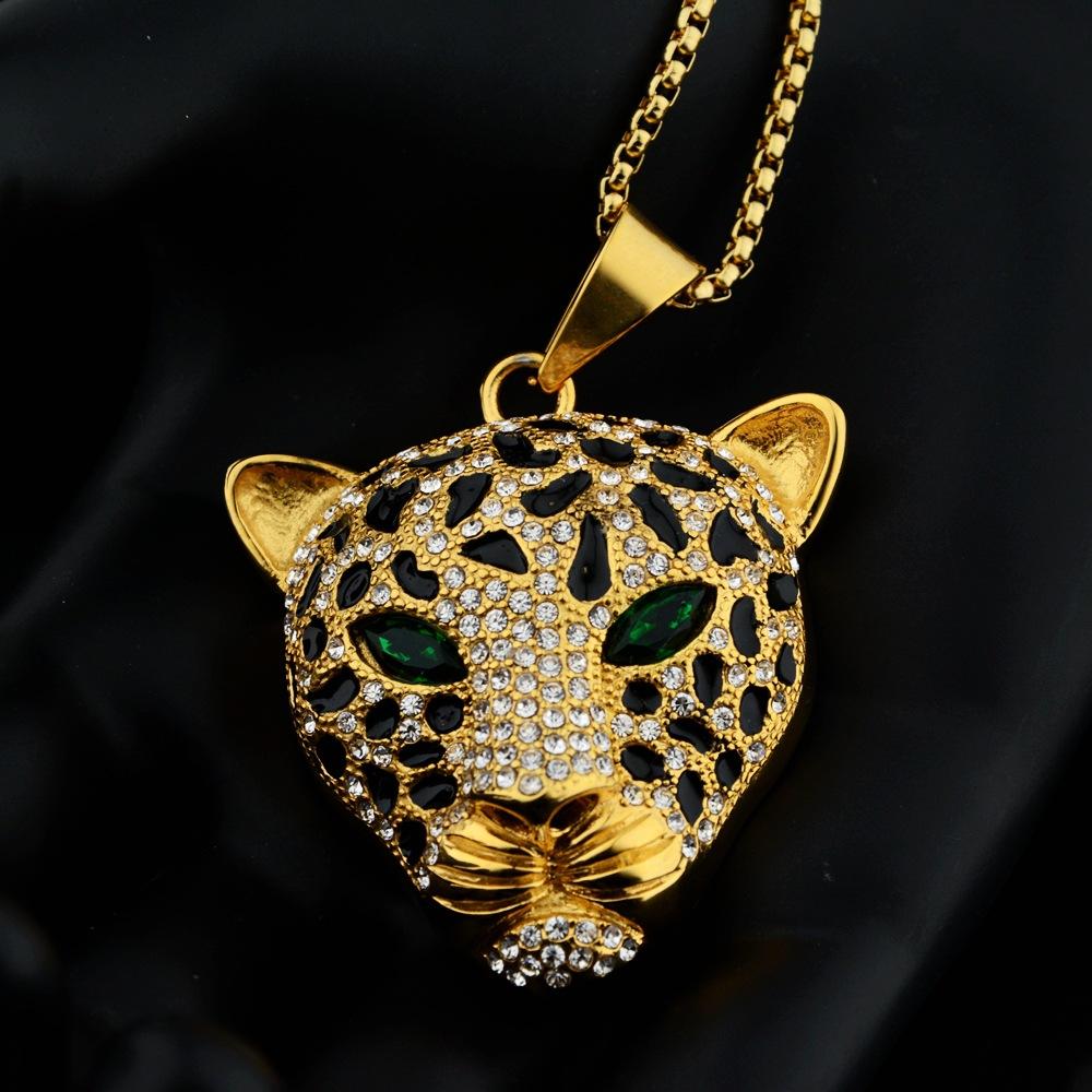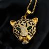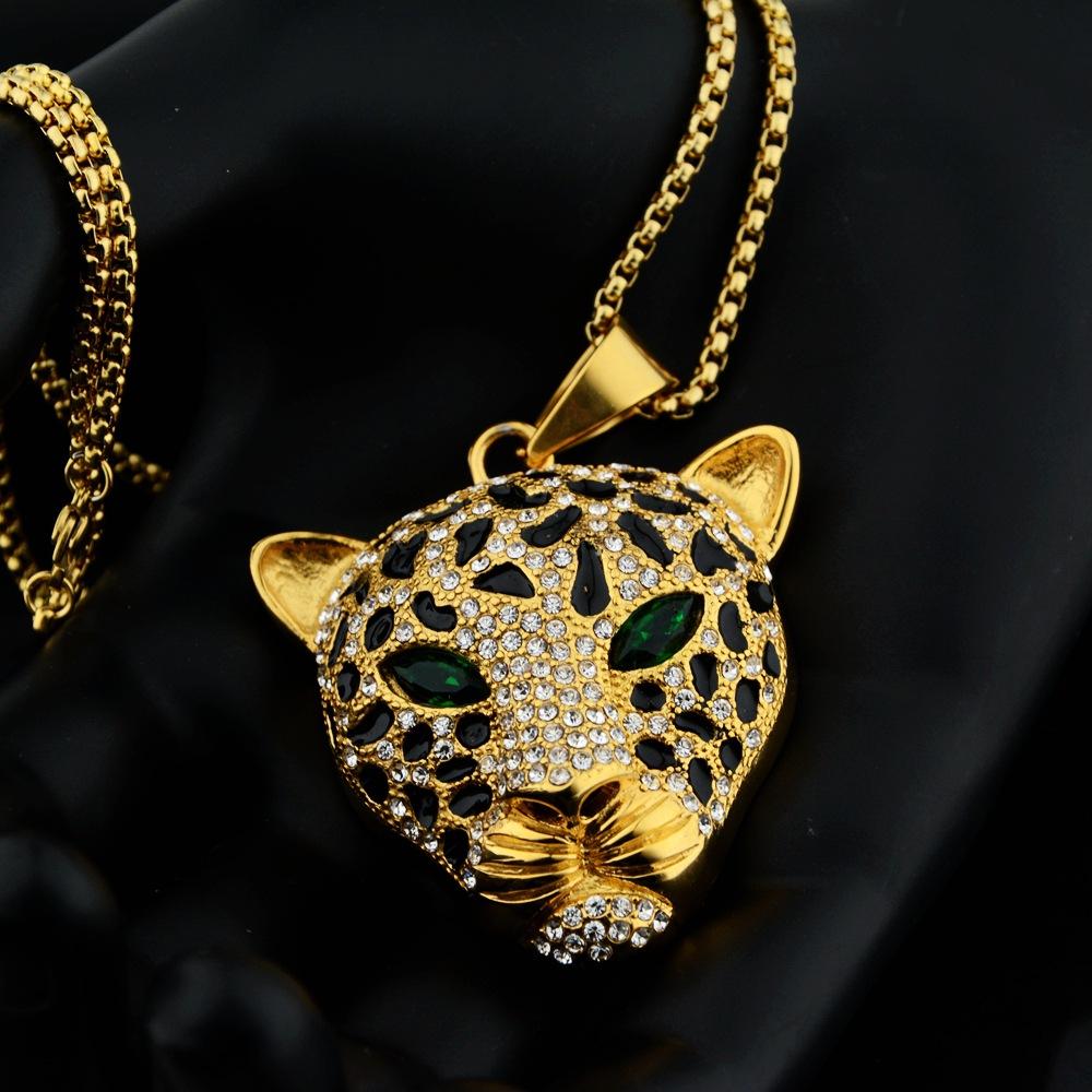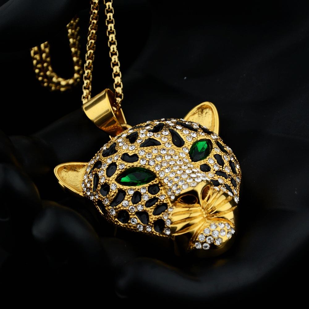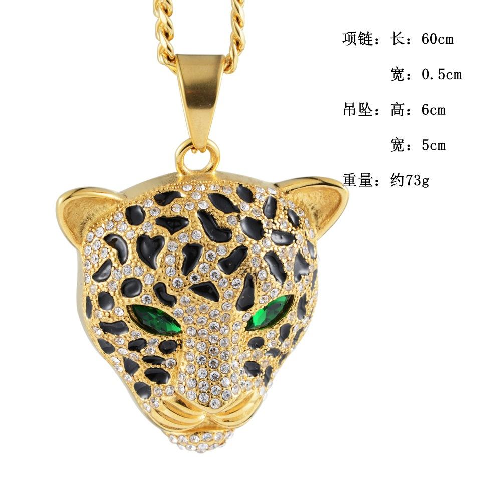 Collar con colgante de cabeza de leopardo de diamantes completos de acero de titanio de hip-hop de fuente de comercio exterior europea y americana personalizado para amantes de hombres y mujeres, cadena cubana