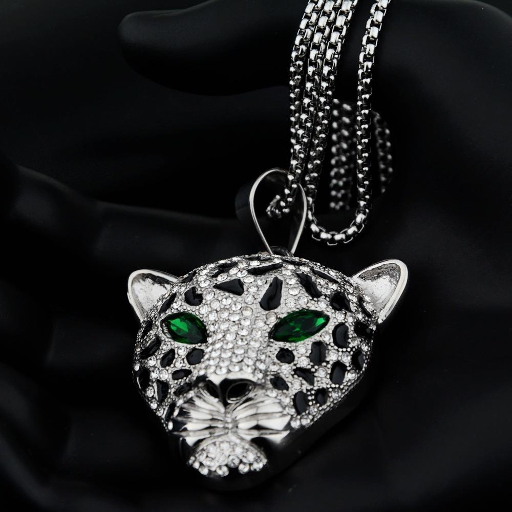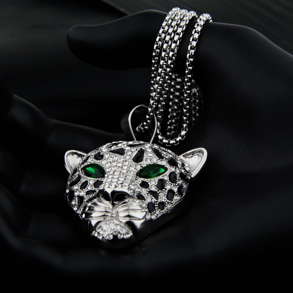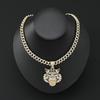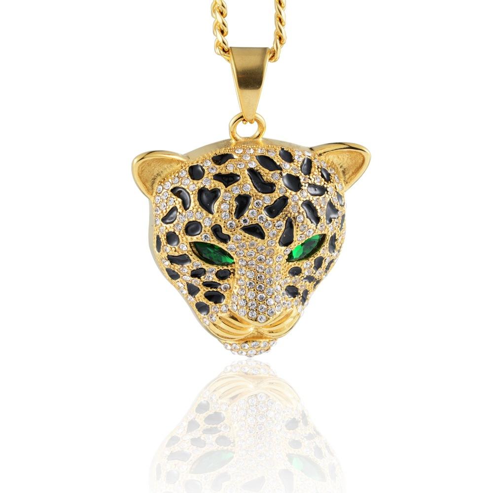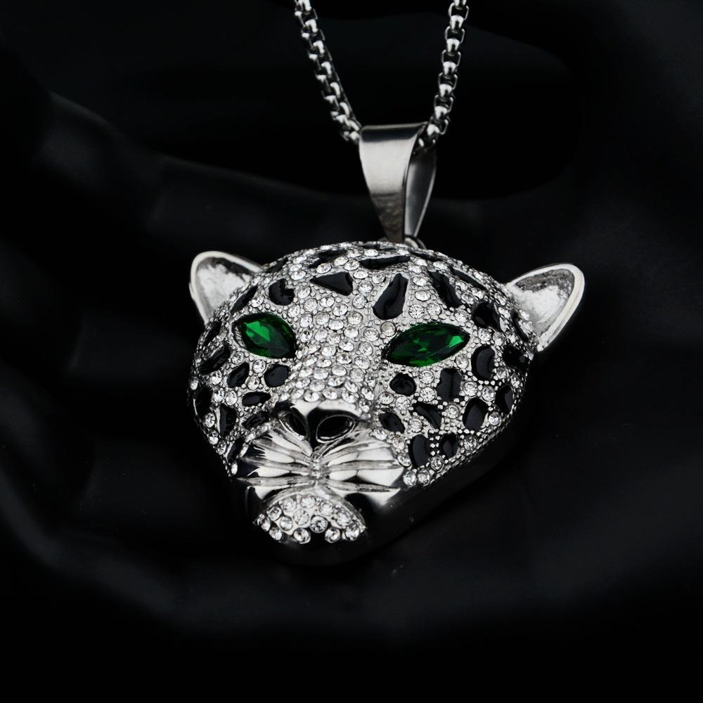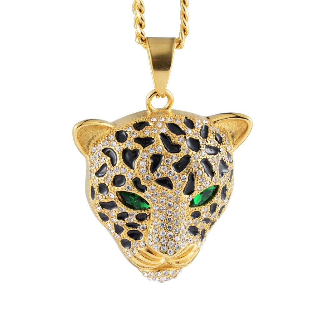 Collar con colgante de cabeza de leopardo de diamantes completos de acero de titanio de hip-hop de fuente de comercio exterior europea y americana personalizado para amantes de hombres y mujeres, cadena cubana