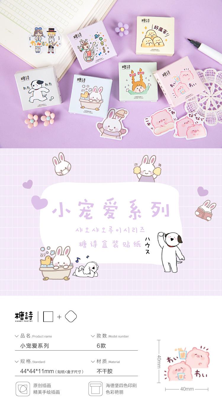 Pegatinas en Caja Sugar Poem Serie Pequeña Linda Pegatinas Adhesivas Dibujar Cuenta a Mano Álbum Artículo Decoración diy 45