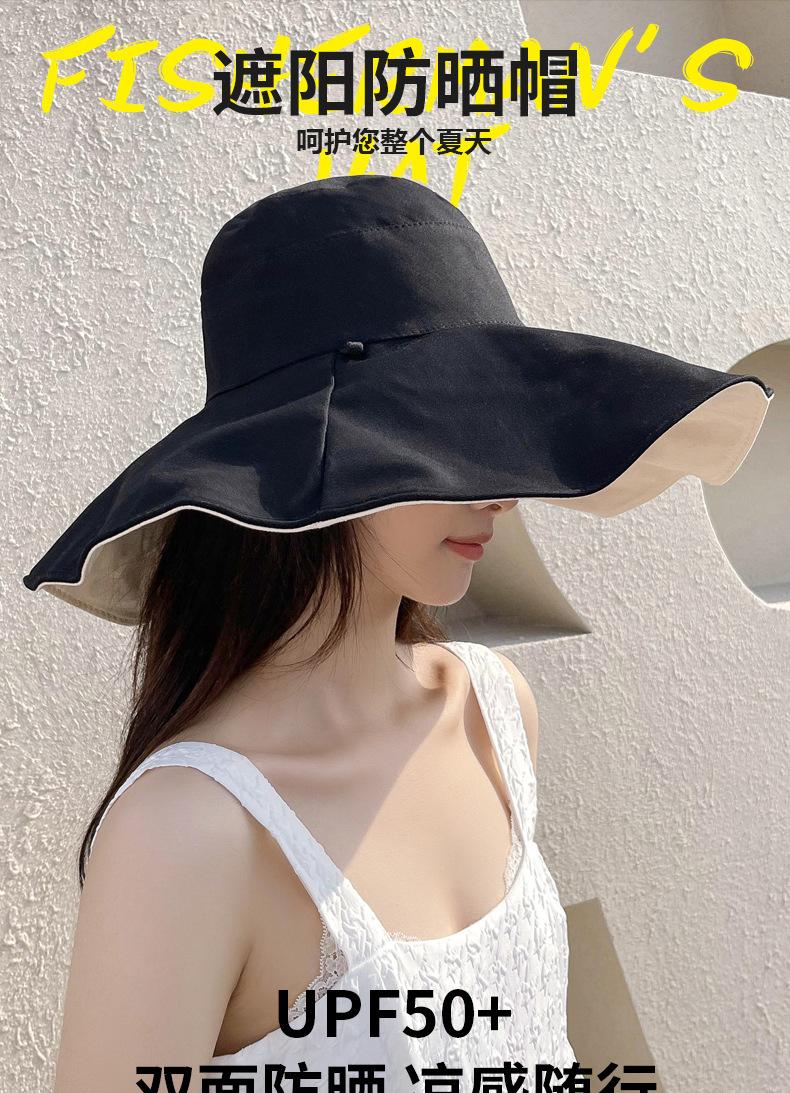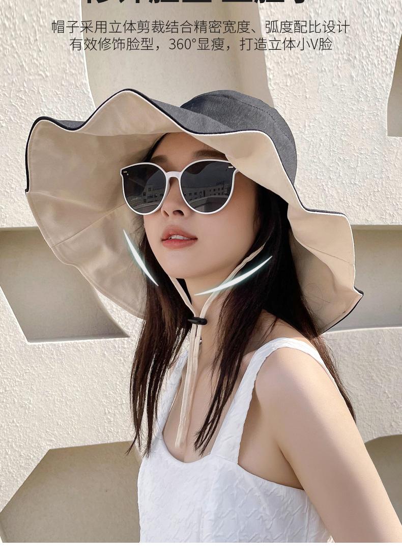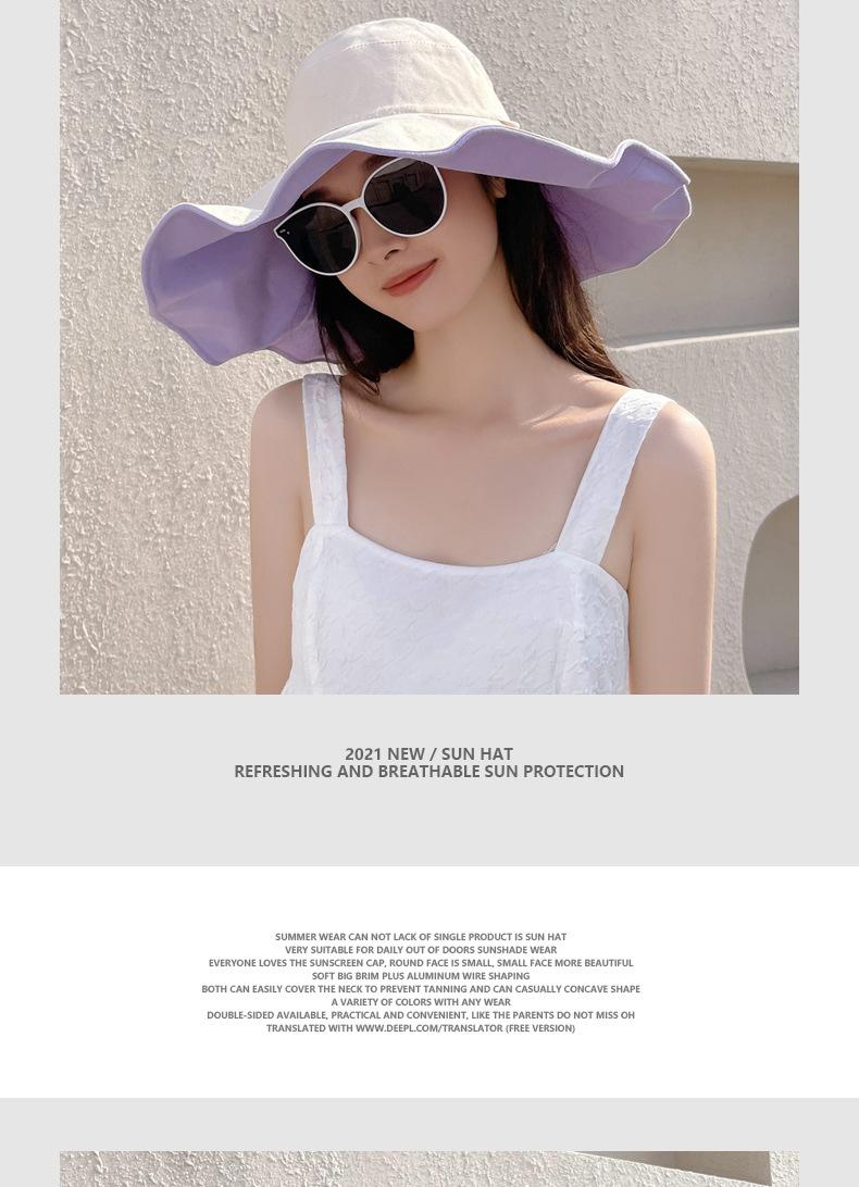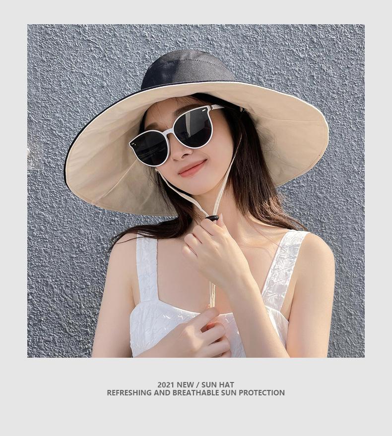 Sombrero de Pescador Coreano para Mujer Verano Nuevo Sombrilla Ala Grande Sombrero para el Sol Plegable Protección UV Sombrero para el Sol