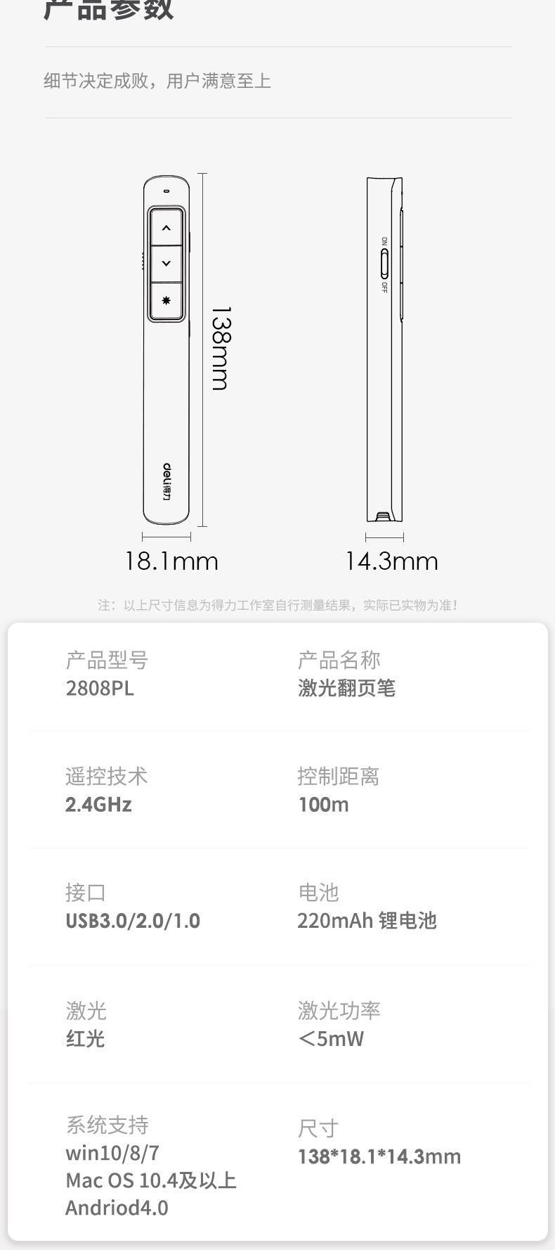 Deli 2808PL - Bolígrafo láser multifunción con control remoto para profesores