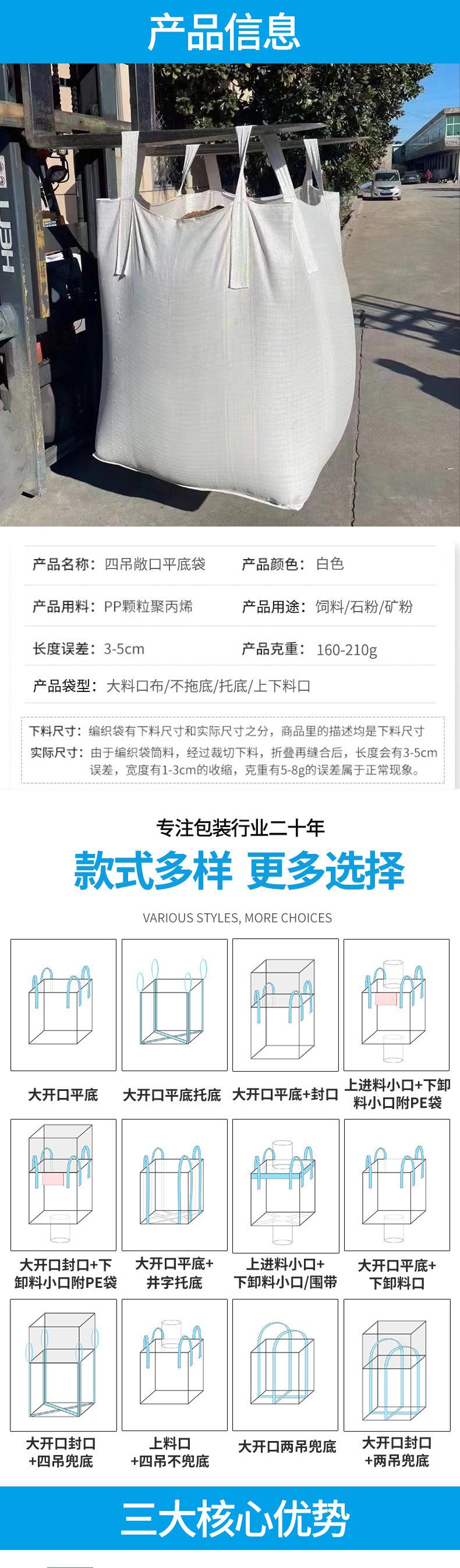 Bolsa de tonelada blanca, 1 tonelada, 2 toneladas de espesor, bolsa contenedora de cuatro grúas, puente de precarga, paleta blanda de plástico, carretilla elevadora, bolsa de tonelada, venta al por mayor