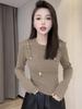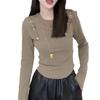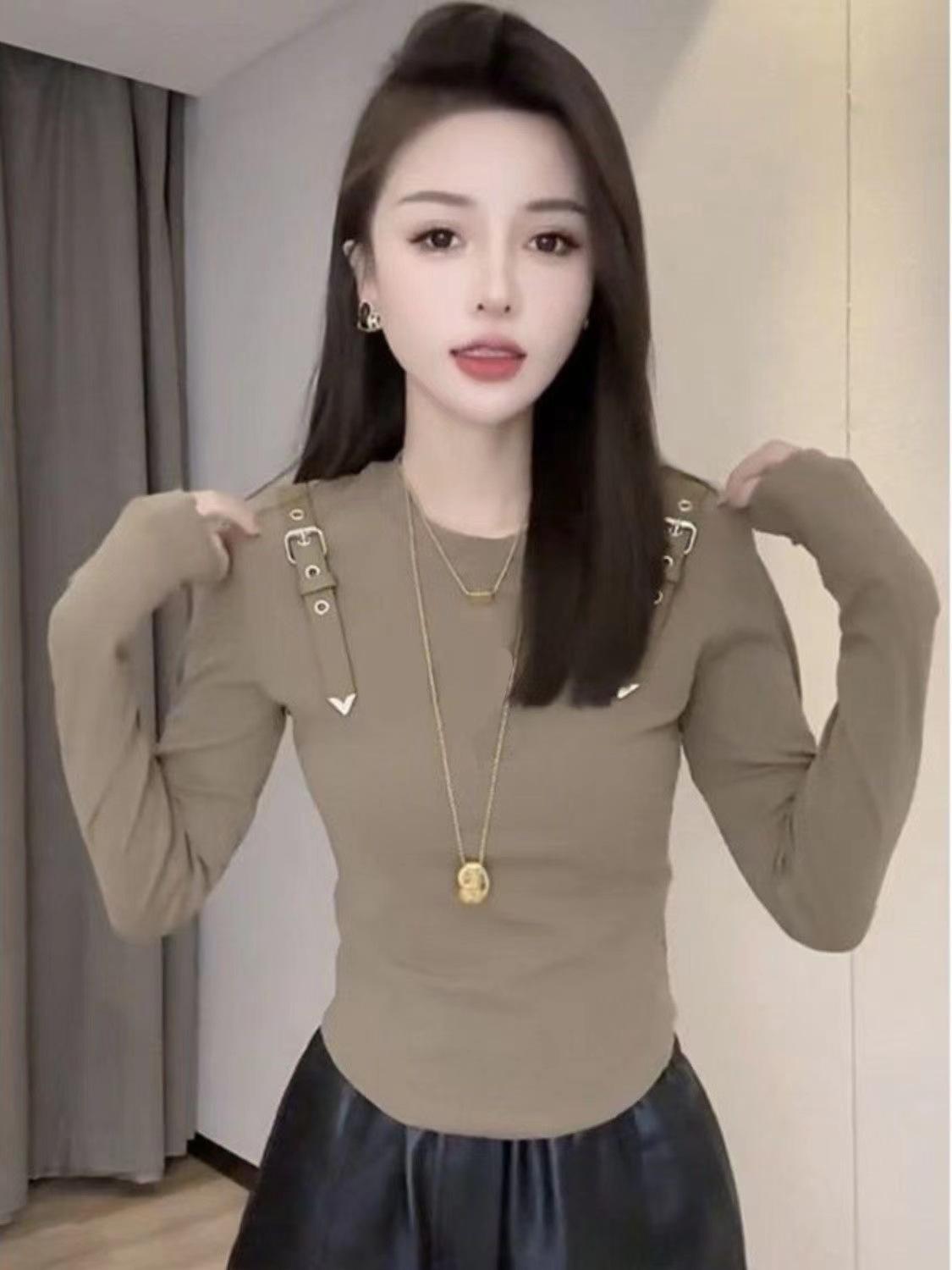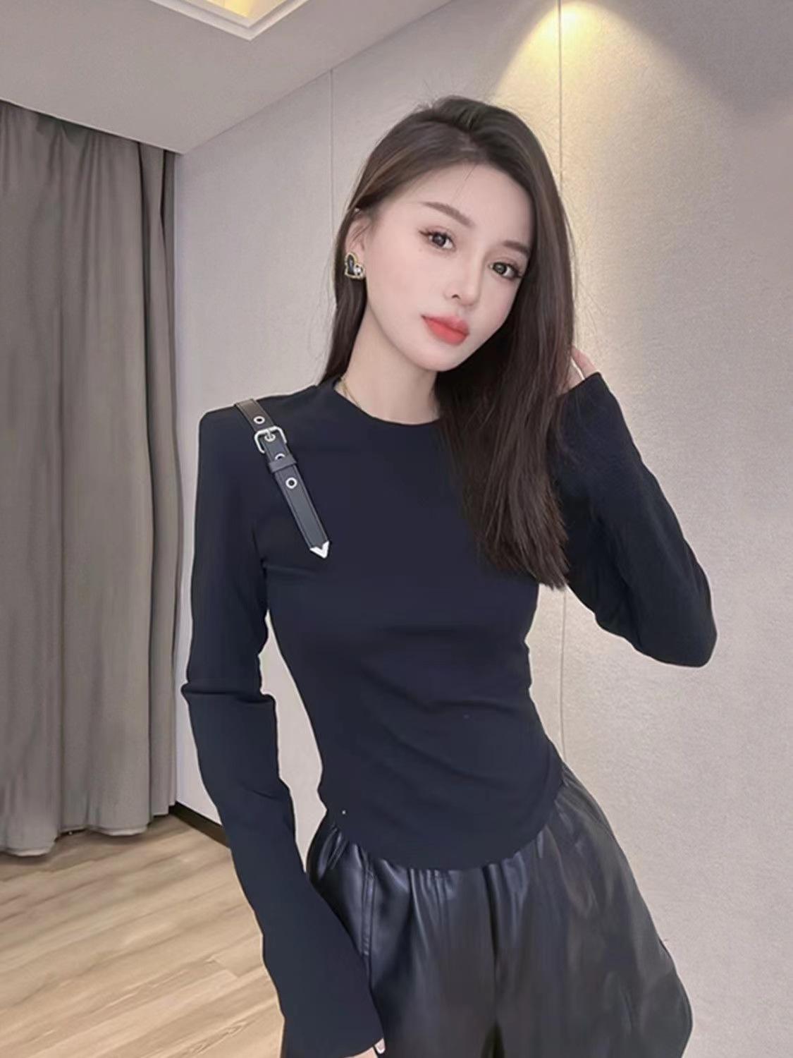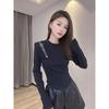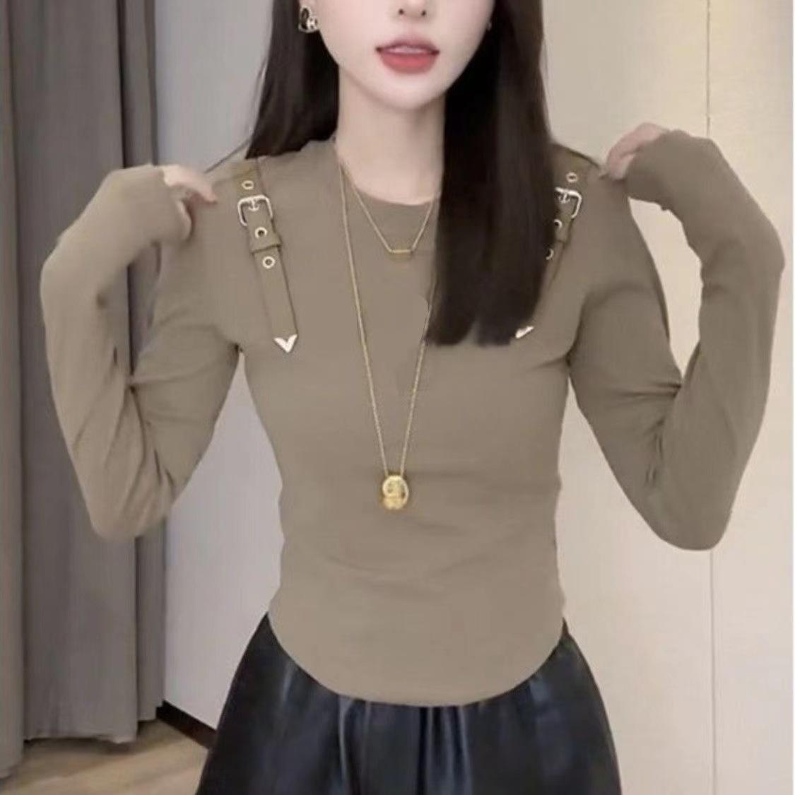 Camiseta de manga larga con hombros descubiertos y temperamento coreano de algodón 40 para mujer, otoño 2023, nueva ropa ajustada para chica.