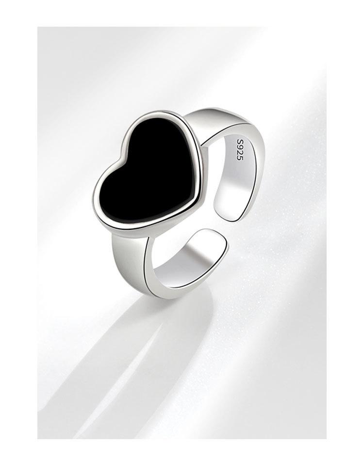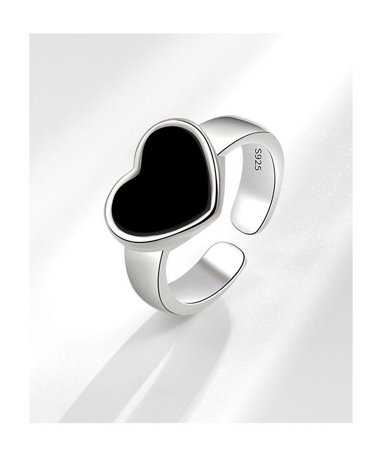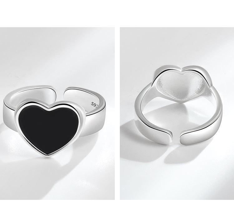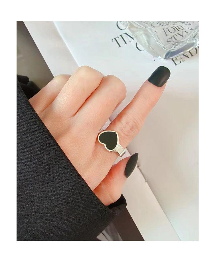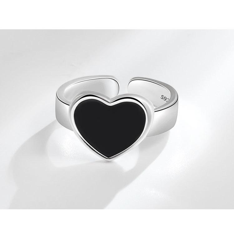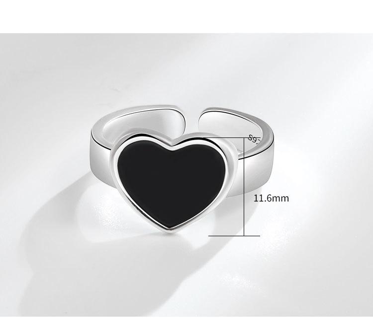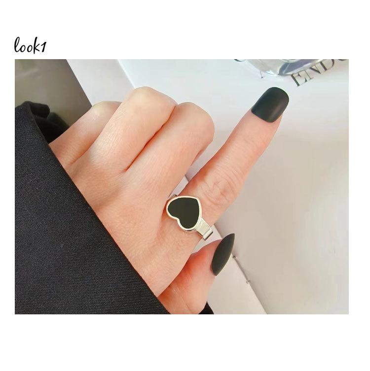 Anillo de corazón negro moda femenina personalidad simple temperamento nicho amor anillo abierto anillo para dedo comida marea mayoreo
