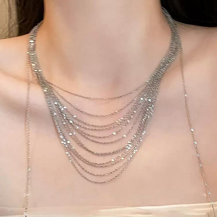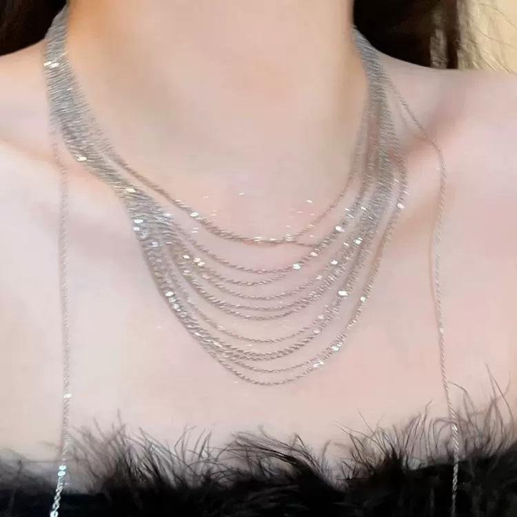 Collar Choker Europeo y Americano Celebrante de Internet Lujo Multicapa Borla Larga Cadena Fina Collar Vestido Accesorios de Banquete