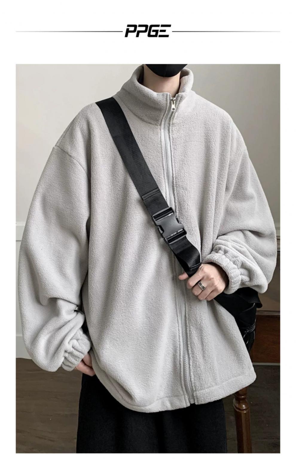 Suéter tipo cárdigan de polar para hombre, chaqueta holgada y gruesa de marca de moda americana para otoño e invierno.