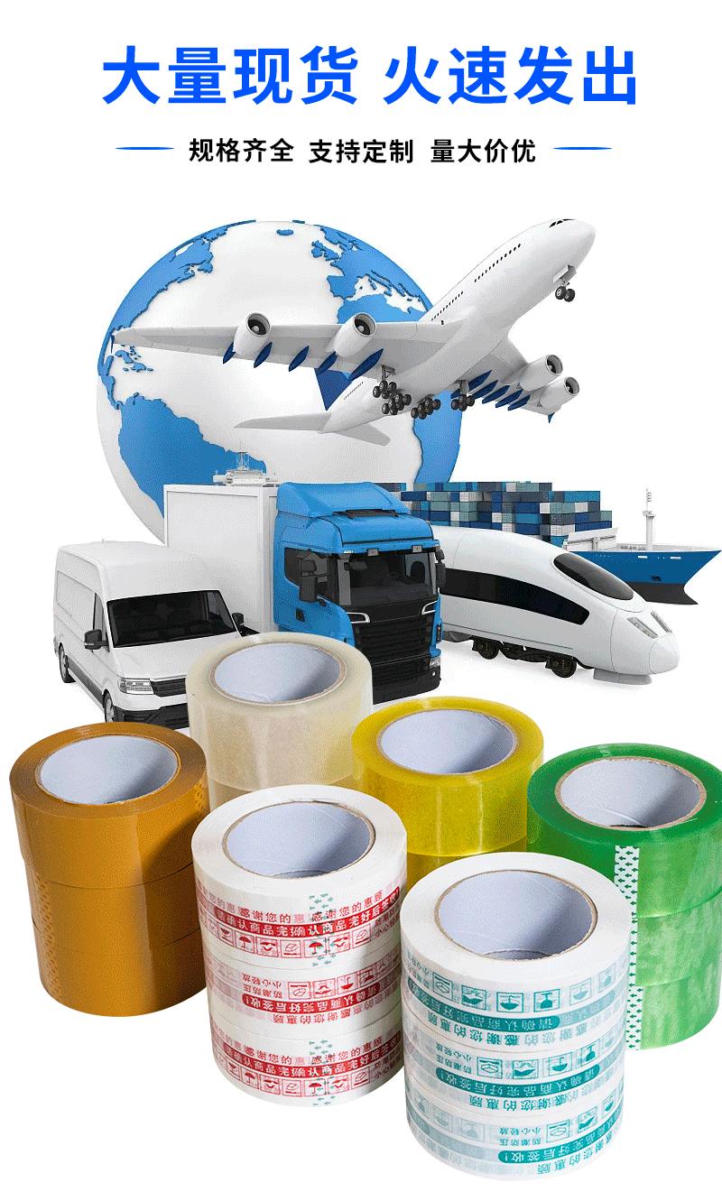Cinta de advertencia para embalaje de comercio electrónico con franqueo, embalaje exprés, tela adhesiva de sellado transparente, impresión en rollo grande, adhesivo de sellado al por mayor