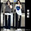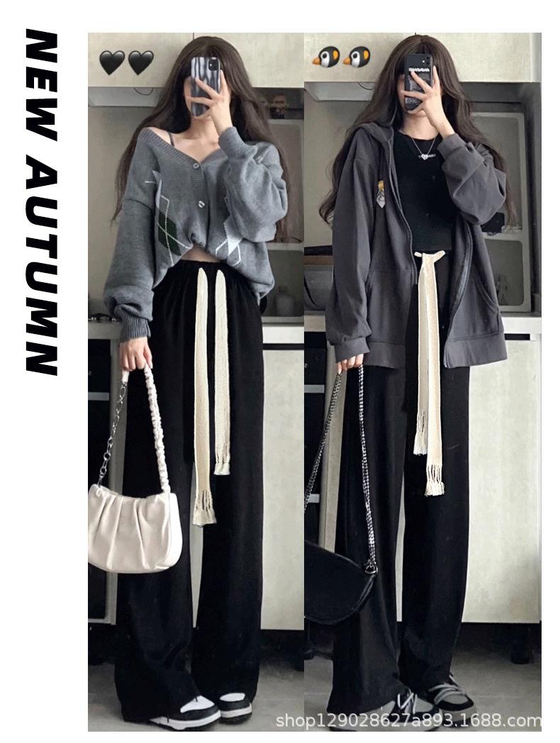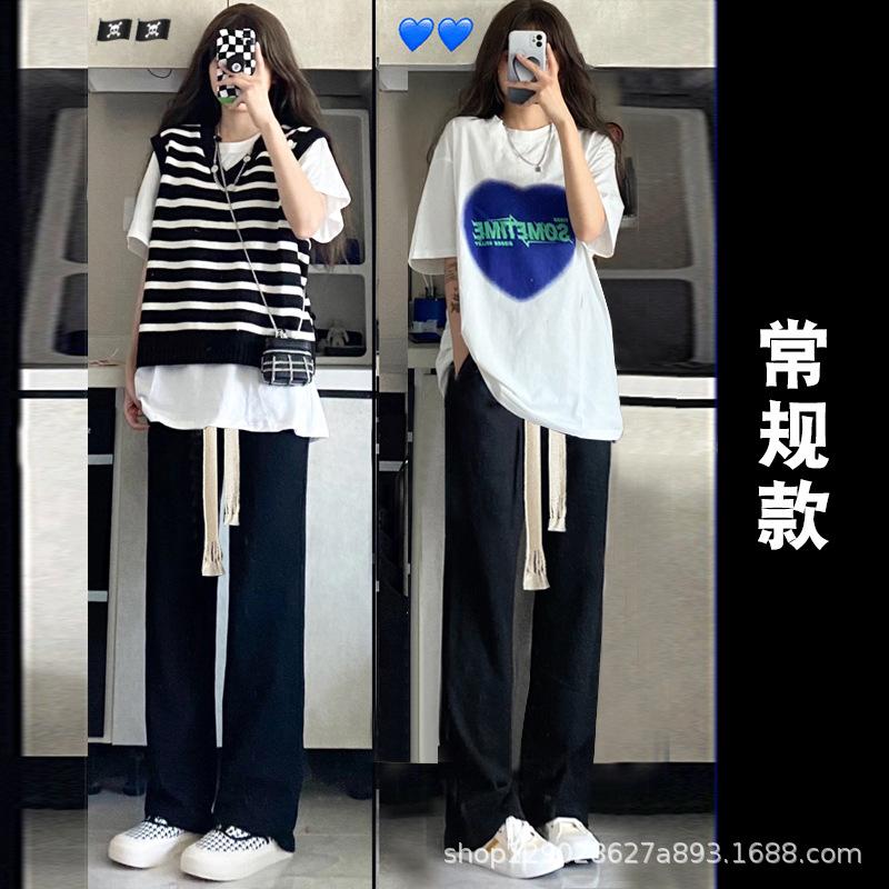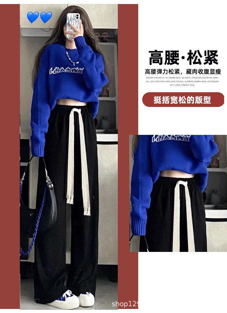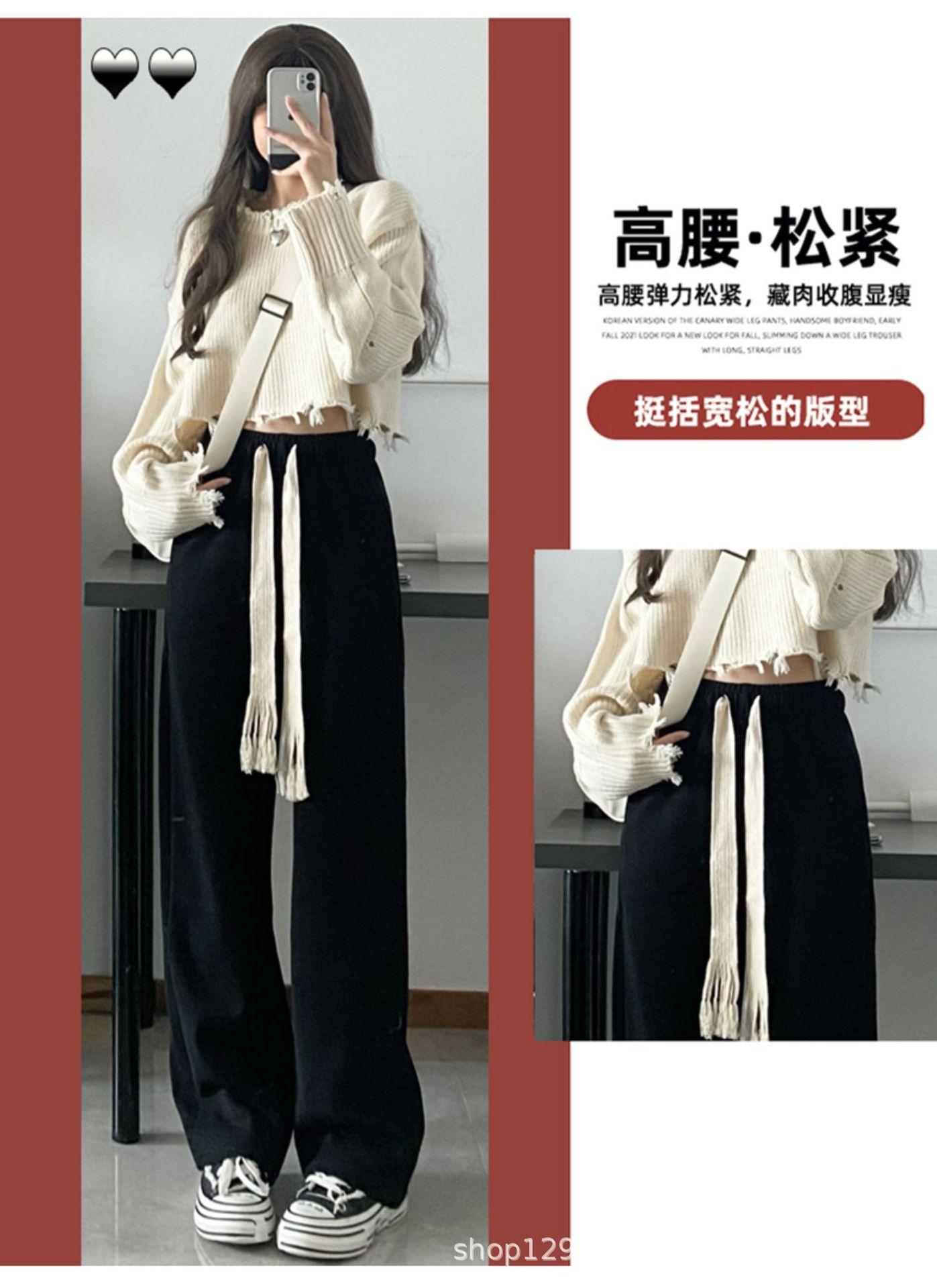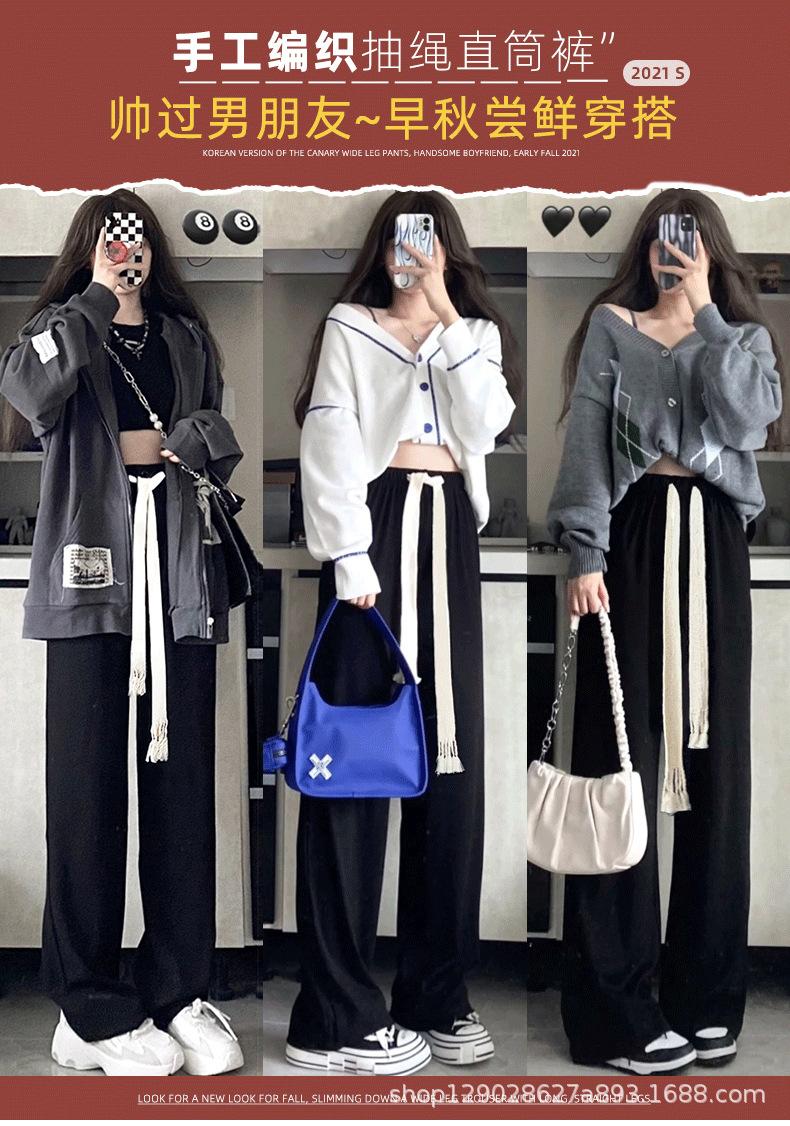 Pantalones anchos de cuerda trenzada para mujer verano nuevo cintura alta rectos drapeados pantalones deportivos delgados sueltos casuales