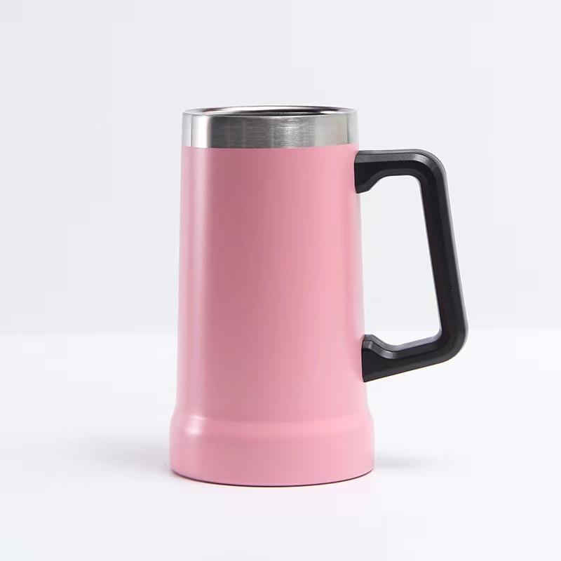 Vaso de cerveza con asa de venta caliente transfronteriza, taza con pulverizador de acero inoxidable 304, taza térmica de doble capa de gran capacidad