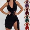 Vestido de punto sin espalda de color sólido, nuevo sexy con perspectiva hueca, de verano 2023, transfronterizo, europeo y americano, para mujer, para vacaciones, festival de música