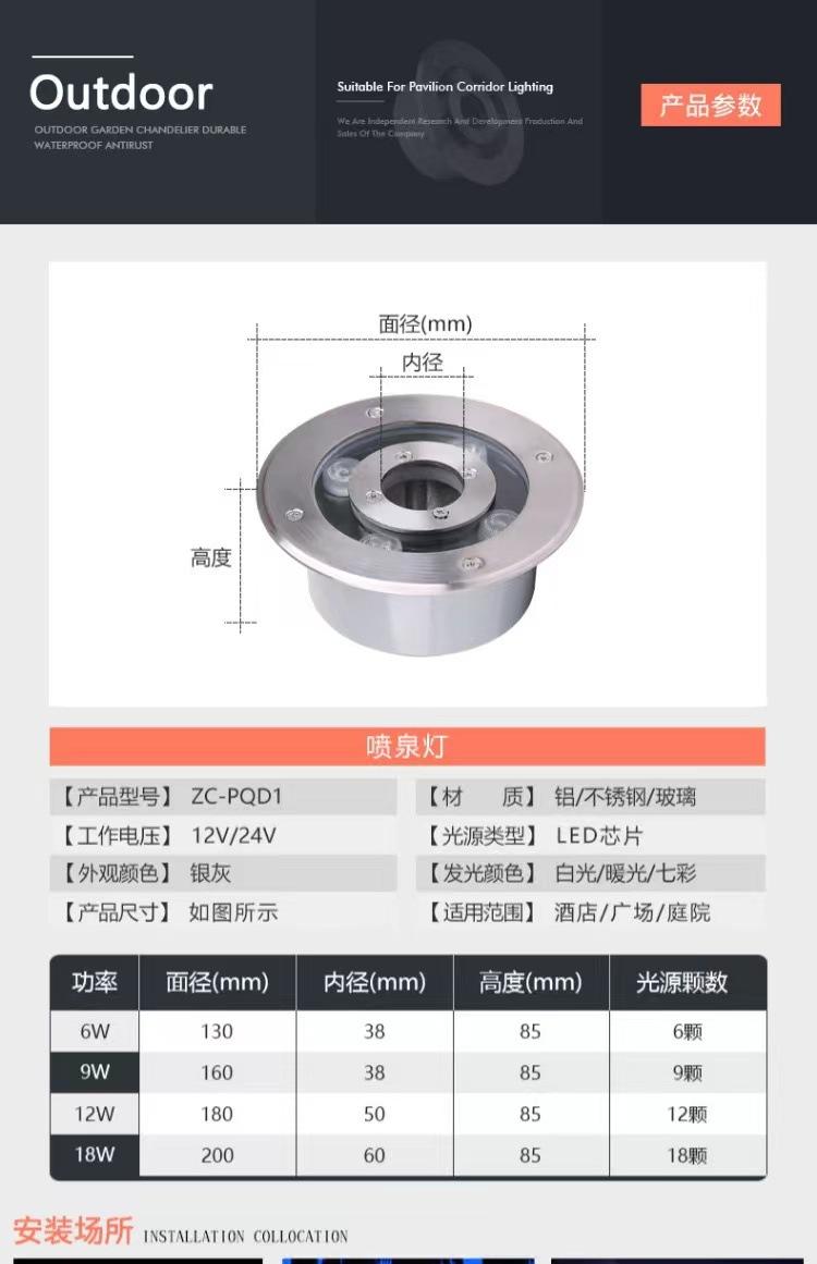 Lámpara LED para fuente impermeable colorida lámpara Yongquan 12V24V baja presión lámpara de agujero medio lámpara de paisaje lámpara subacuática para piscina estanque de peces