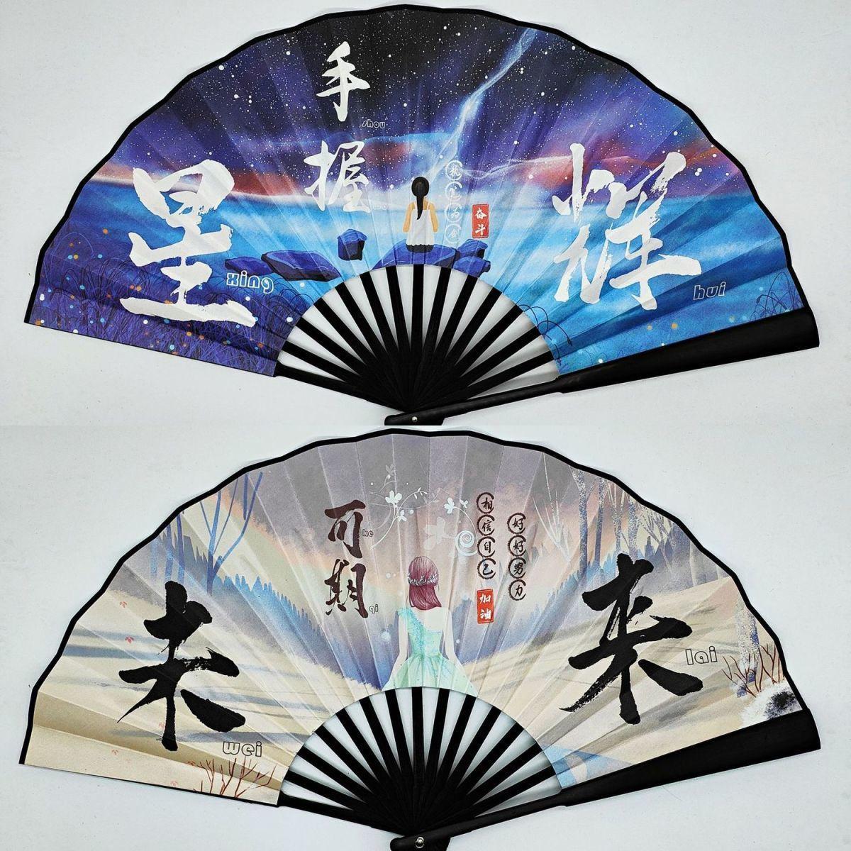 Abanico de Estilo Chino 10 pulgadas Estudiante Abanico Plegable Tradicional Tela de Seda Estilo Ilustración Abanico de Bar Disco Plegable Venta al por Mayor Arte de Bambú Material de Bambú