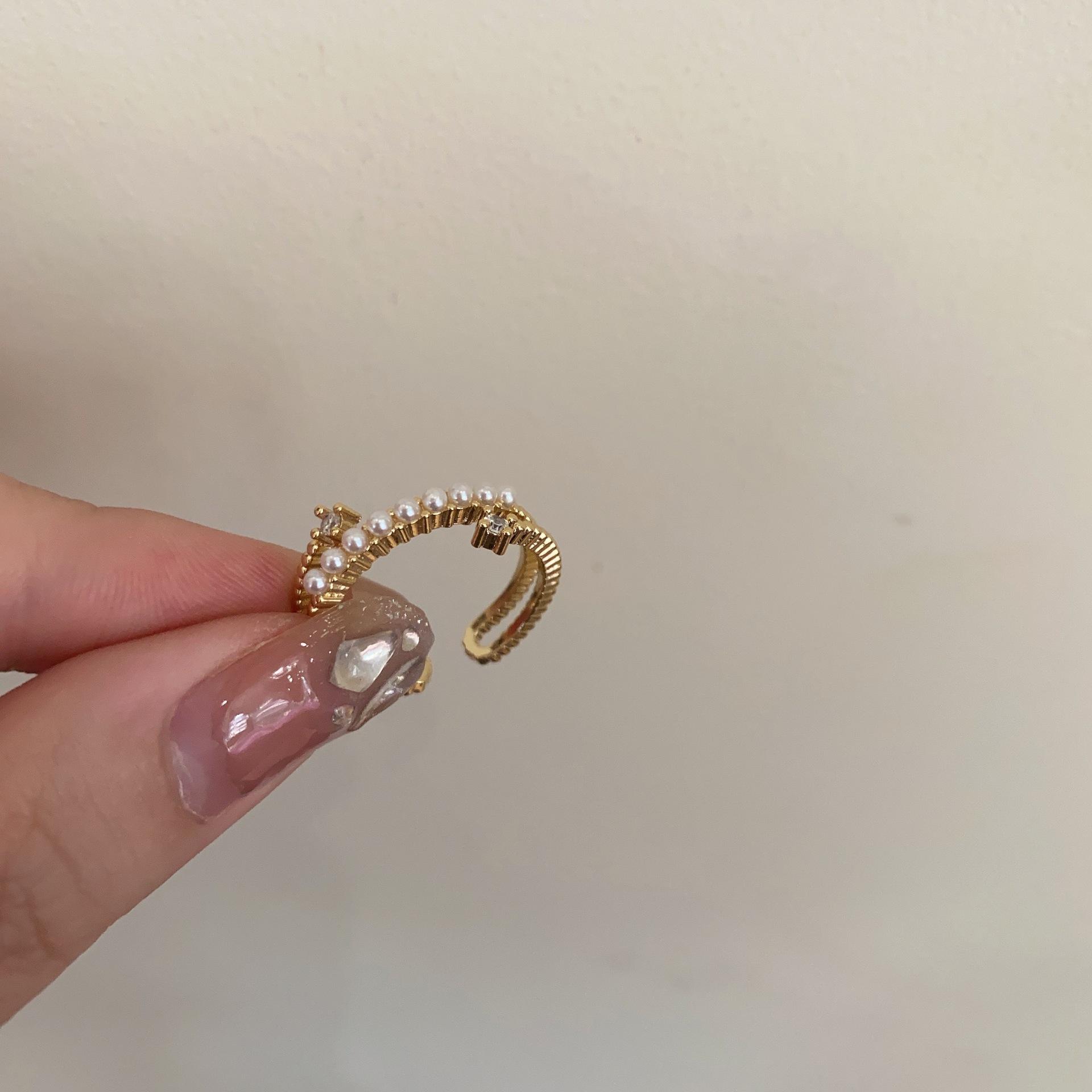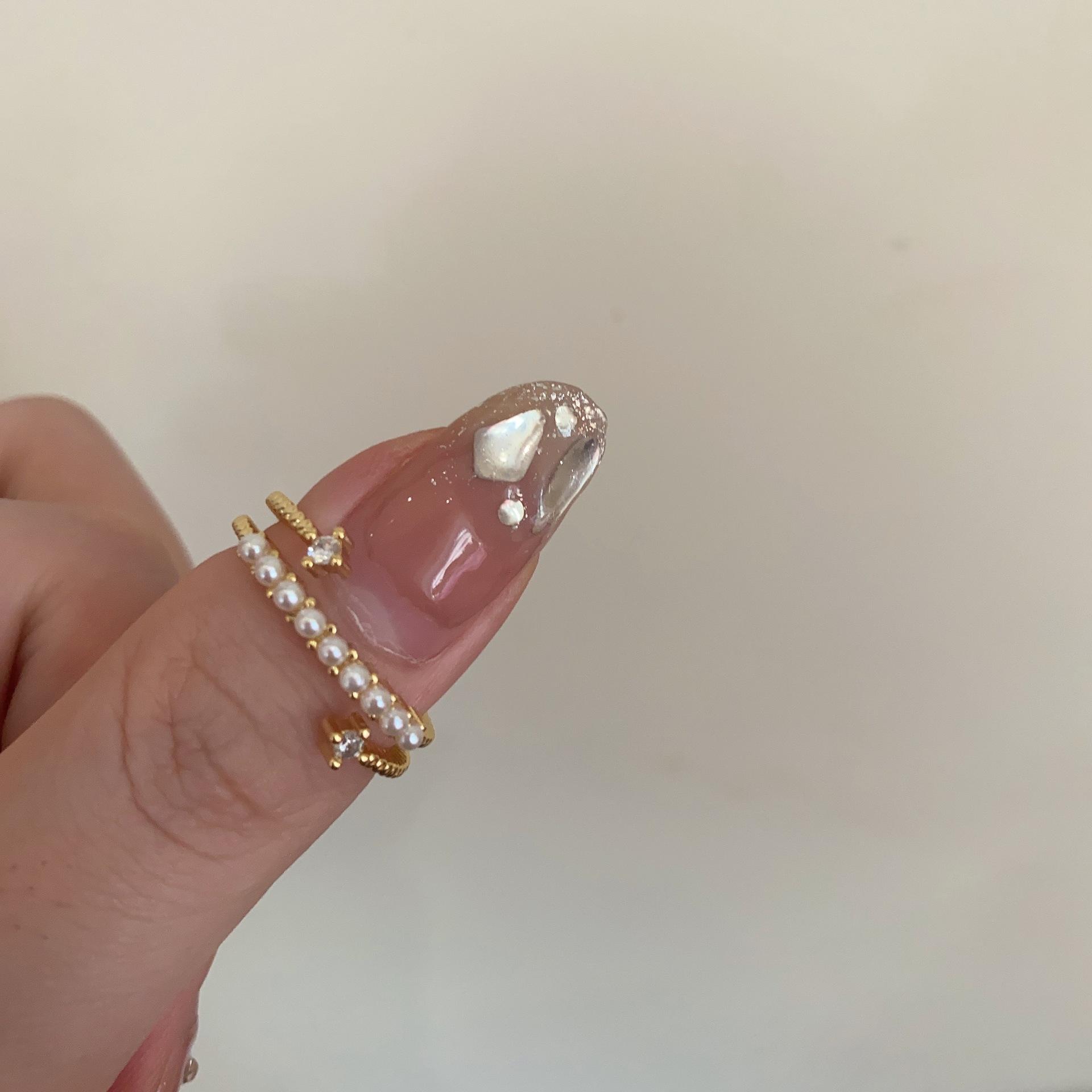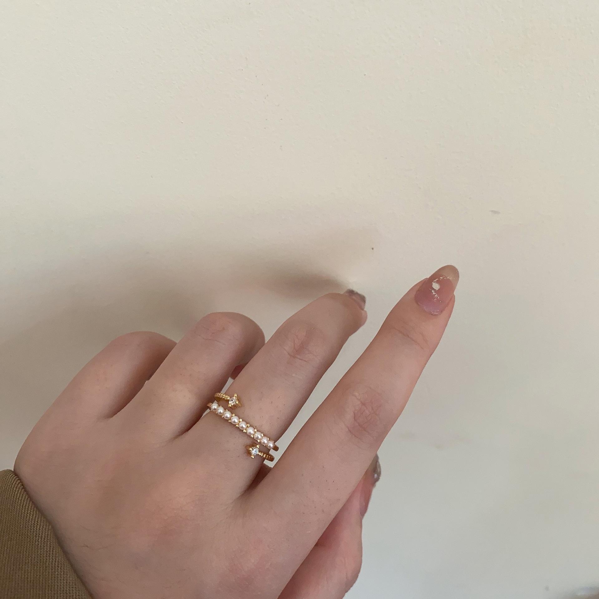 Anillo abierto de lujo ligero con forma de estrella de perla Awn para mujer, nicho interior, anillo de viento frío de alta calidad, pulsera ajustable con temperamento