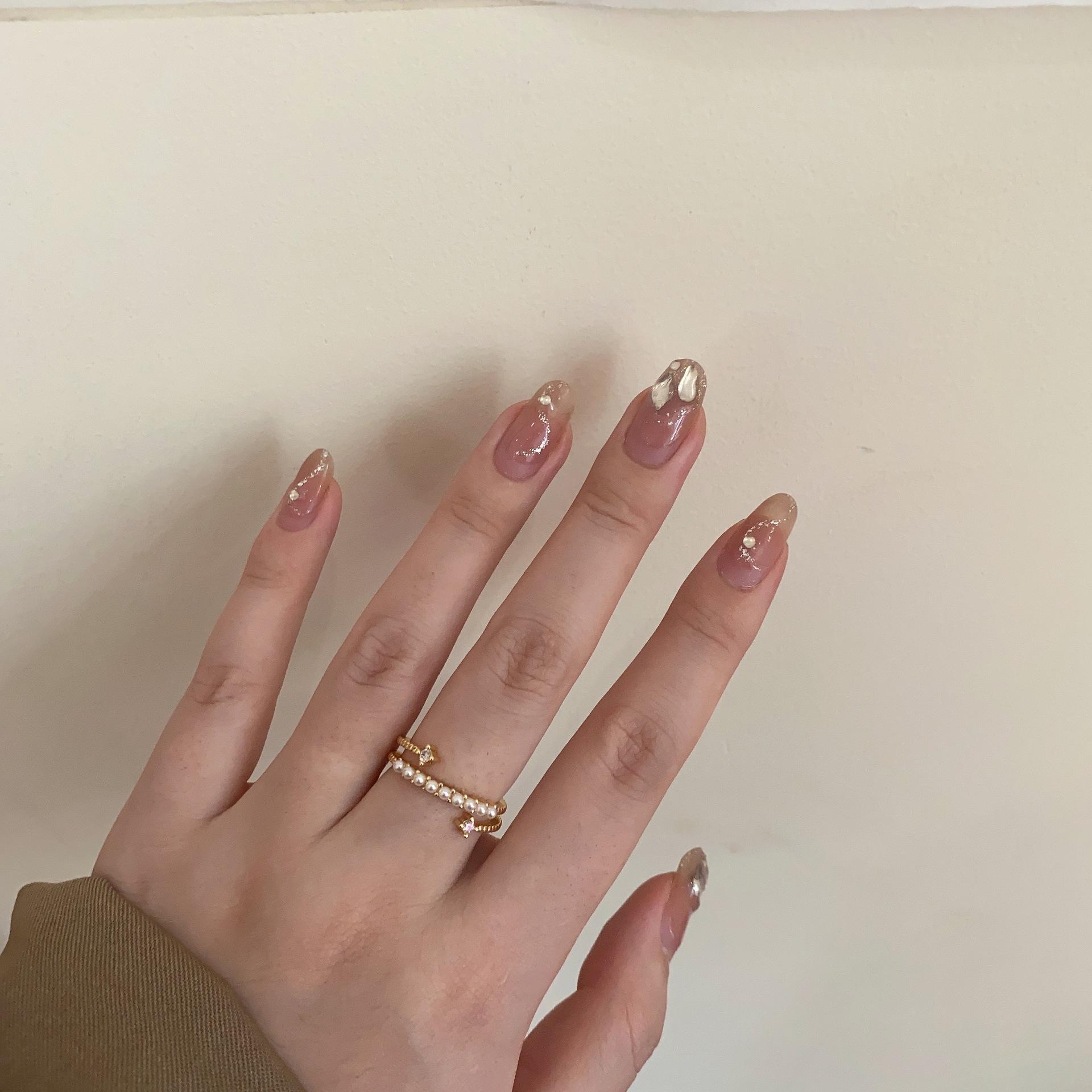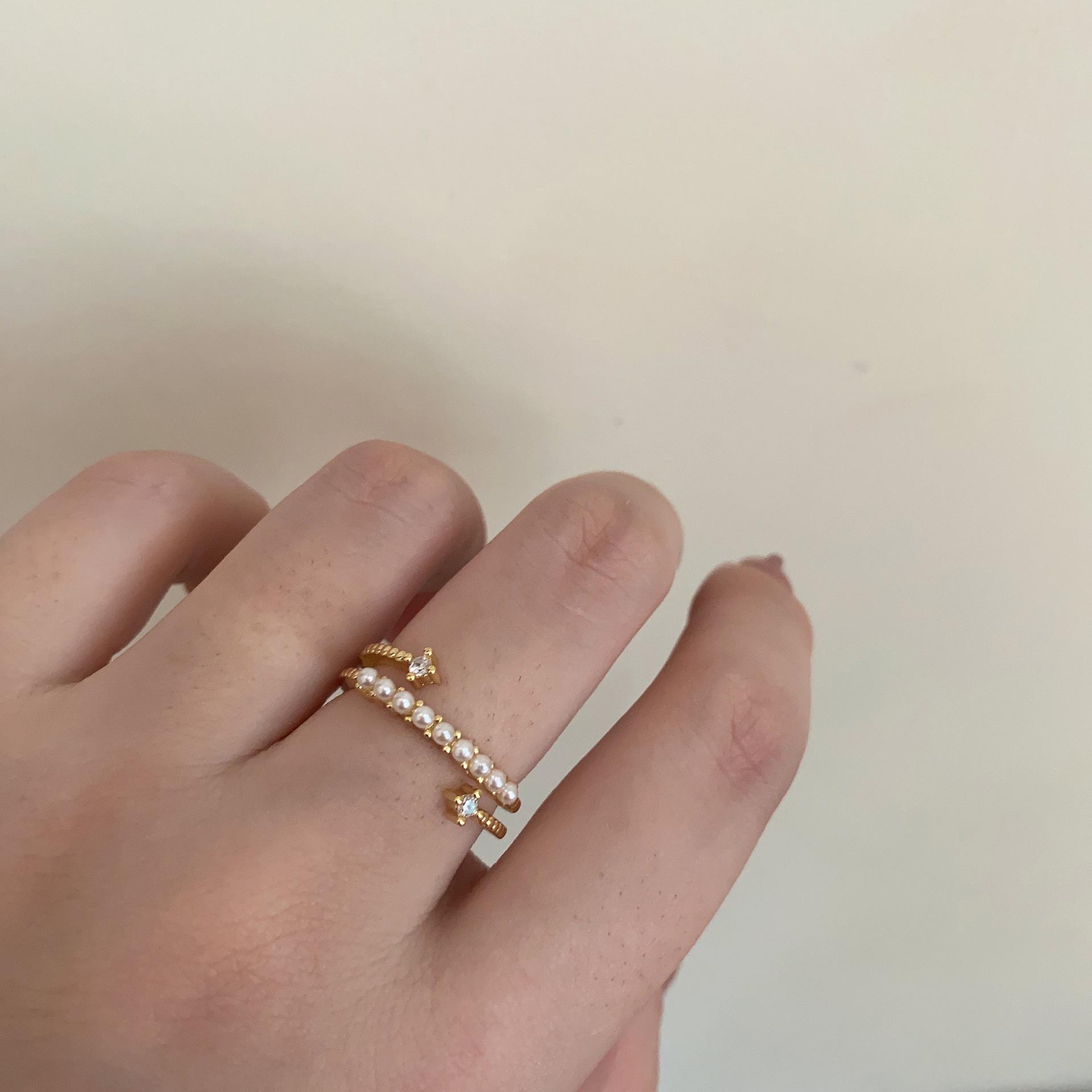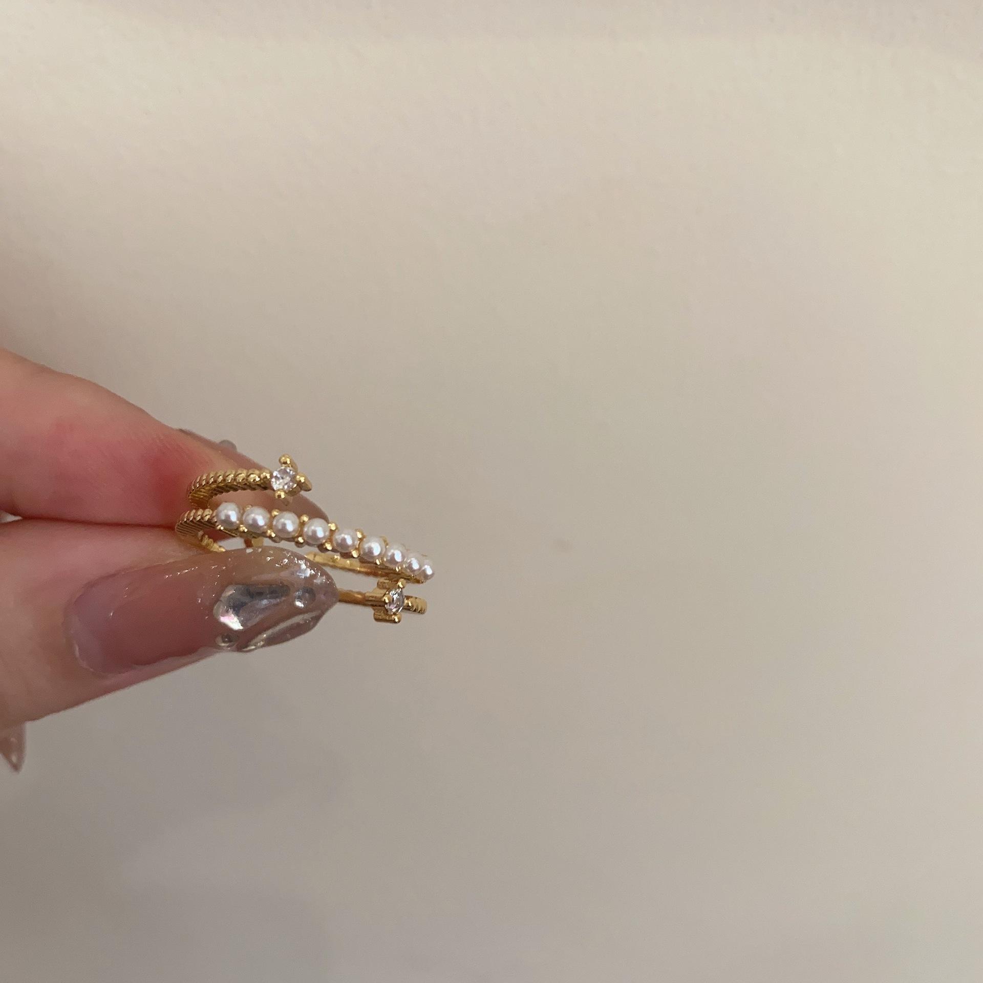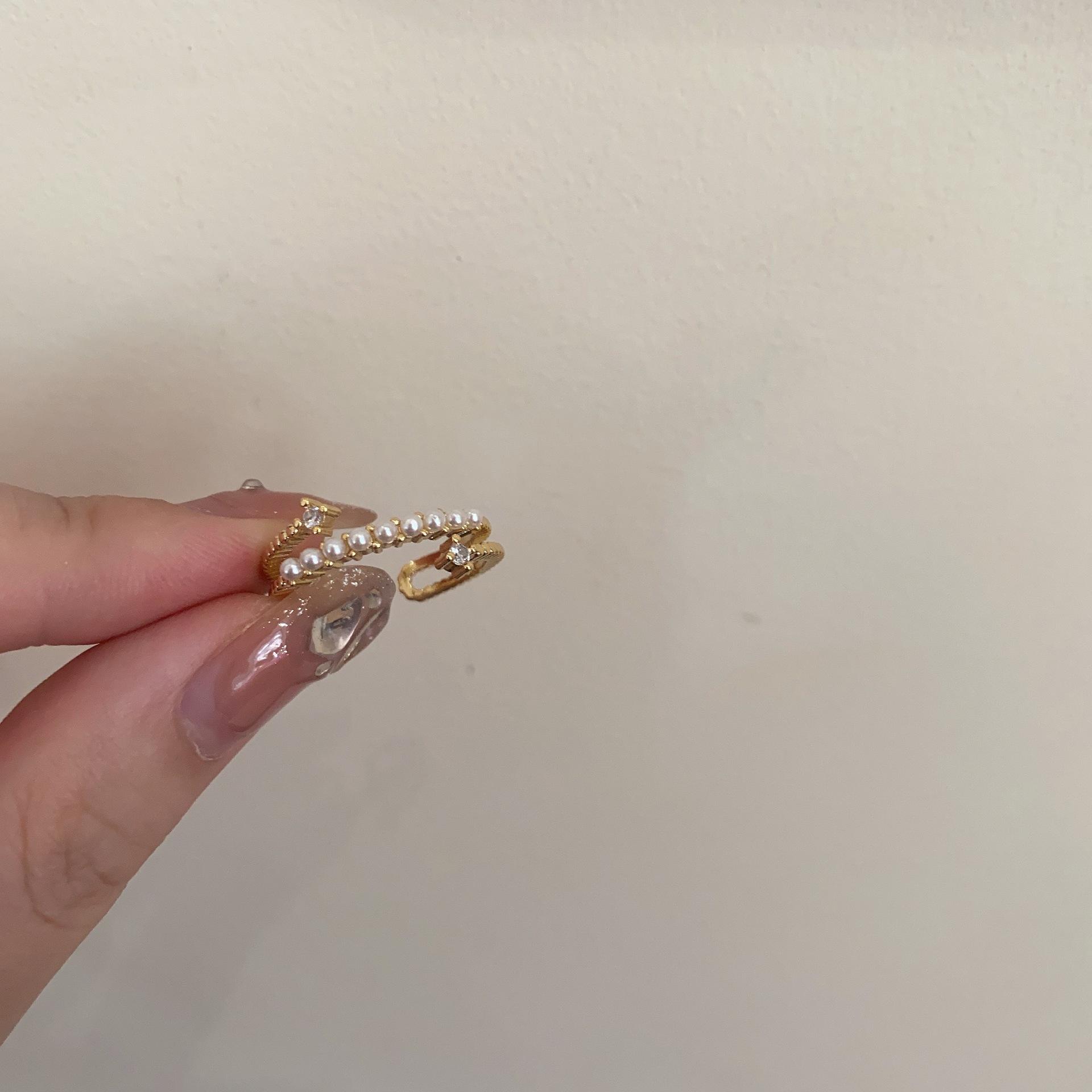 Anillo abierto de lujo ligero con forma de estrella de perla Awn para mujer, nicho interior, anillo de viento frío de alta calidad, pulsera ajustable con temperamento