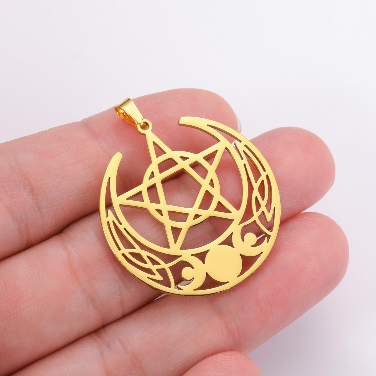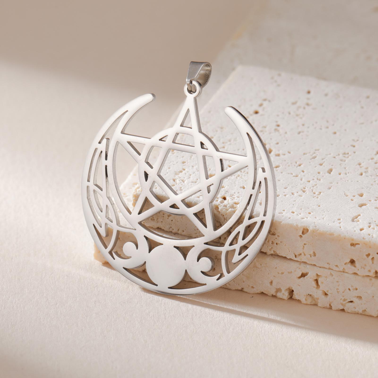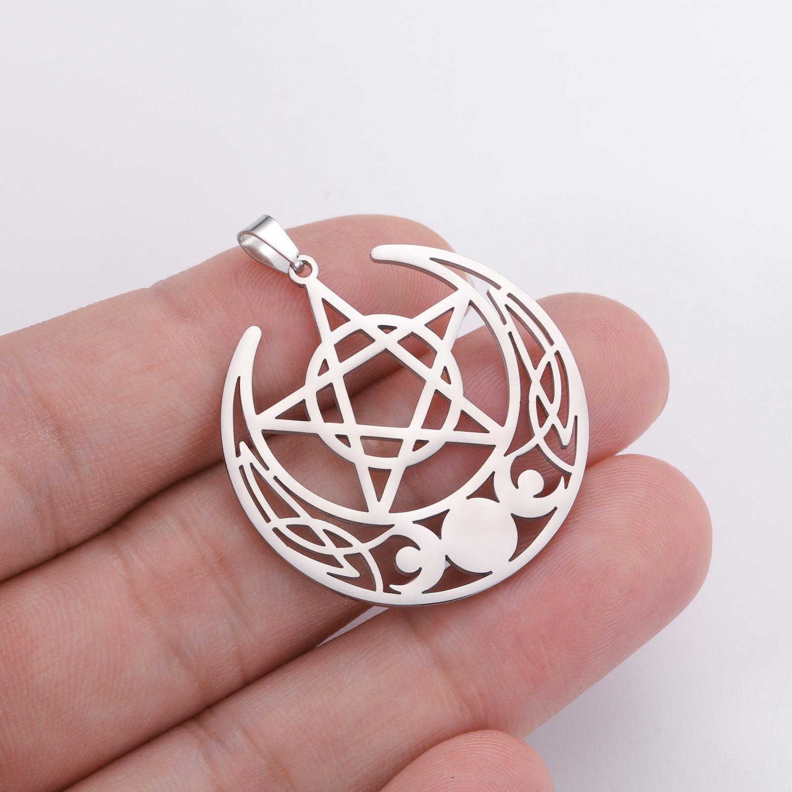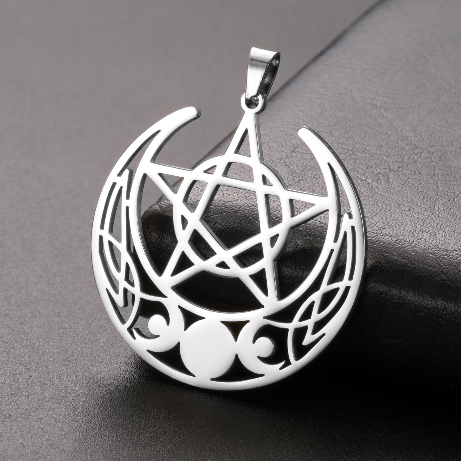 Nuevo colgante de pentagrama de tres meses de acero inoxidable retro con personalidad y accesorios para collar y pendientes DIY.