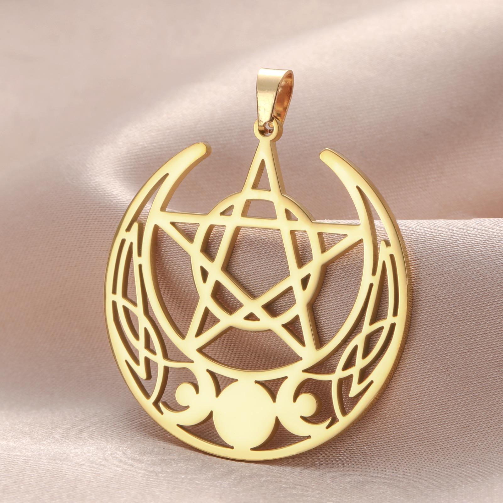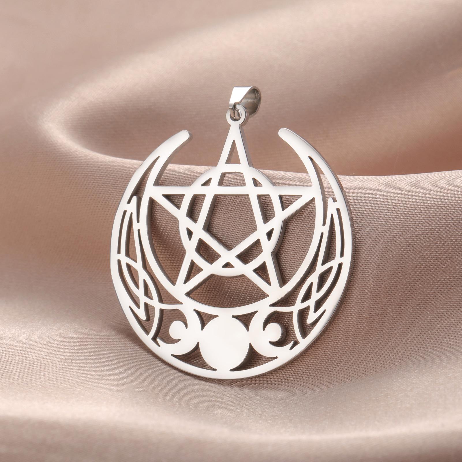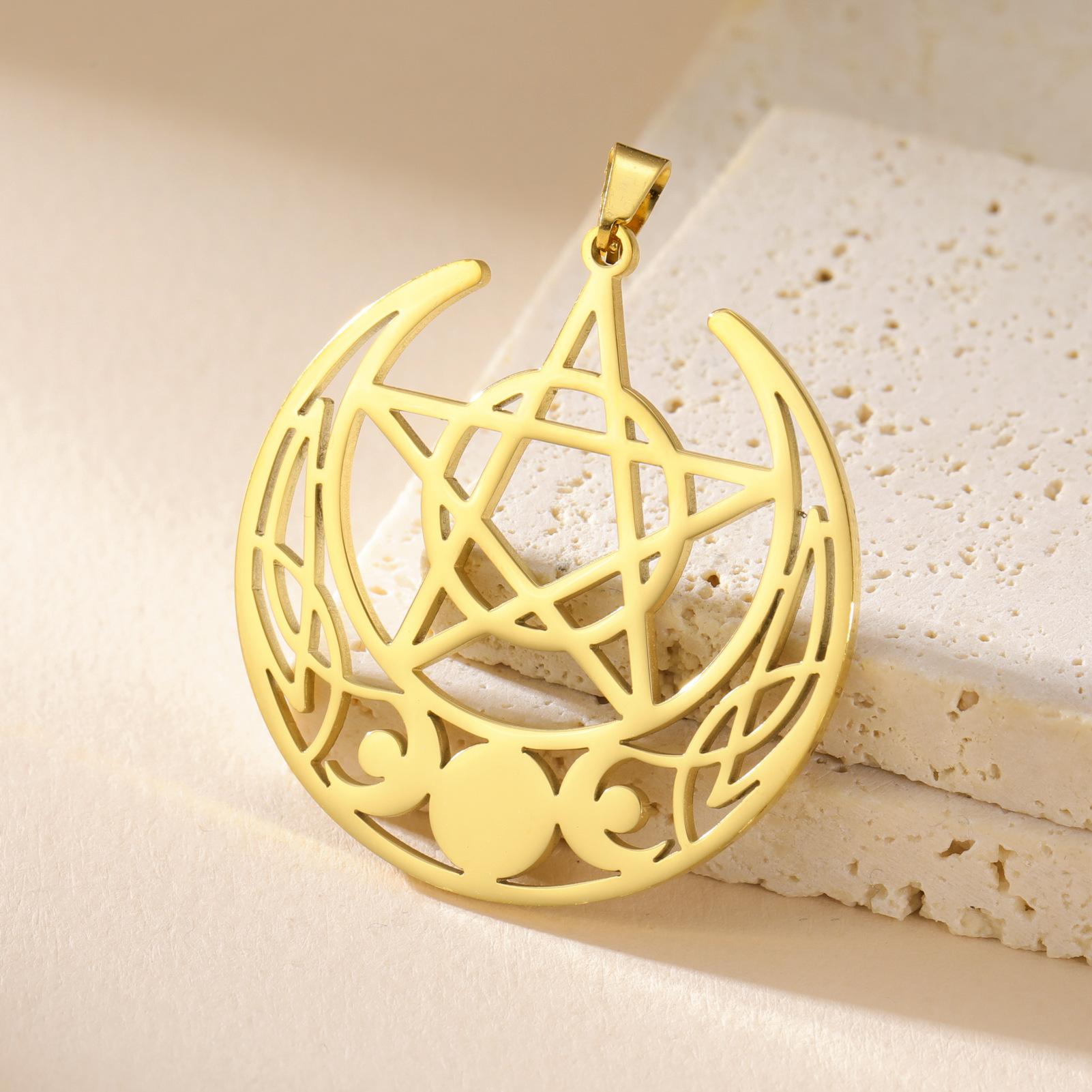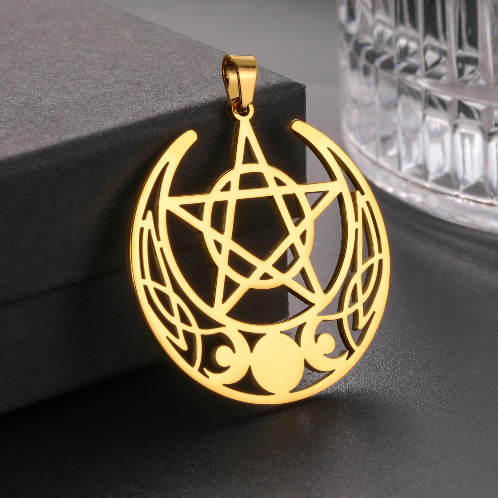 Nuevo colgante de pentagrama de tres meses de acero inoxidable retro con personalidad y accesorios para collar y pendientes DIY.