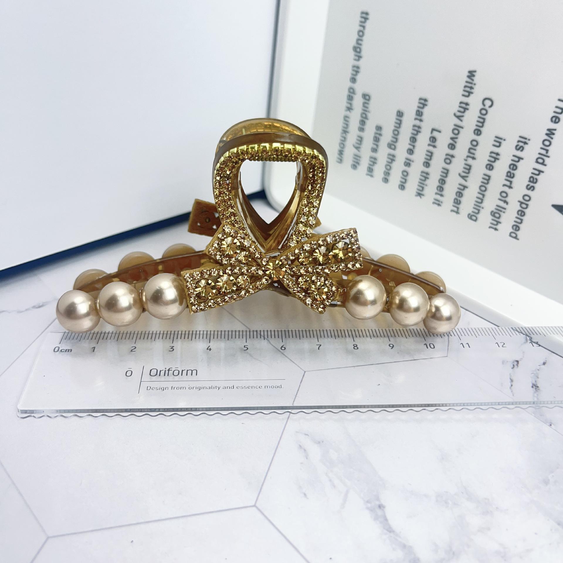 Pinza Grande para Cabello Acrílica 2024 Nueva Pinza de Tiburón Elegante con Perlas de Alta Gama para Parte Posterior de la Cabeza Accesorio para el Cabello