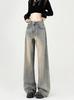 Pantalones vaqueros holgados de cintura alta con pierna ancha para mujer, primavera 2024, nuevos pantalones rectos retro de estilo americano adelgazante