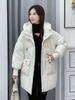 Liquidación de Fuera de Temporada Ropa de Algodón Acolchada con Plumón con Capucha para Mujer Invierno Largo Medio Estilo Coreano Suelto Grueso Abrigo a Prueba de Frío