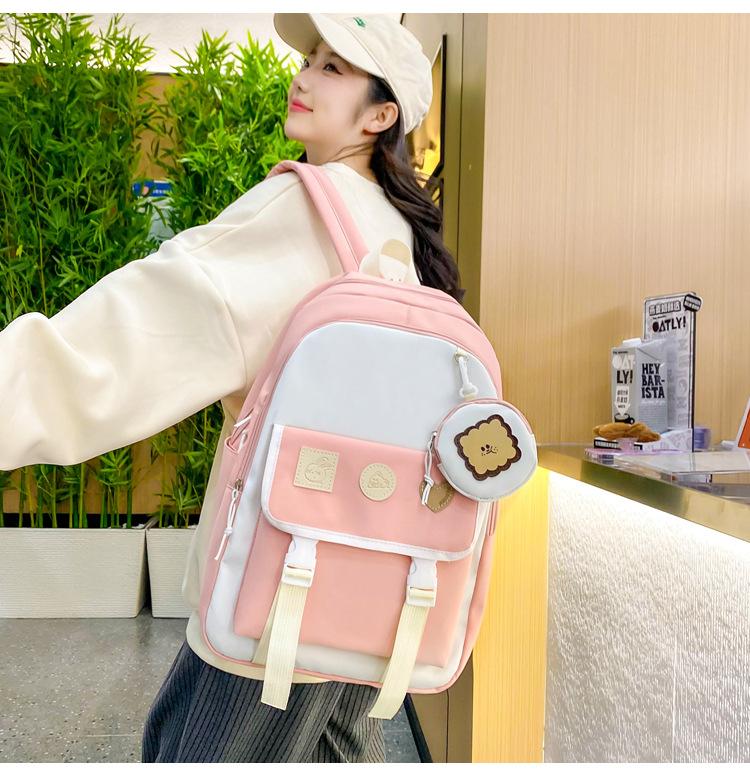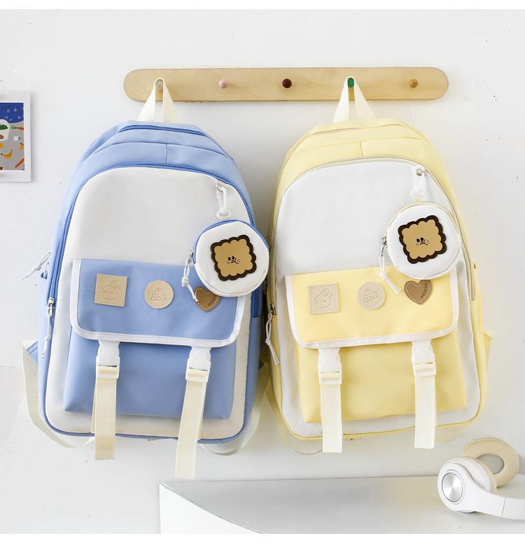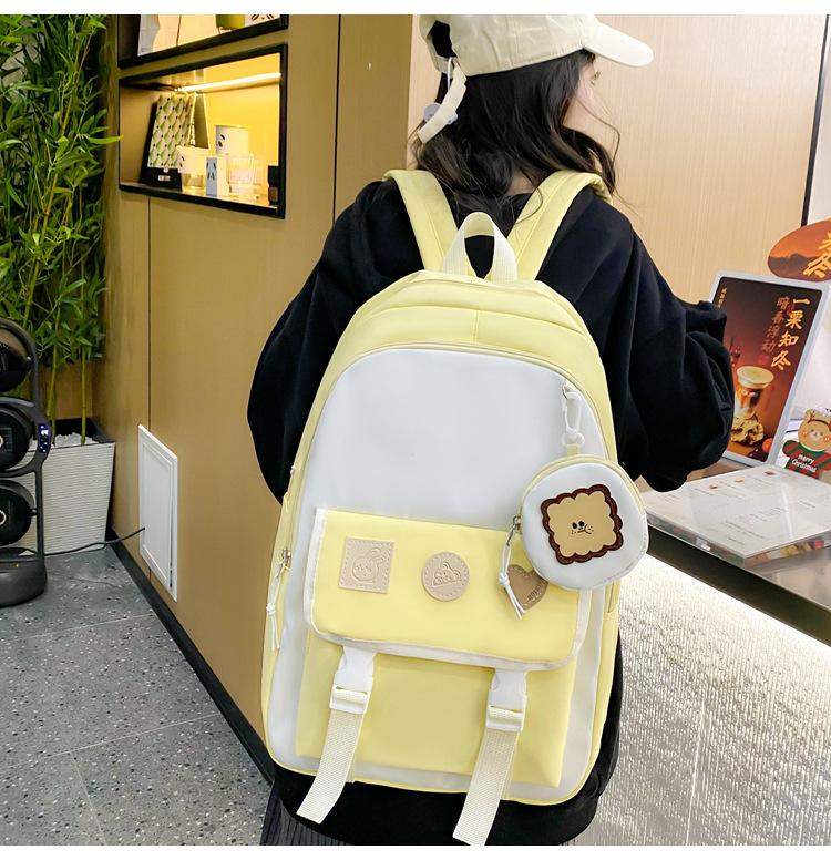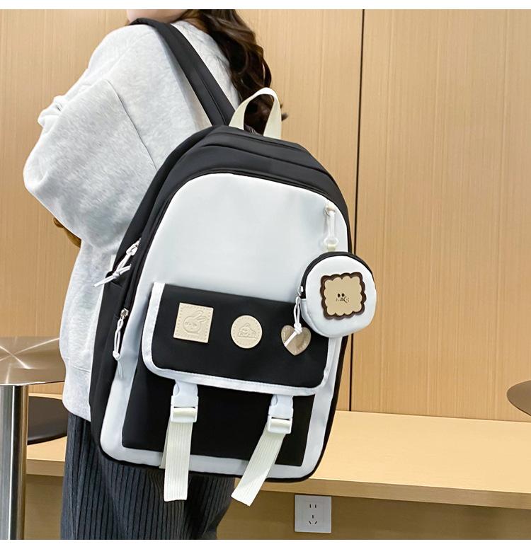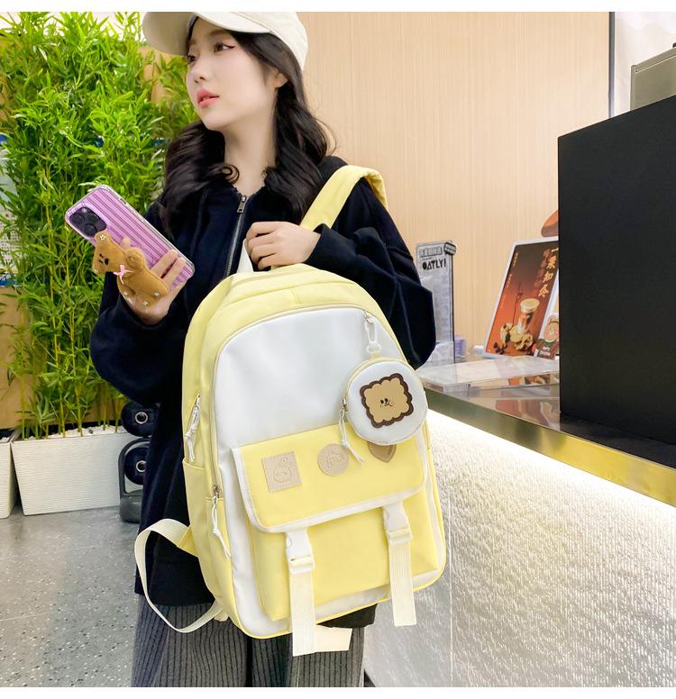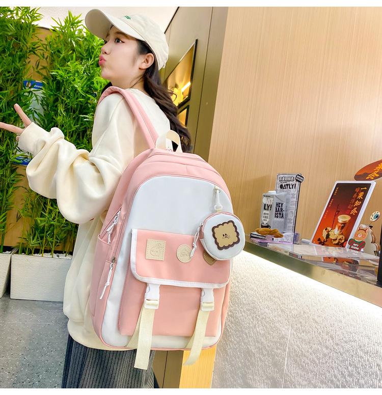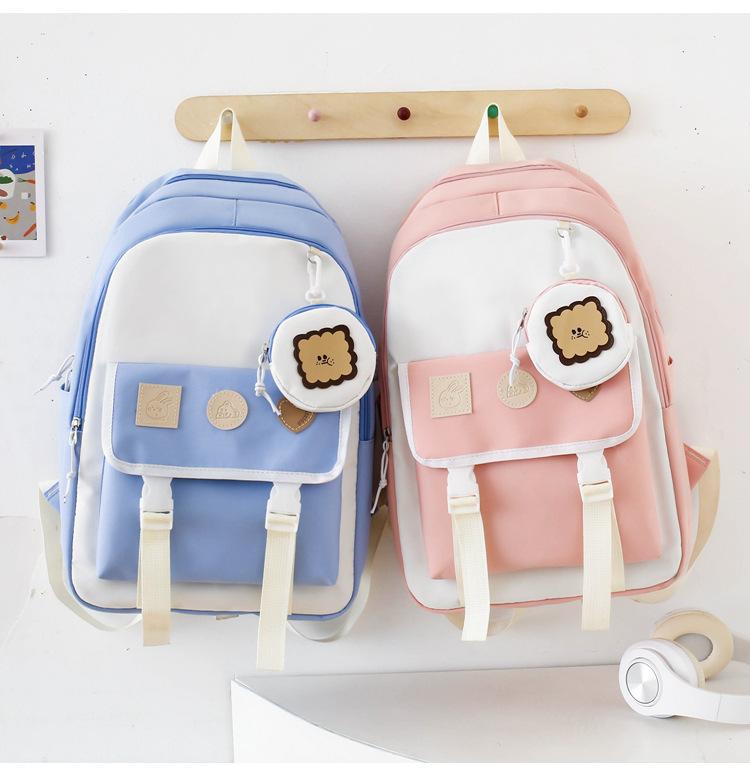 Mochila de Moda Casual Campus Contraste de Color 2024 Nueva Ligera Mochila Escolar para Estudiantes Gran Capacidad Bolso de Hombro Multipieza