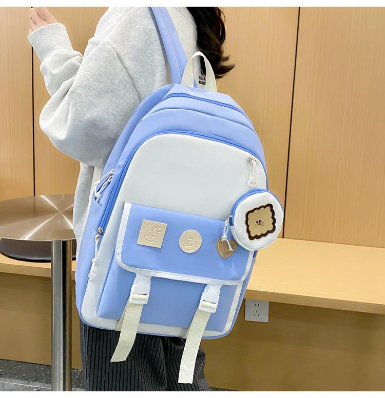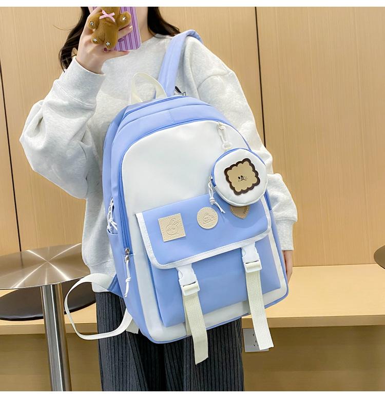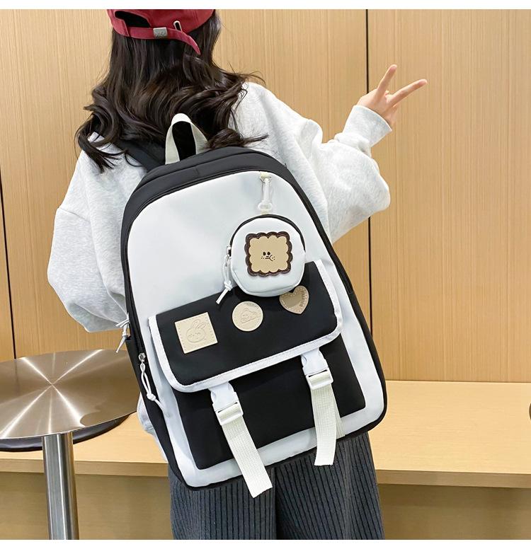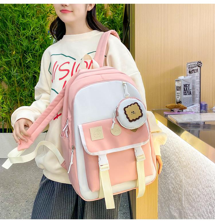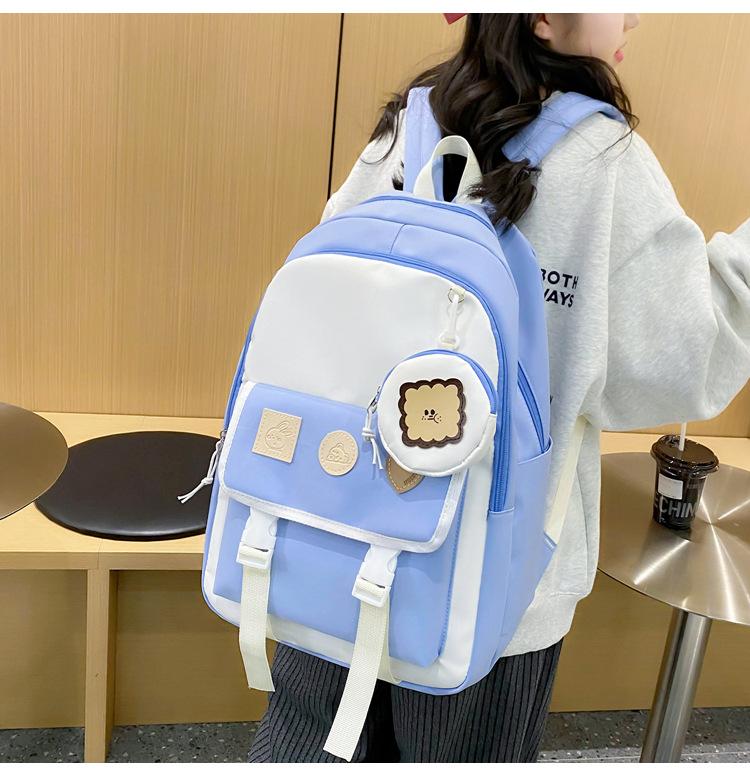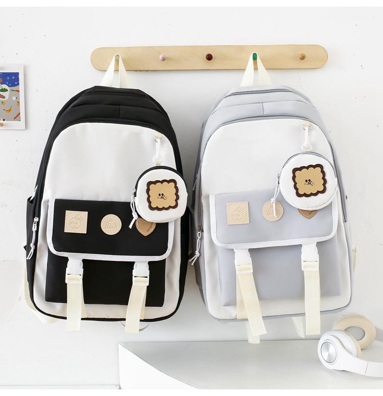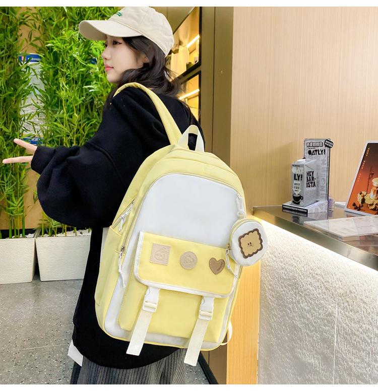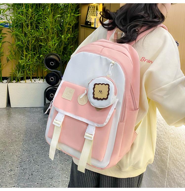 Mochila de Moda Casual Campus Contraste de Color 2024 Nueva Ligera Mochila Escolar para Estudiantes Gran Capacidad Bolso de Hombro Multipieza