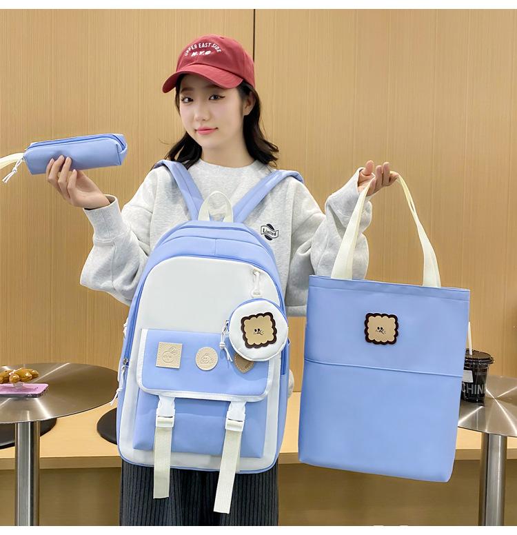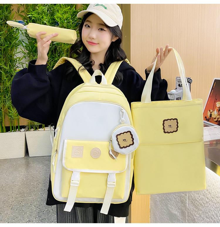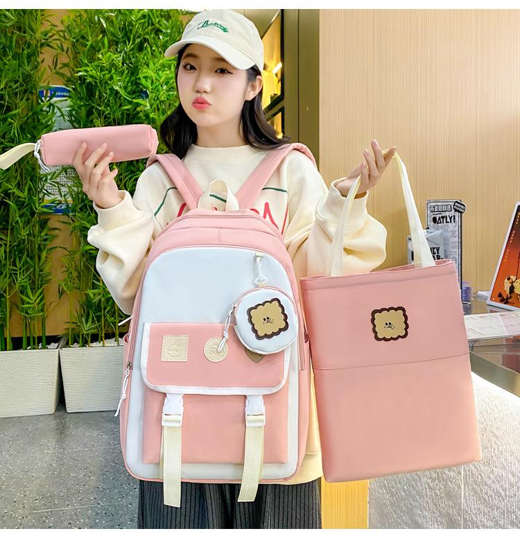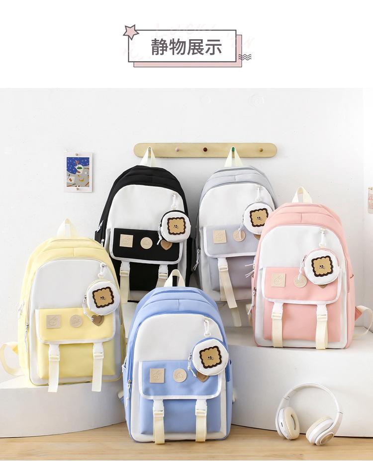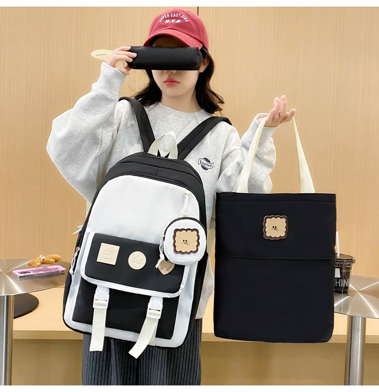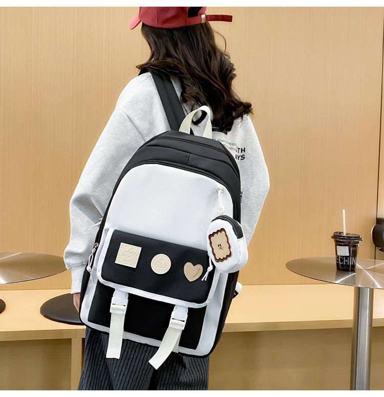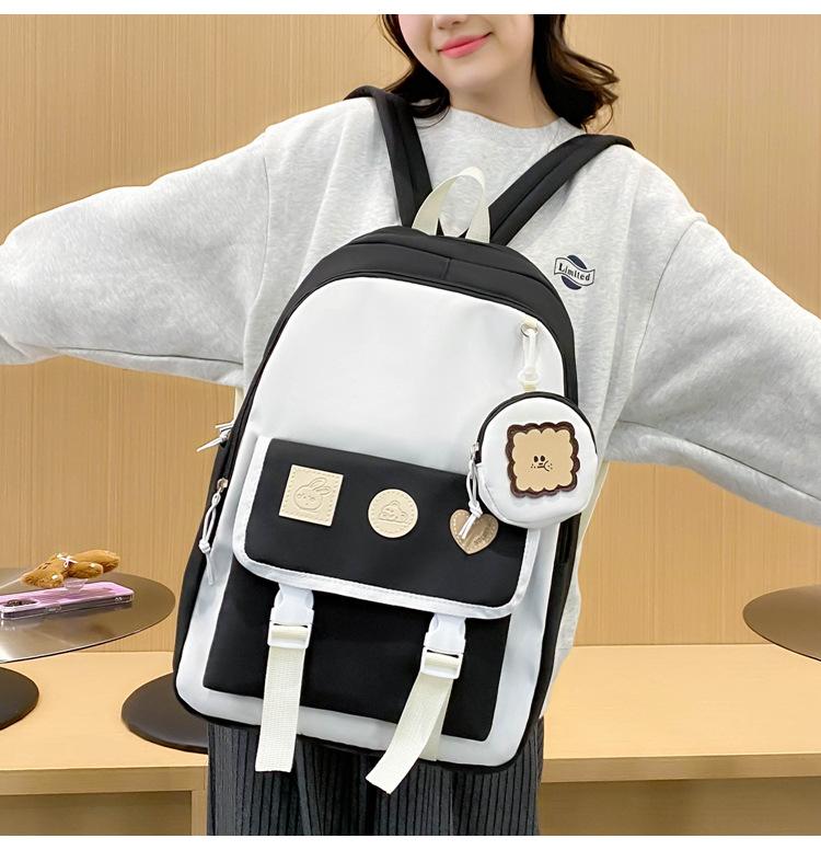Mochila de Moda Casual Campus Contraste de Color 2024 Nueva Ligera Mochila Escolar para Estudiantes Gran Capacidad Bolso de Hombro Multipieza