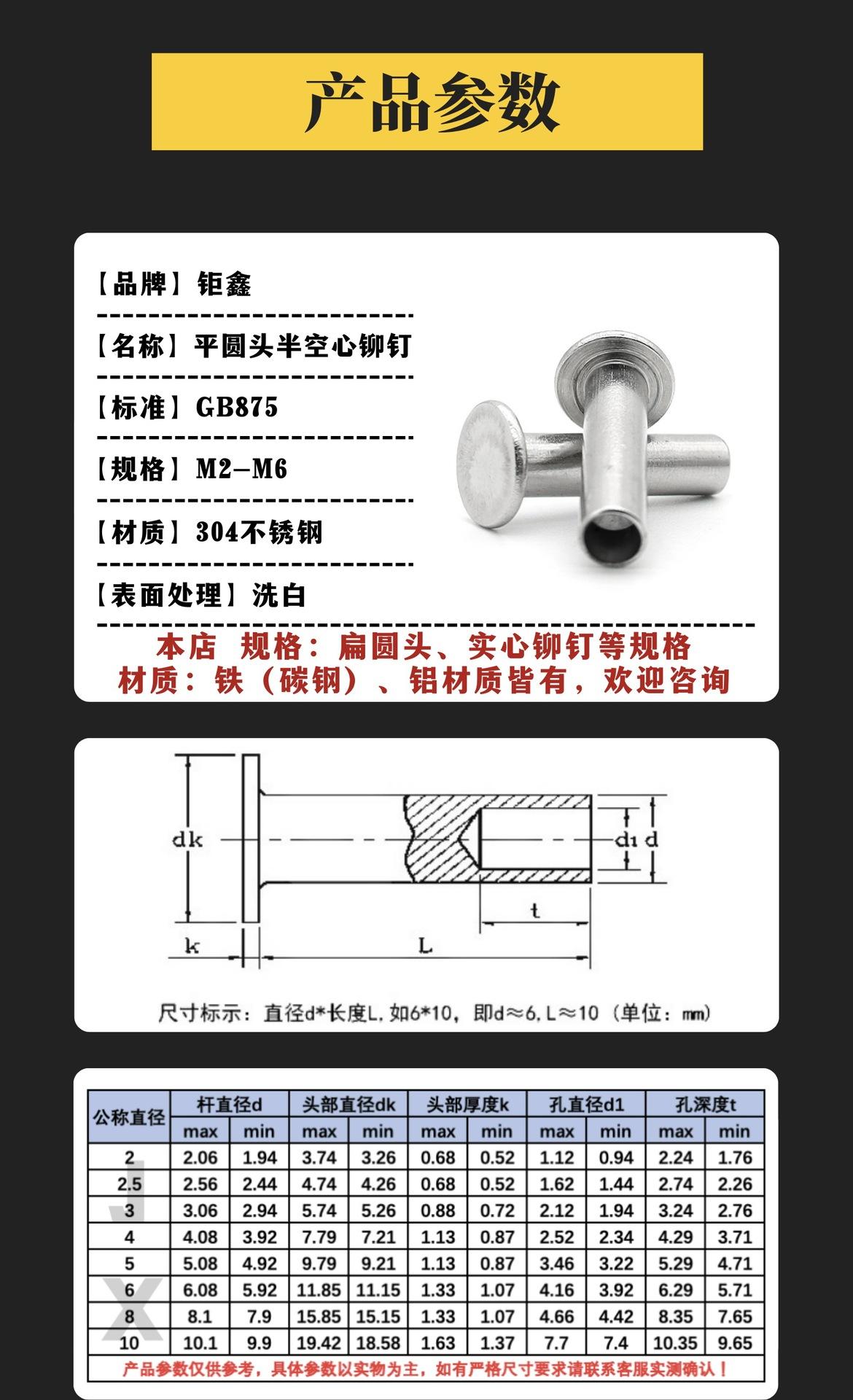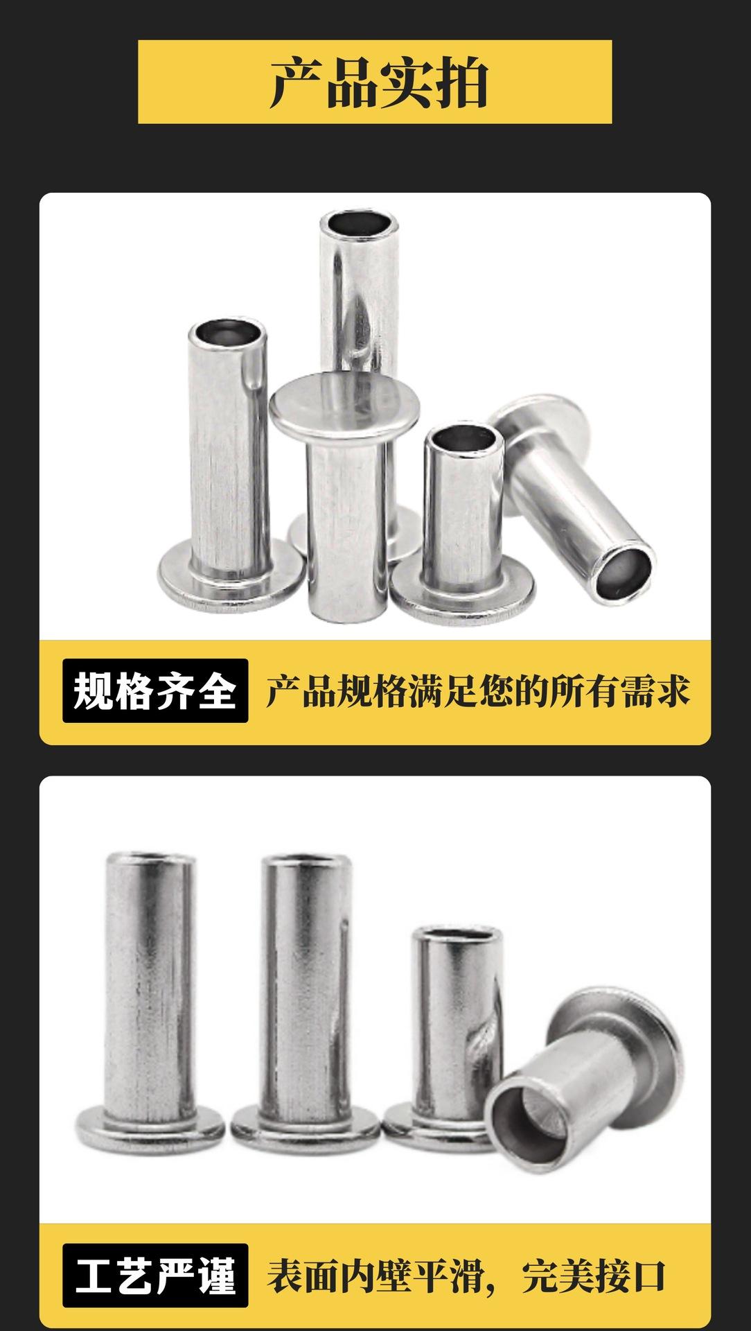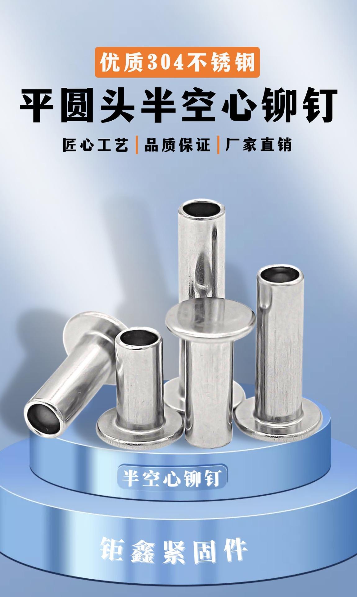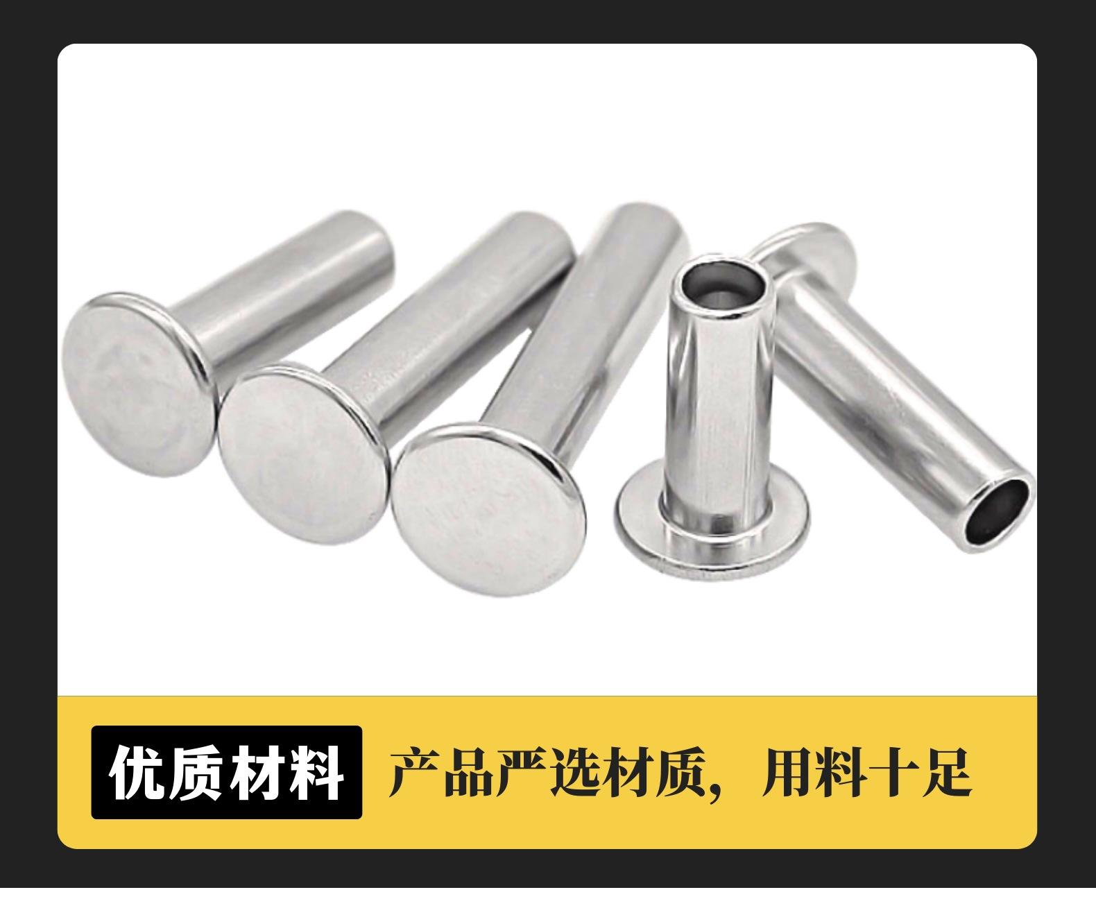 Remache semihueco de cabeza plana de acero inoxidable 304 M2M2.5M3M4M5M6 Remache de cabeza redonda plana de aluminio/hierro Clavo hueco