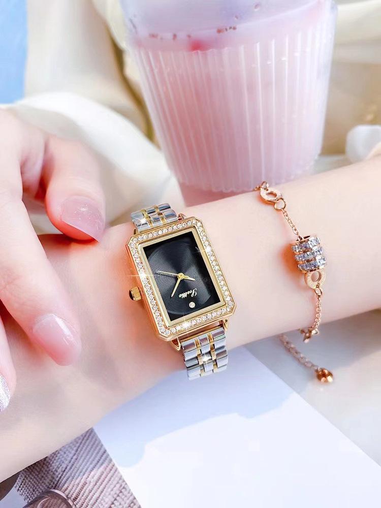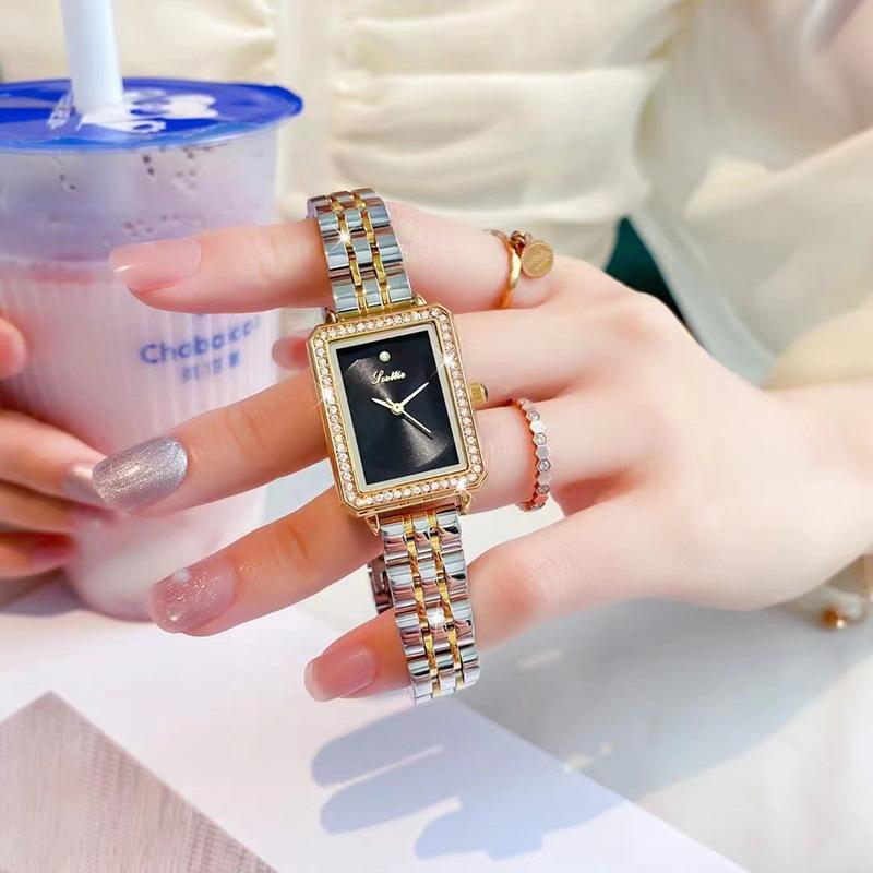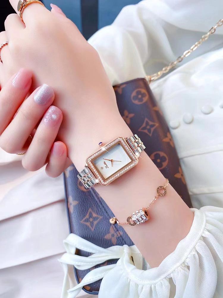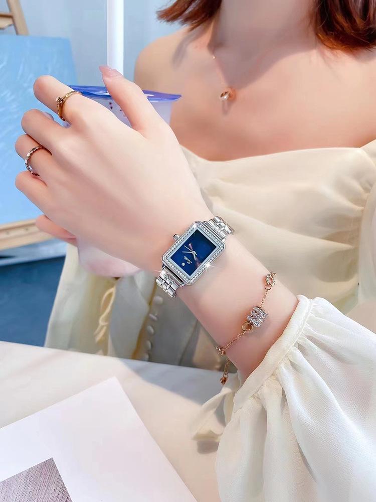 Nuevo reloj de estilo coreano con correa de acero de alta calidad para mujer, de nicho, ligero, de lujo, sencillo, cuadrado, esfera pequeña, resistente al agua, para mujer.