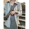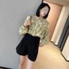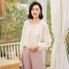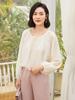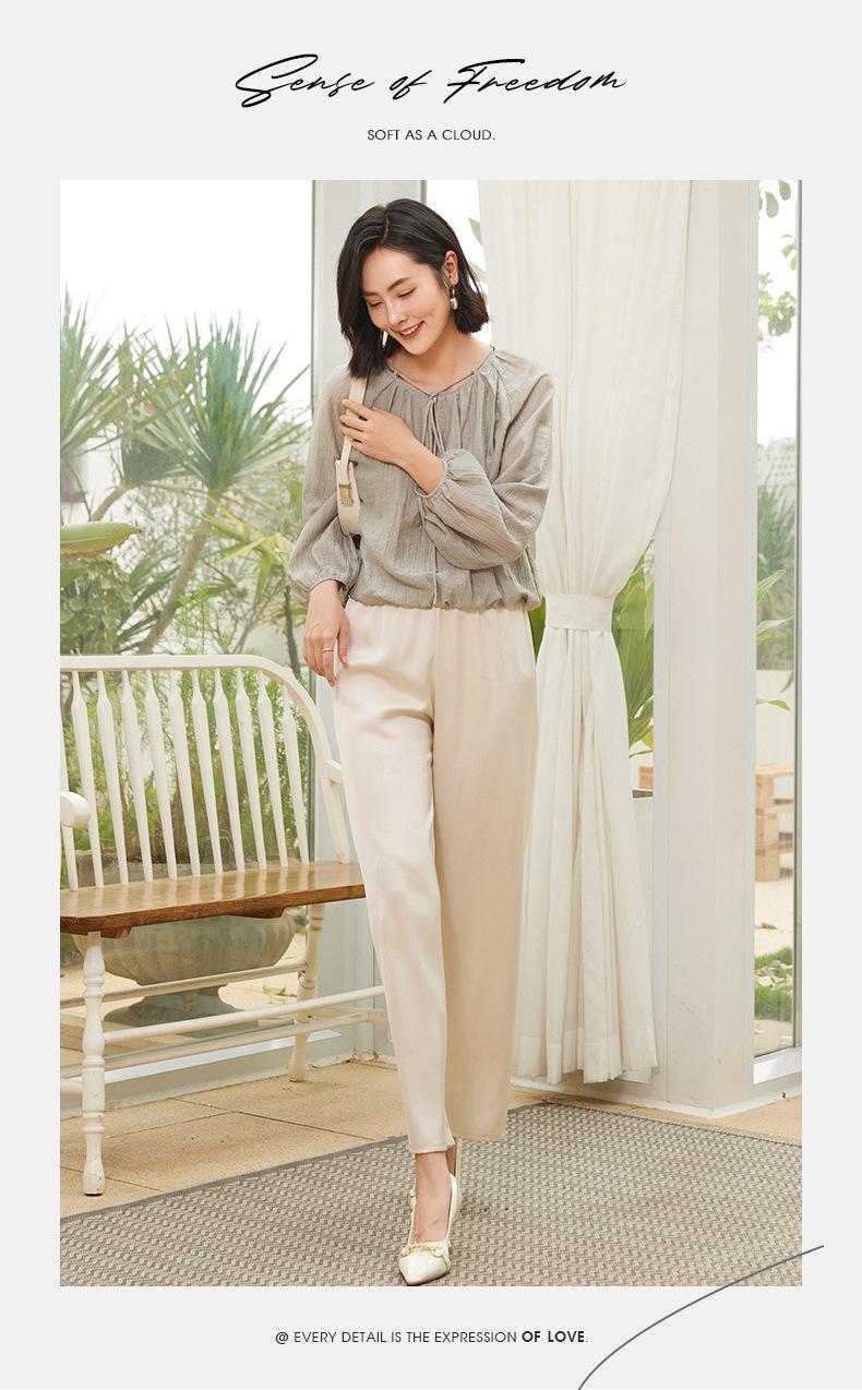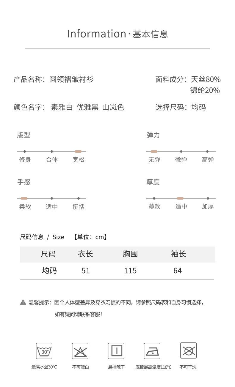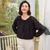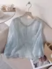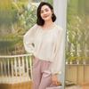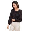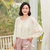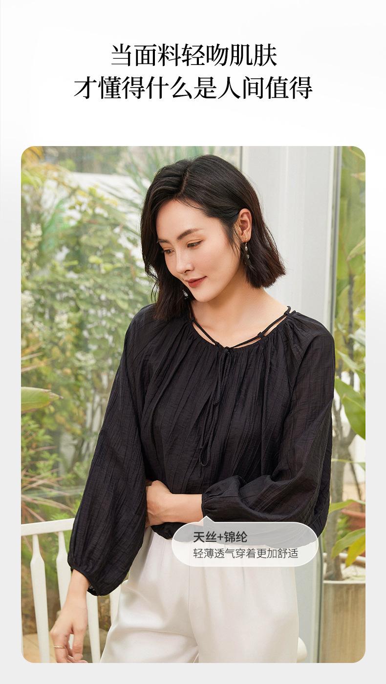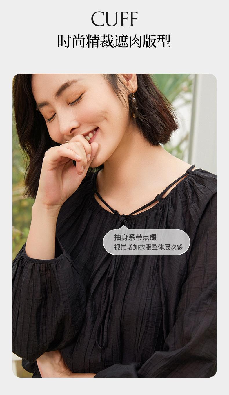 Protector Solar de Verano Nueva Camisa Elegante Pequeña de Tencel para Mujer Suelta Plisada Cuello Redondo con Cordones Casual Manga Linterna Top Camisa