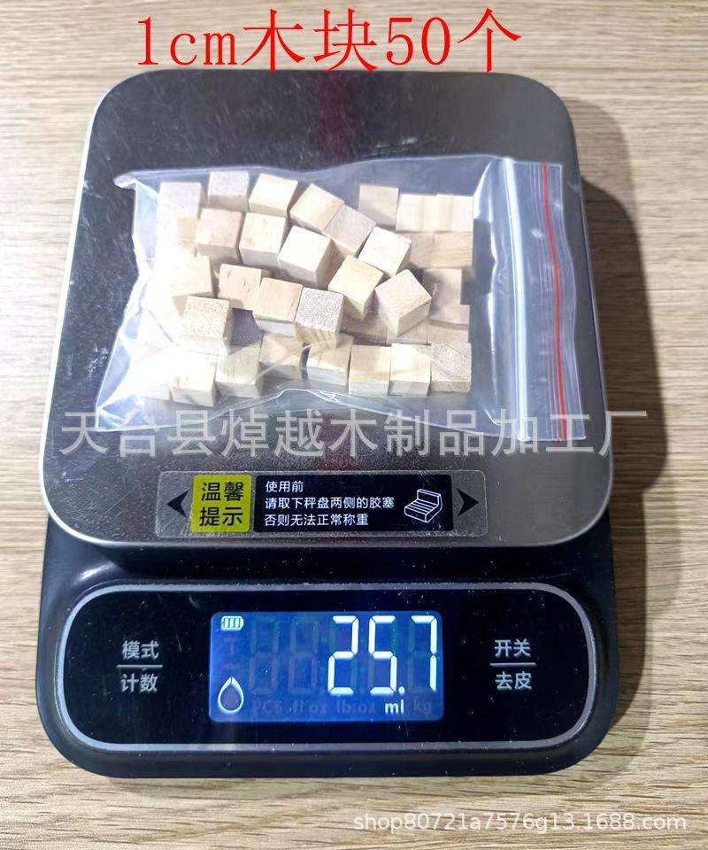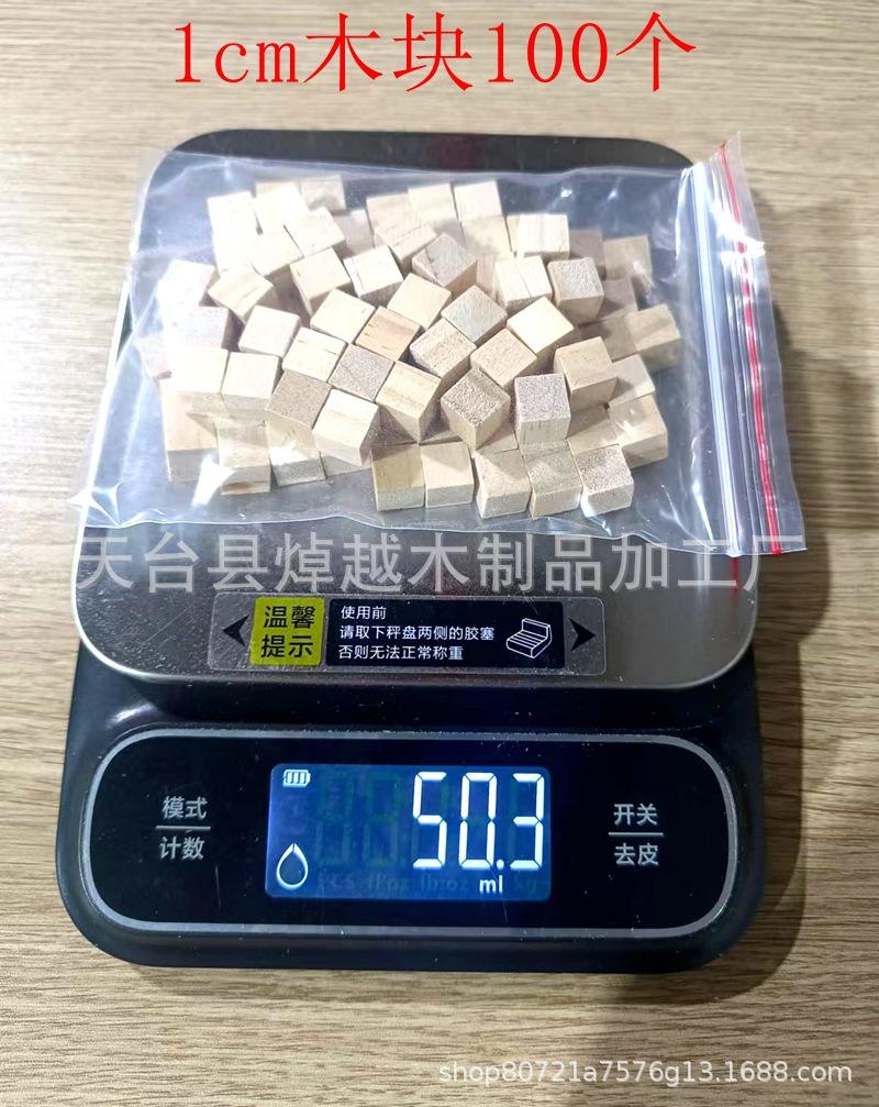 Bloques de madera de 2.5 cm 50 piezas peso: 365 gramos:Embalaje de bolsas autoadhesivas 54 bolsas/caja