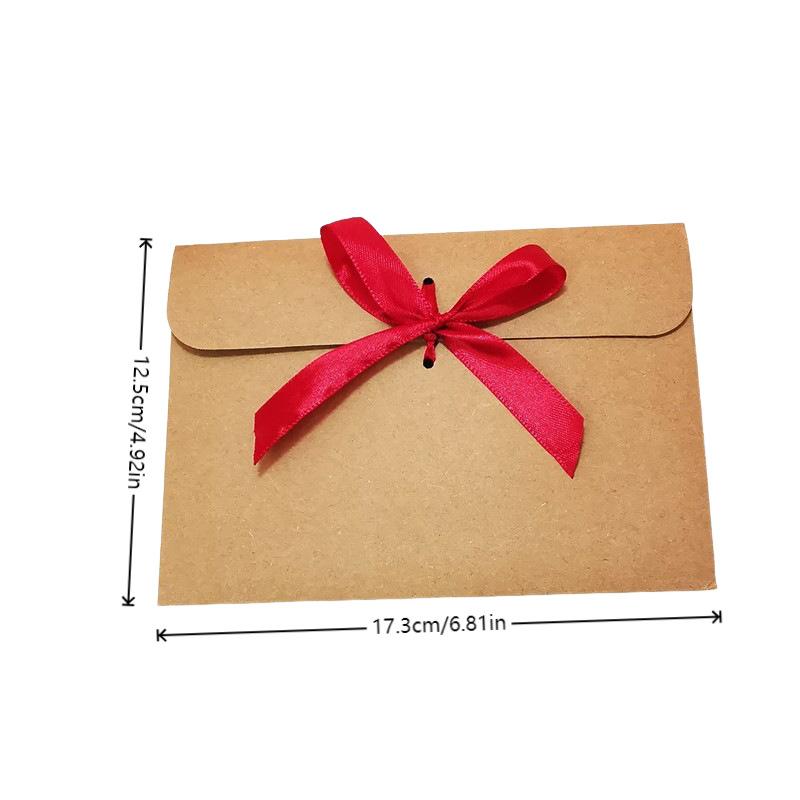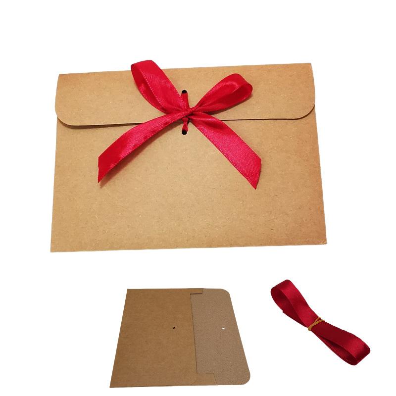 Sobre de papel Kraft estilo europeo, embalaje de regalo Mori vintage, tarjeta de felicitación, mensaje, sobre rojo, bolsa de tarjeta magnética, lazo multicolor
