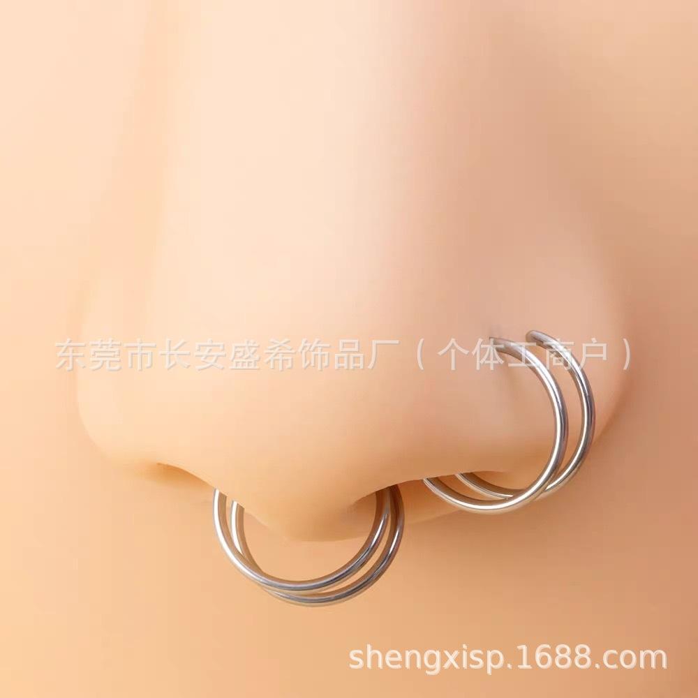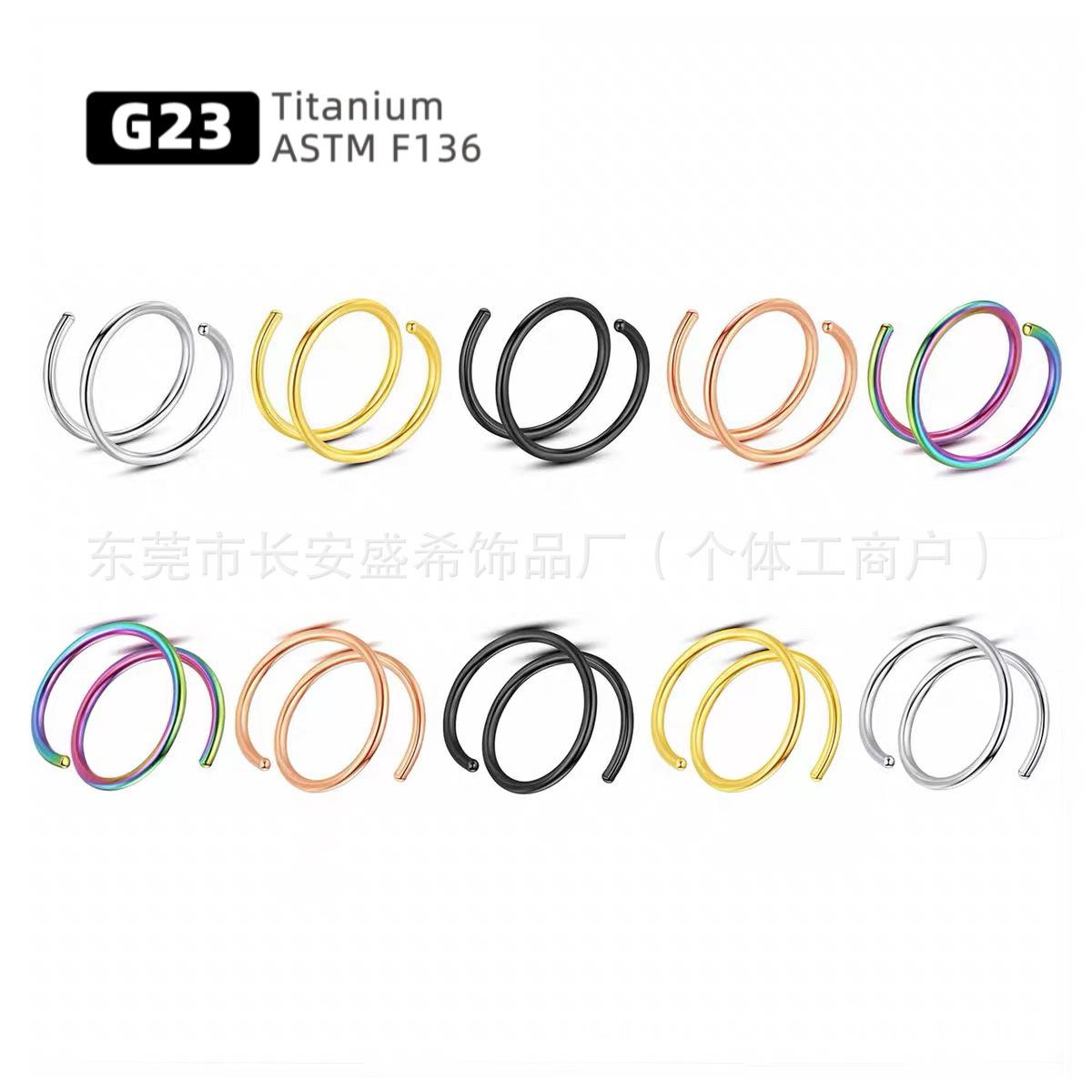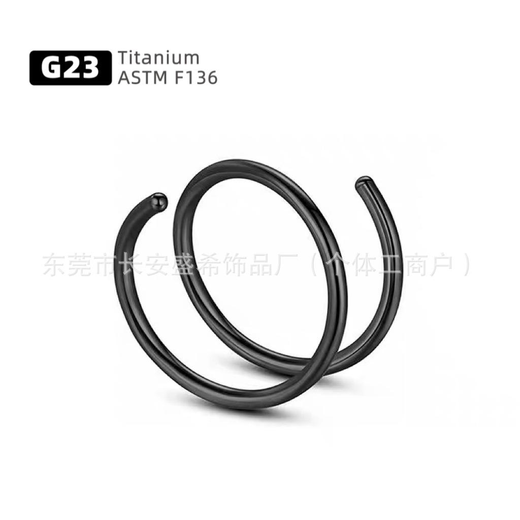 Anillo nasal de titanio G23 con borde cruzado, aleación de titanio 18G16G, con incrustaciones de circonita perforada.