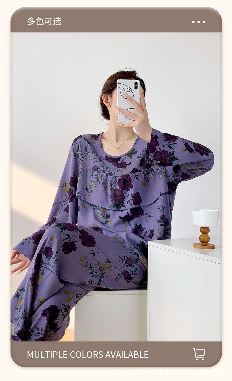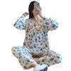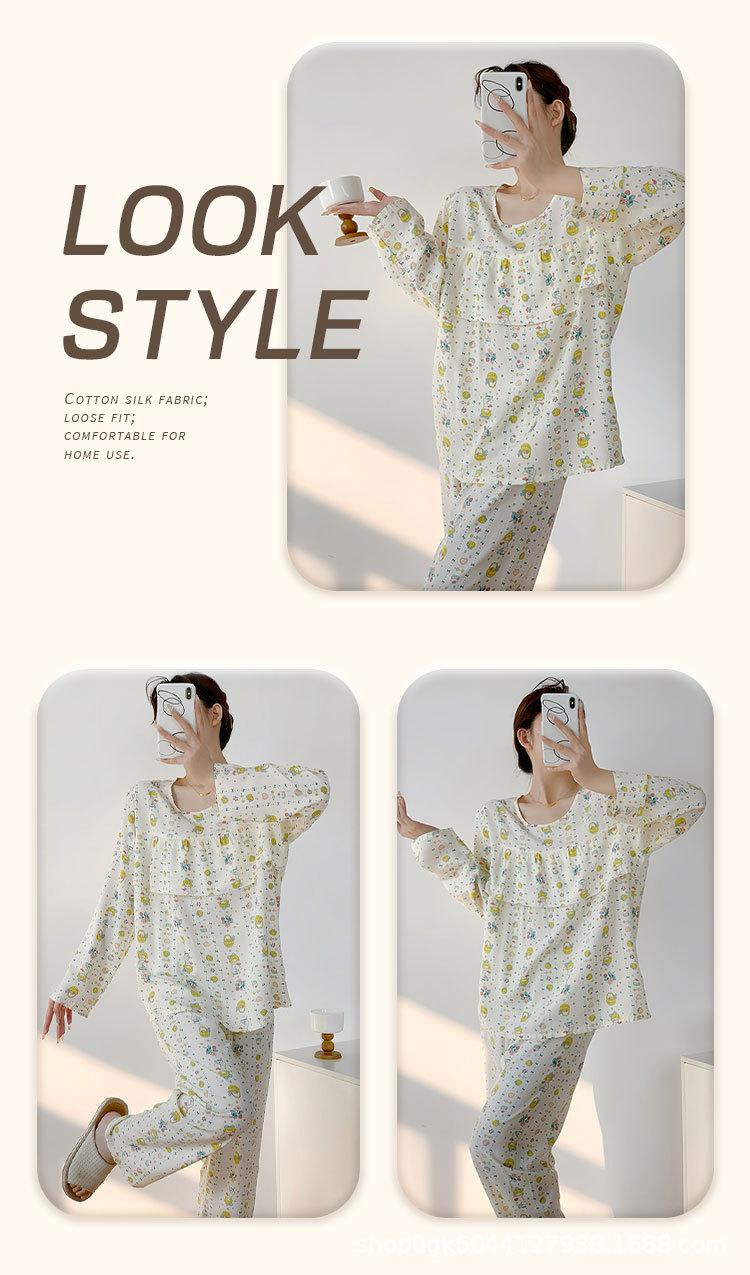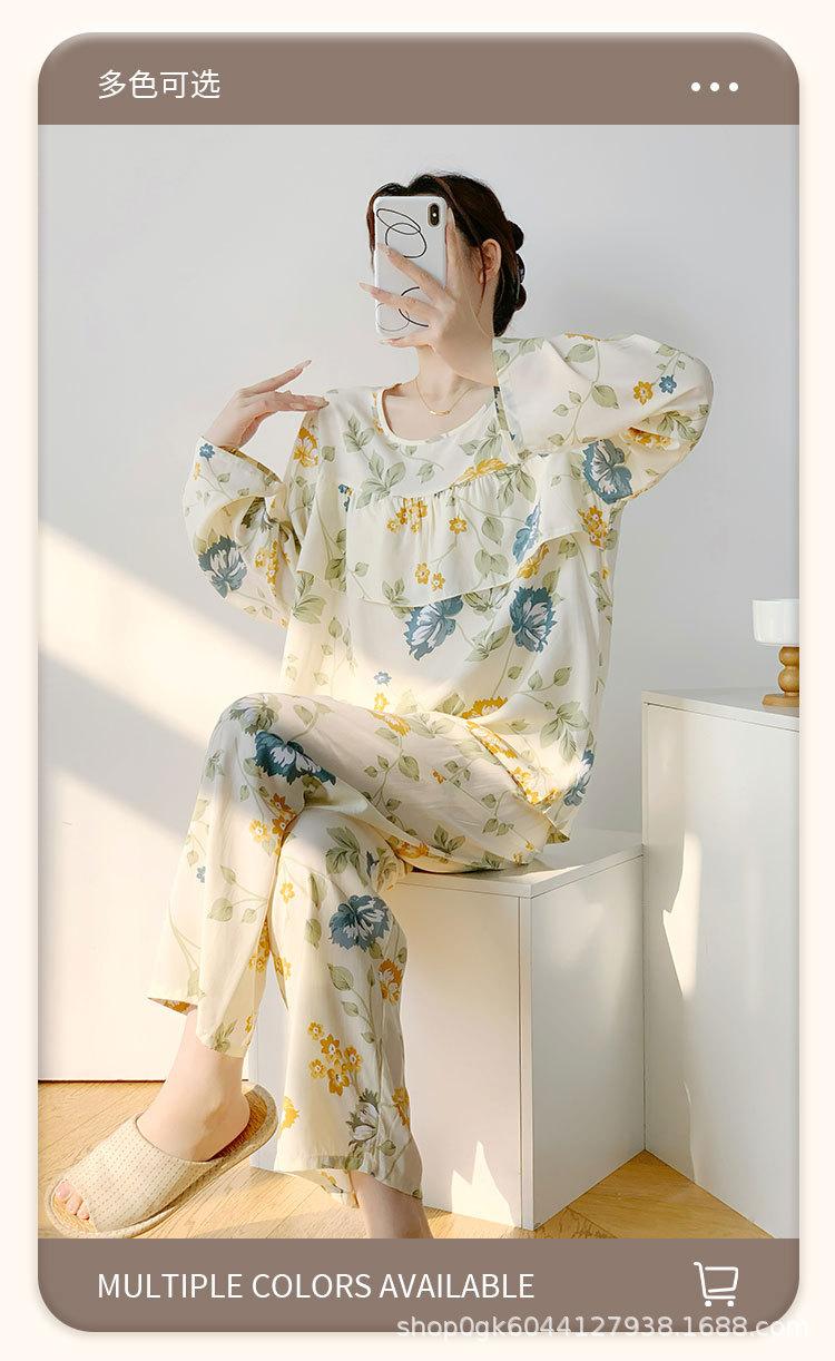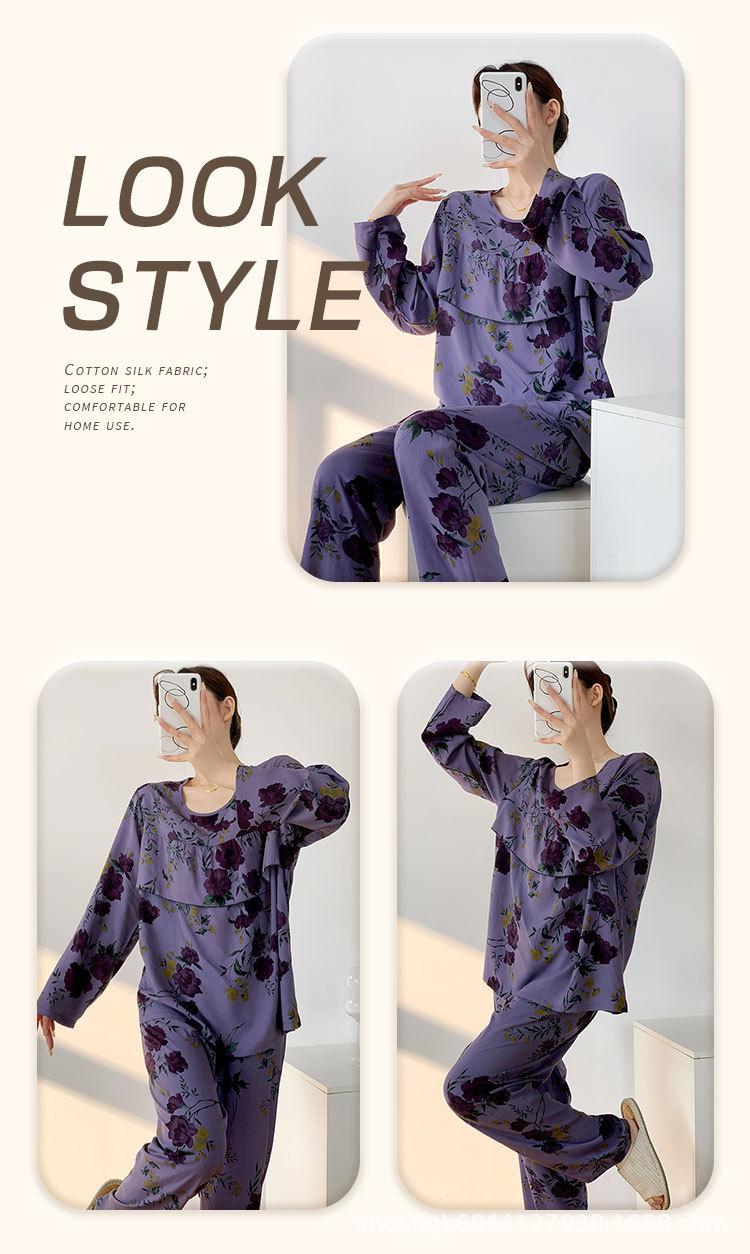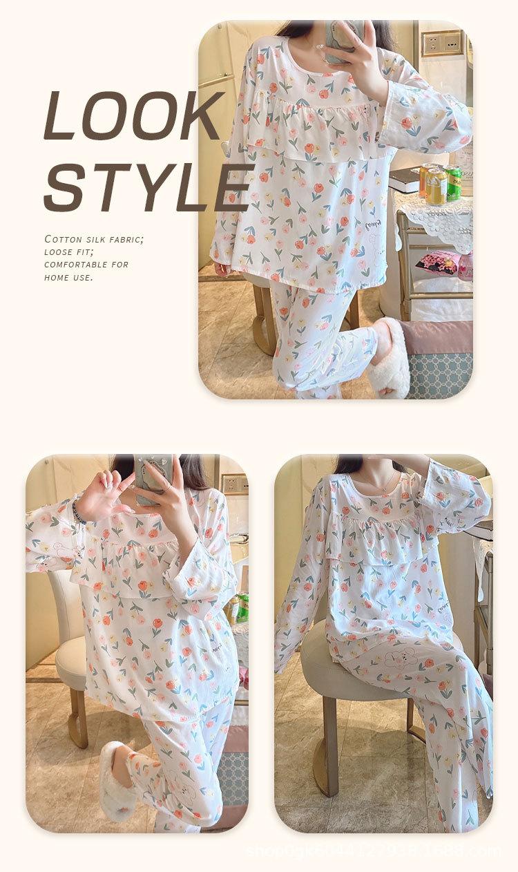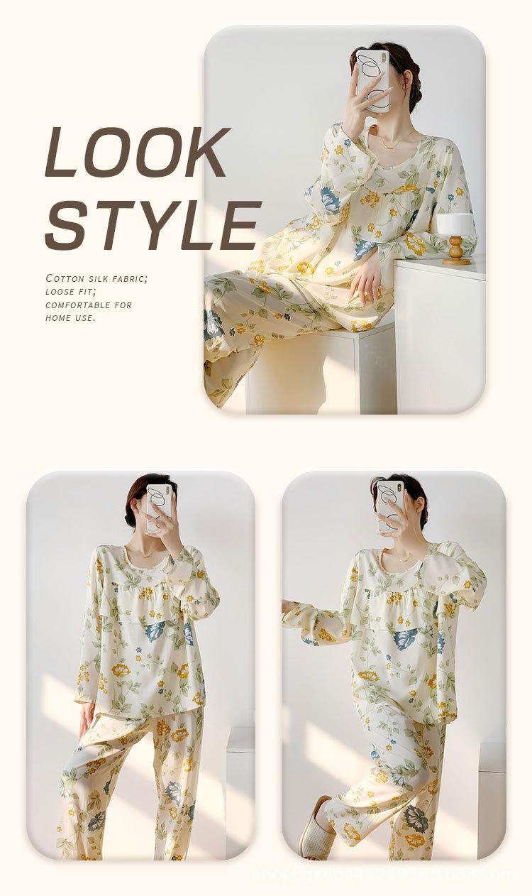 Pijama de Algodón Seda de Primavera y Otoño para Mujer, Verano Delgado Algodón Seda Manga Larga Algodón Artificial Antigolpes Traje Ropa de Casa Ropa para Aire Acondicionado
