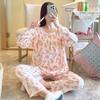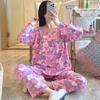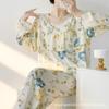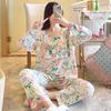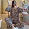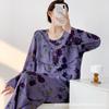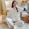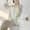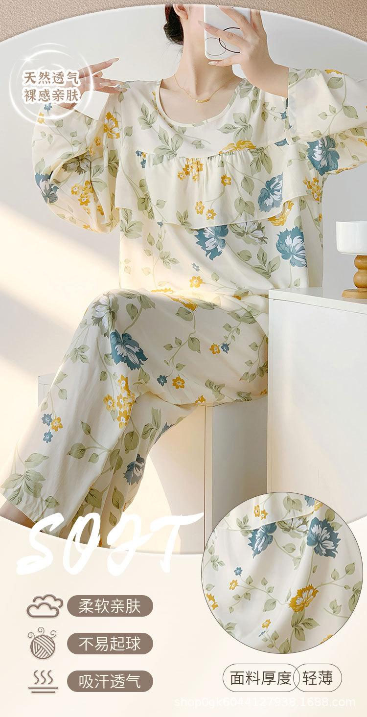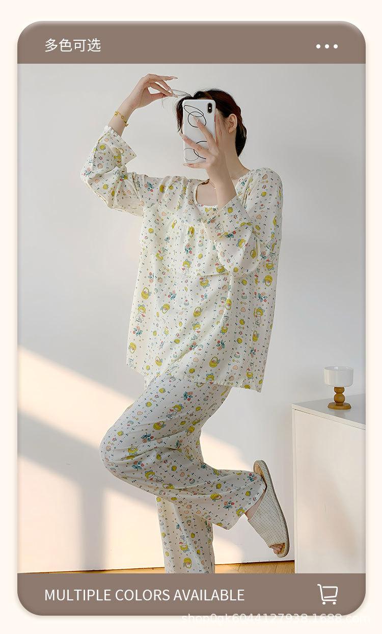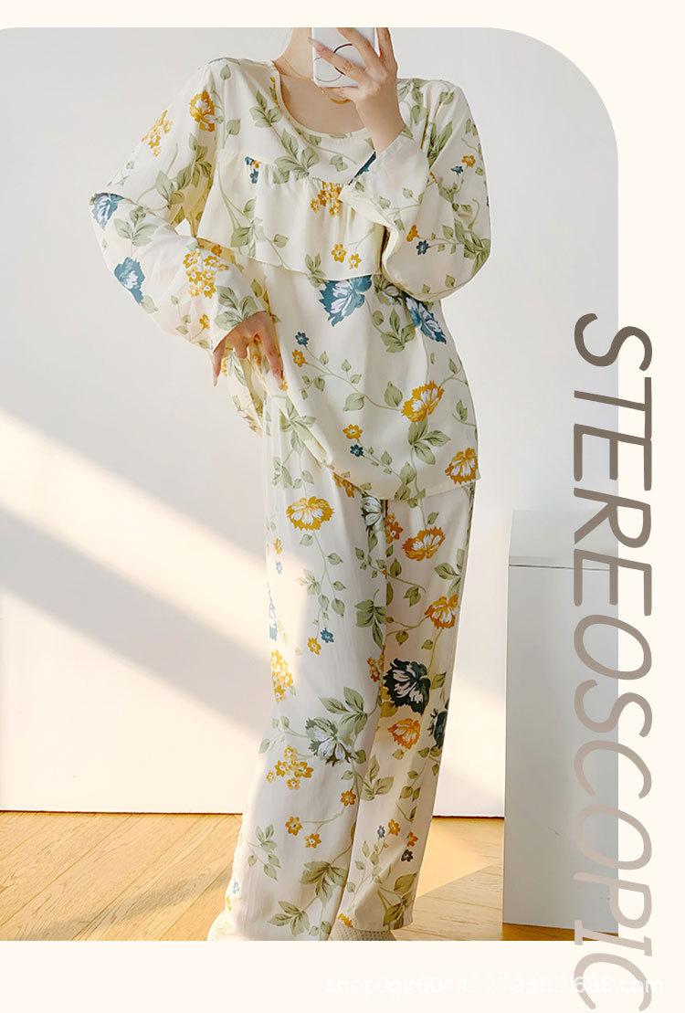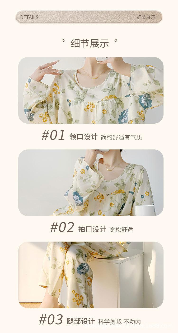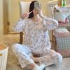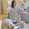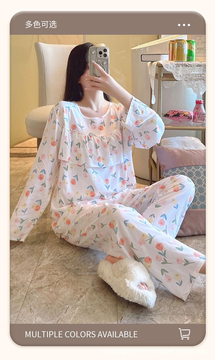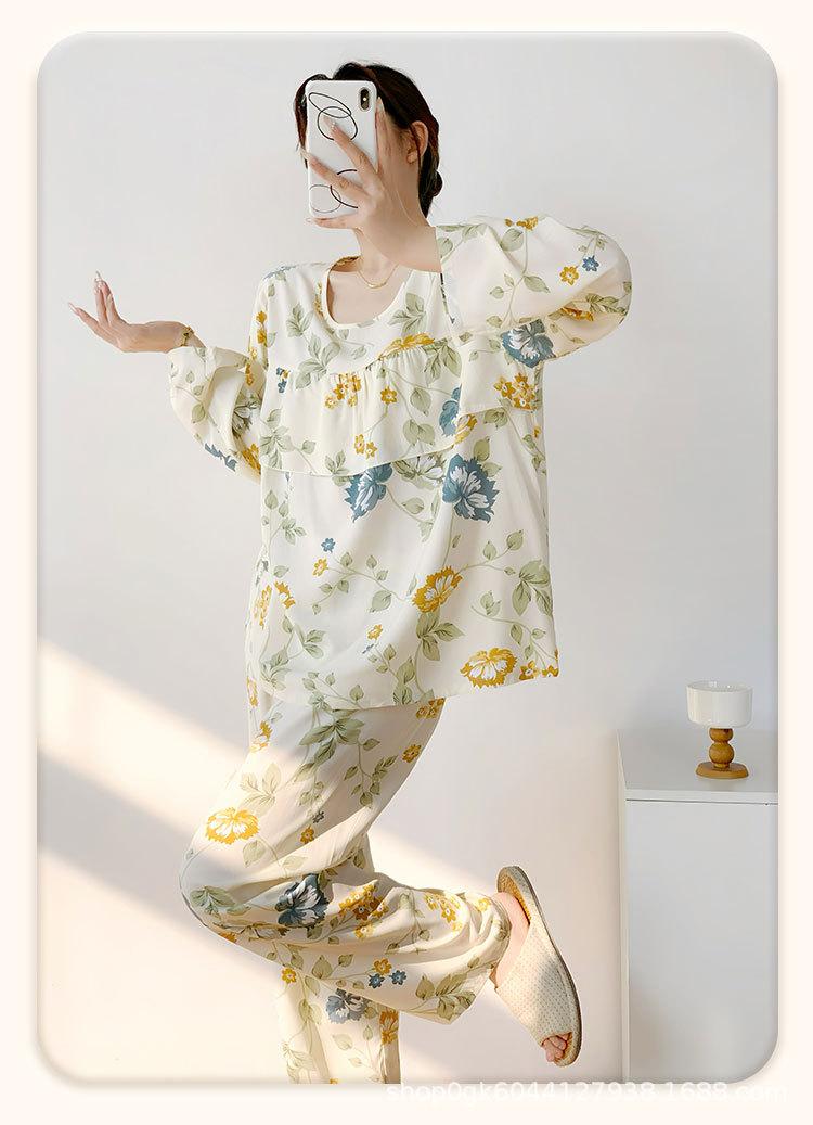 Pijama de Algodón Seda de Primavera y Otoño para Mujer, Verano Delgado Algodón Seda Manga Larga Algodón Artificial Antigolpes Traje Ropa de Casa Ropa para Aire Acondicionado